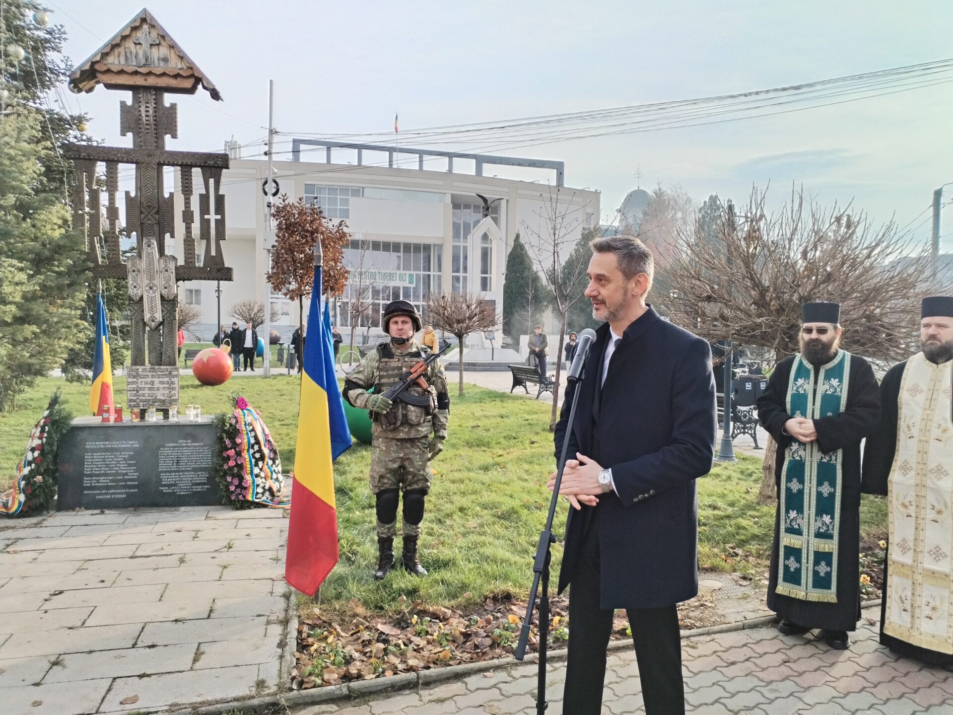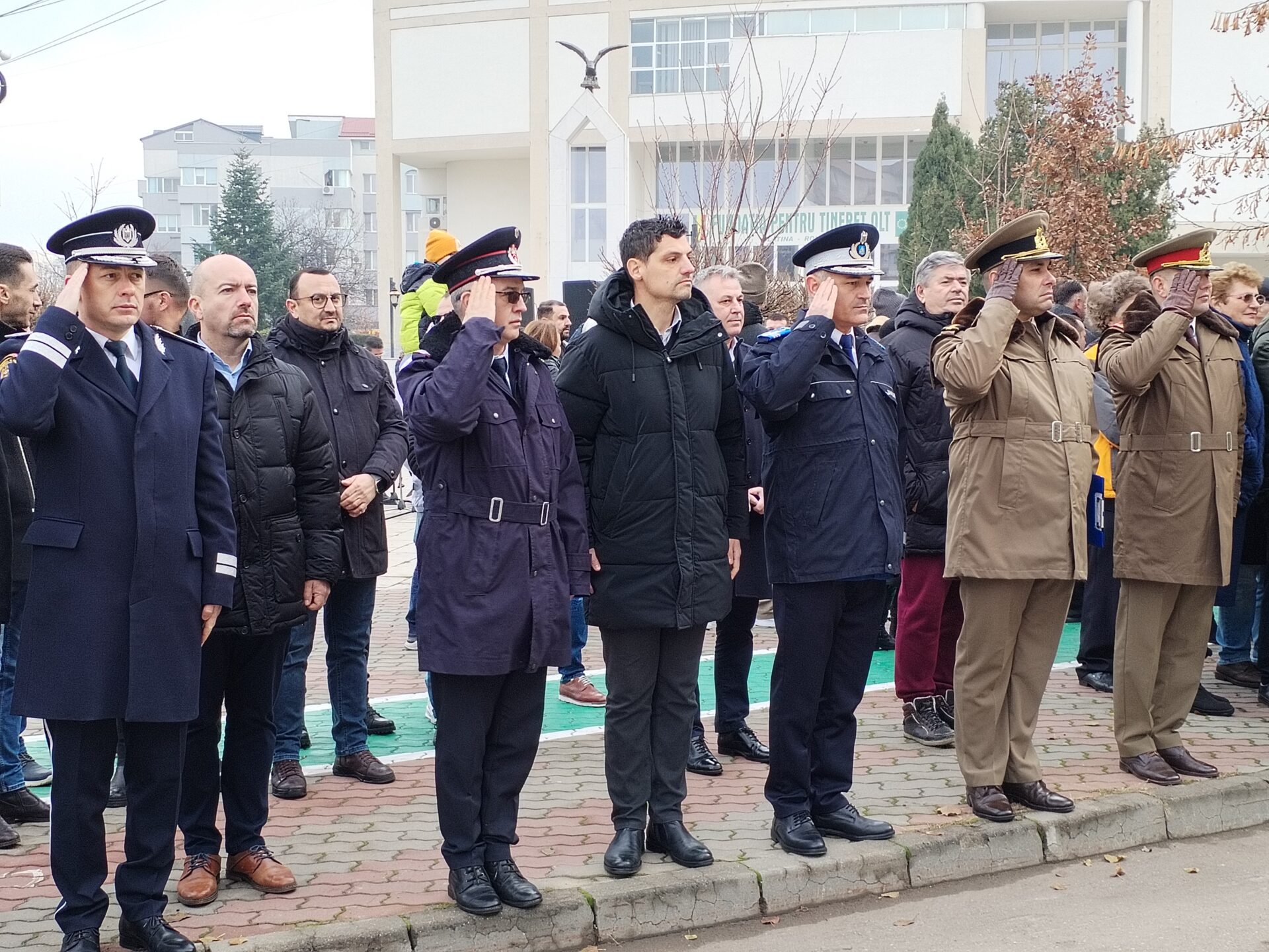 Îi enumerăm aici pe prefectul de Olt Mario De Mezzo, subprefectul Cosmin Floreanu, deputații PSD Florin Barbu, ministru al Agriculturii, și Emil Albotă, deputatul PNL Gigel Știrbu, Marius Oprescu, președintele Consiliului Județean, Virgil Delureanu și Ionuț Ivan, vicepreședinții aceleiași instituții, Emil Moț, primar al municipiului Slatina, Gigi Vîlceleanu și Alexandru Berechet, viceprimarii Slatinei, reprezentanți ai unor asociații de revoluţionari din Olt, dar și reprezentanţi ai instituțiilor Ministerului Afacerilor Interne și Ministerului Apărării Naționale din teritoriu.