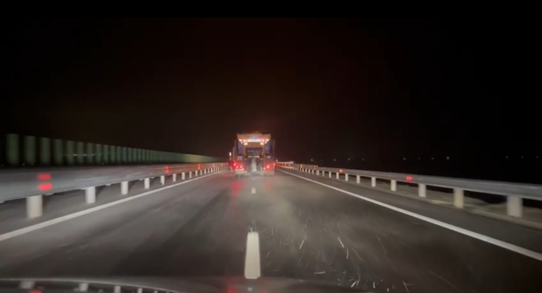 Pe șoseaua de mare viteză care tranzitează Oltul s-a acționat preventiv luni seara, pentru a nu se forma polei pe drum.