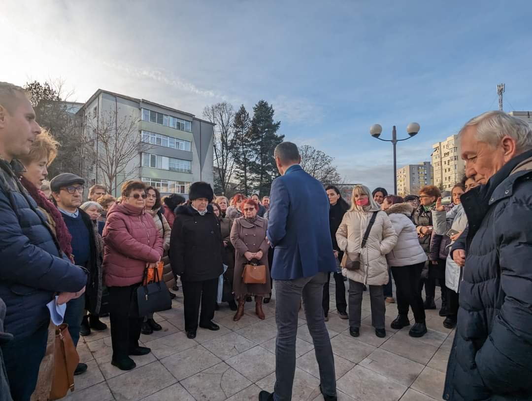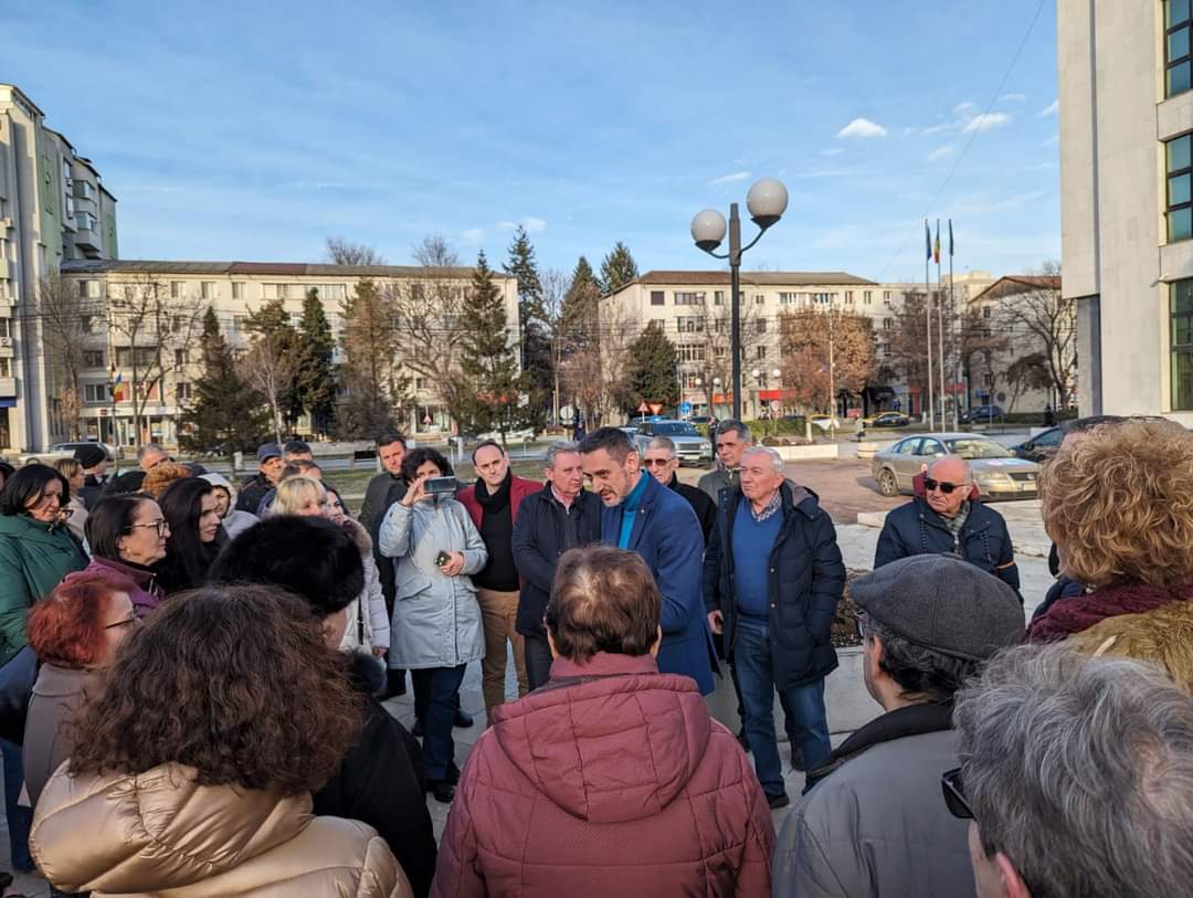 După ora 15:30, în fața instituției Guvernului în teritoriu au protestat câteva sute de medici de familie, iar prefectul județului a ieșit să poarte discuții cu participanții la miting.