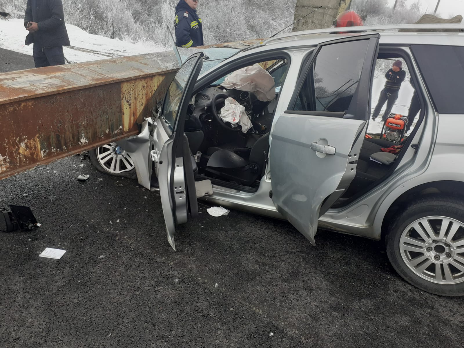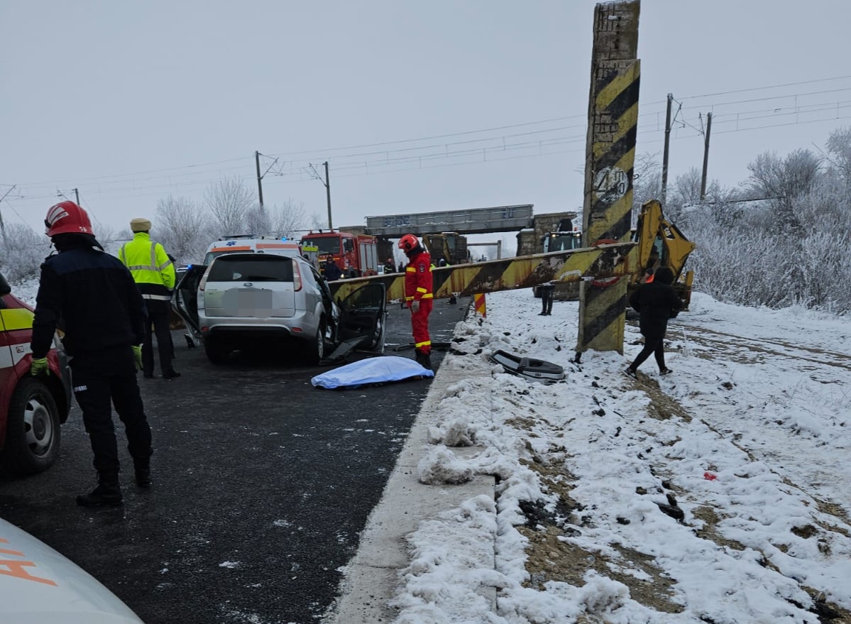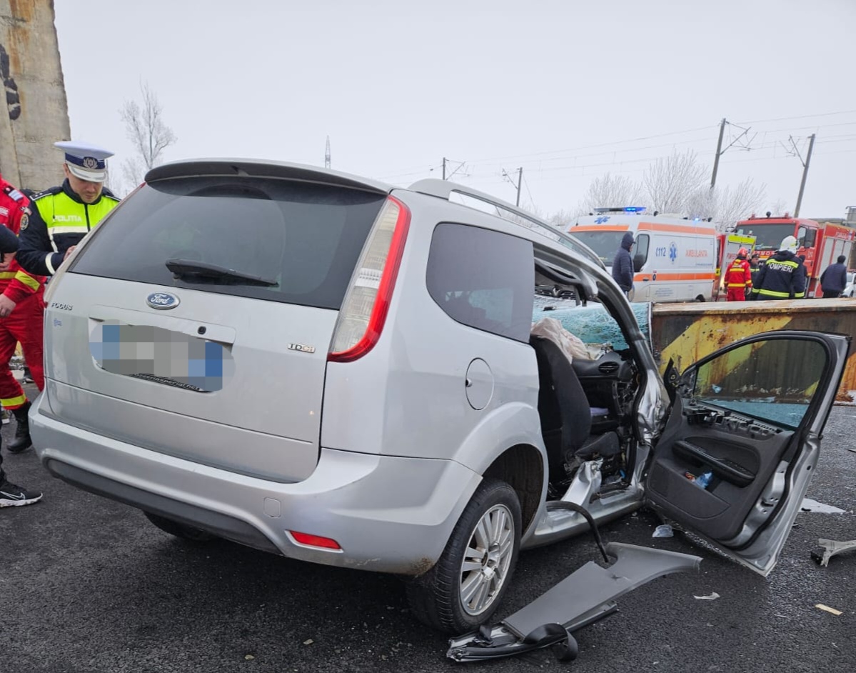 Un limitator de înălțime a căzut peste un autoturism, după ce a căzut peste o mașină, la Dăneasa. Sunt anunțate trei victime, una fiind declarată decedată