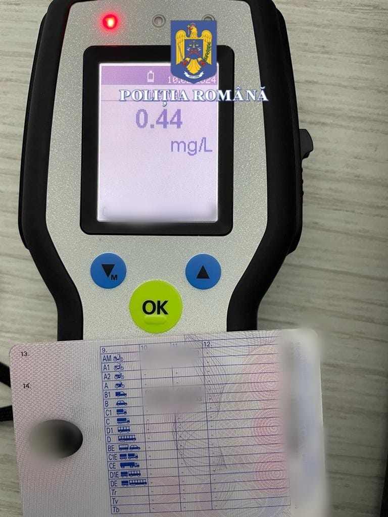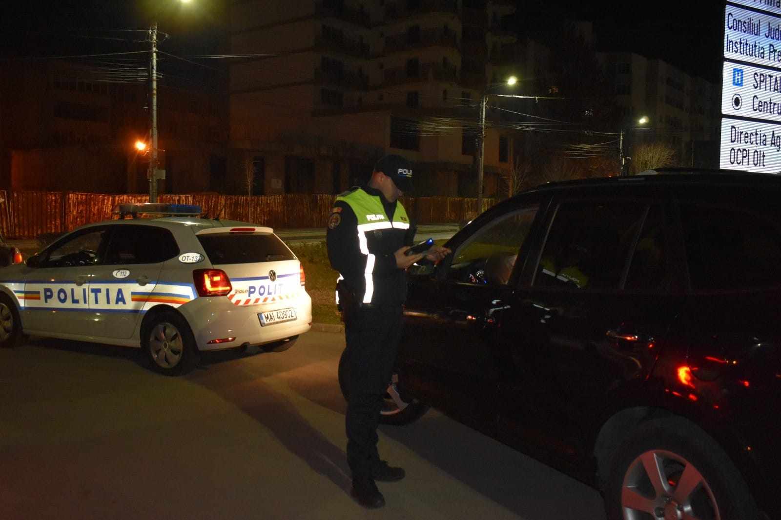 Tot sâmbătă, dar în jurul orei 20:00, polițiștii din cadrul Biroului Rutier Slatina au oprit pentru control, pe strada Mănăstirii, din localitate, un autoturism condus de un slătinean, în vârstă de 56 de ani. Conducătorul auto a fost testat cu aparatul alcooltest, rezultând o valoare de 0,44 miligrame pe litru alcool pur în aerul expirat. Bărbatul a fost condus la Spitalul Județean de Urgență Slatina, în vederea prelevării mostrelor biologice de sânge, pentru stabilirea cu exactitate a alcoolemiei. În cauză, polițiștii au întocmit dosar pentru săvârșirea infracțiunii de conducerea unui vehicul sub influența alcoolului sau a altor substanțe.