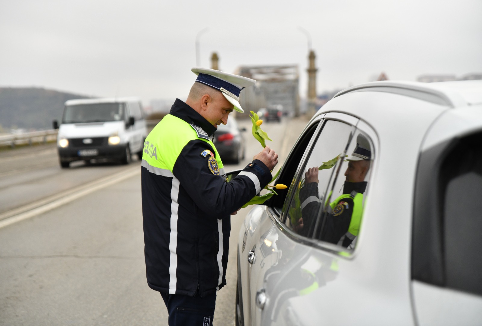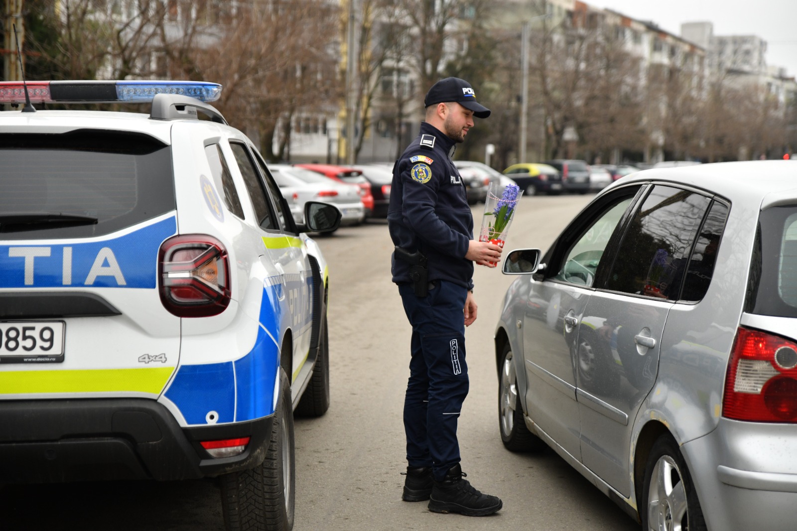 „Ca în fiecare an, polițiștii s-au înarmat cu flori, pe care le-au oferit conducătoarelor auto oprite în trafic. Odată cu simbolul primăverii oferit doamnelor și domnișoarelor aflate la volan, polițiștii le-au adresat acestora și recomandări de care trebuie să țină cont, pentru a nu fi implicate în incidente în trafic”, a declarat agent principal Claudiu Șerban, purtător de cuvânt al Inspectoratului de Poliție Județean Olt.