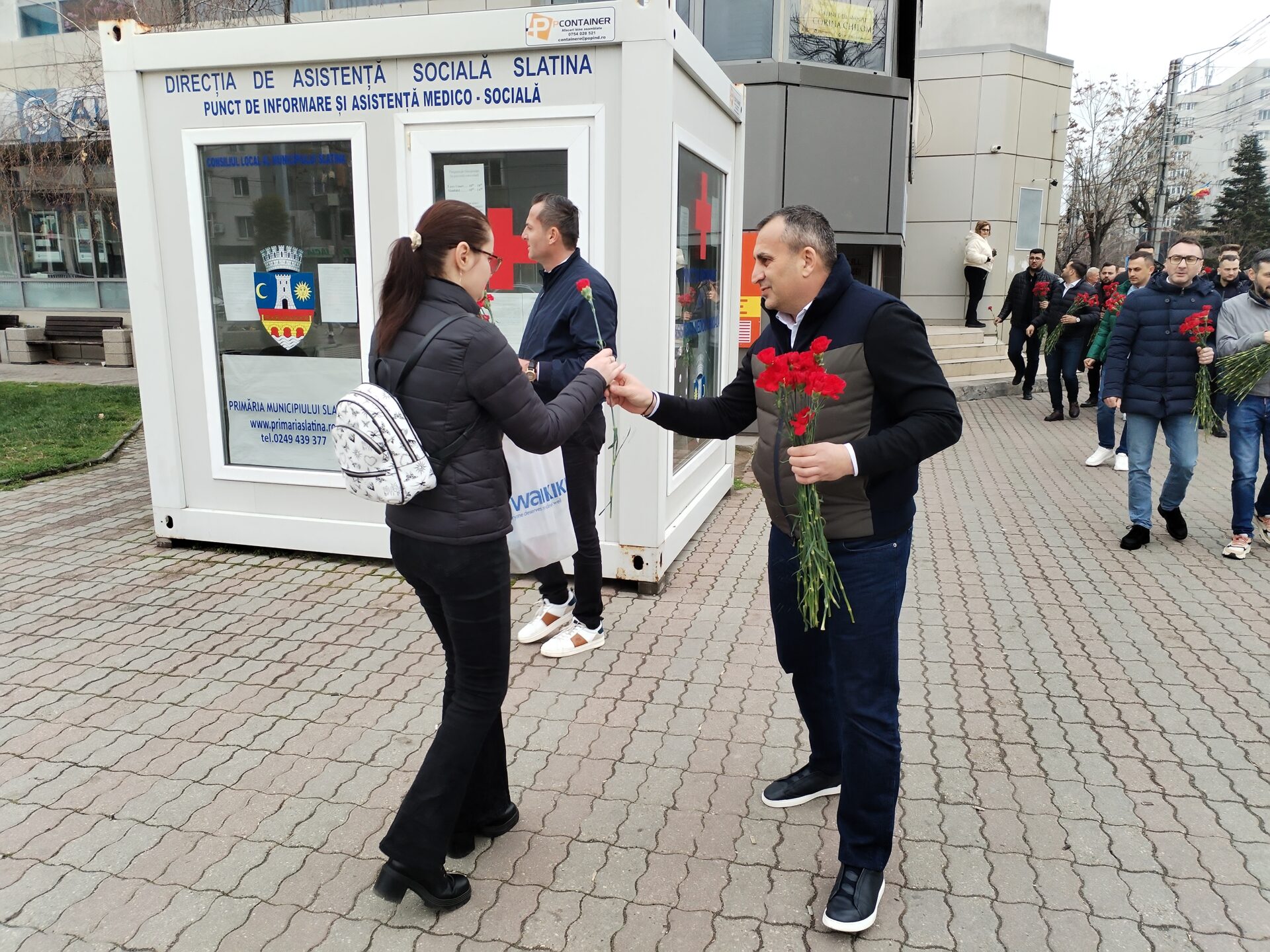 „Doamnelor, domnișoarelor, de 1 Martie, apoi de 8 Martie, vă aducem o floare și un zâmbet, pentru că începând din această zi începe primăvara. La mulți ani, slătinencelor! Ca în fiecare an, noi o să fim aici pentru dumneavoastră și o să încercăm să vă facem tot anul cât mai bun. La mulți ani!”, a declarat edilul.