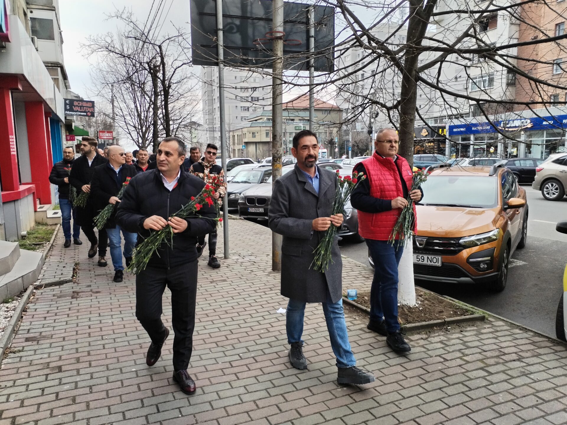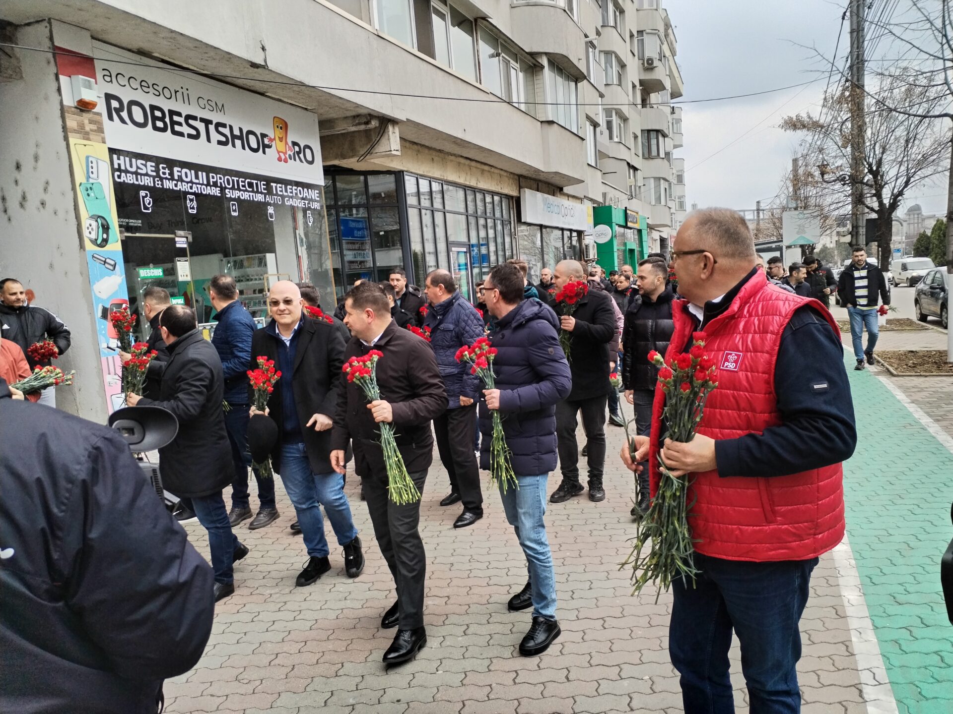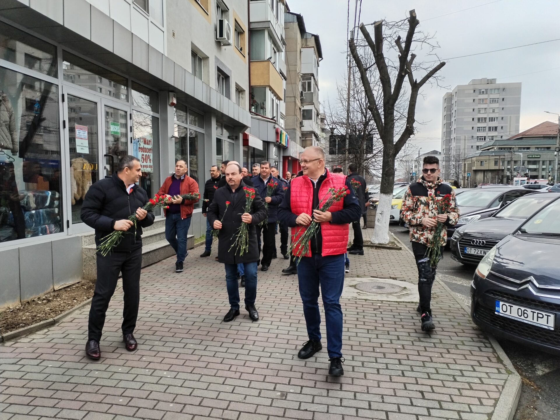 PSD-iștii, cu brațele încărcate de garoafe roșii, au plecat de la sediul partidului din centrul Slatinei, acțiunea fiind desfășurată anual, de nu mai puțin de 15 ani.