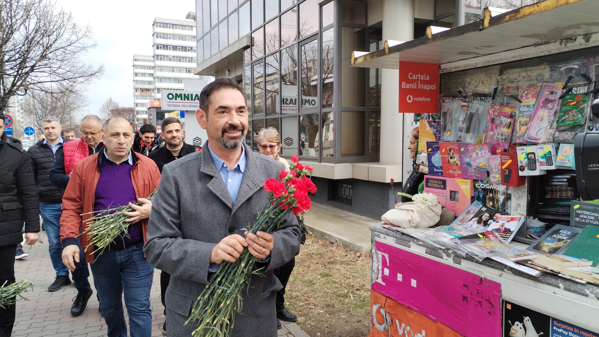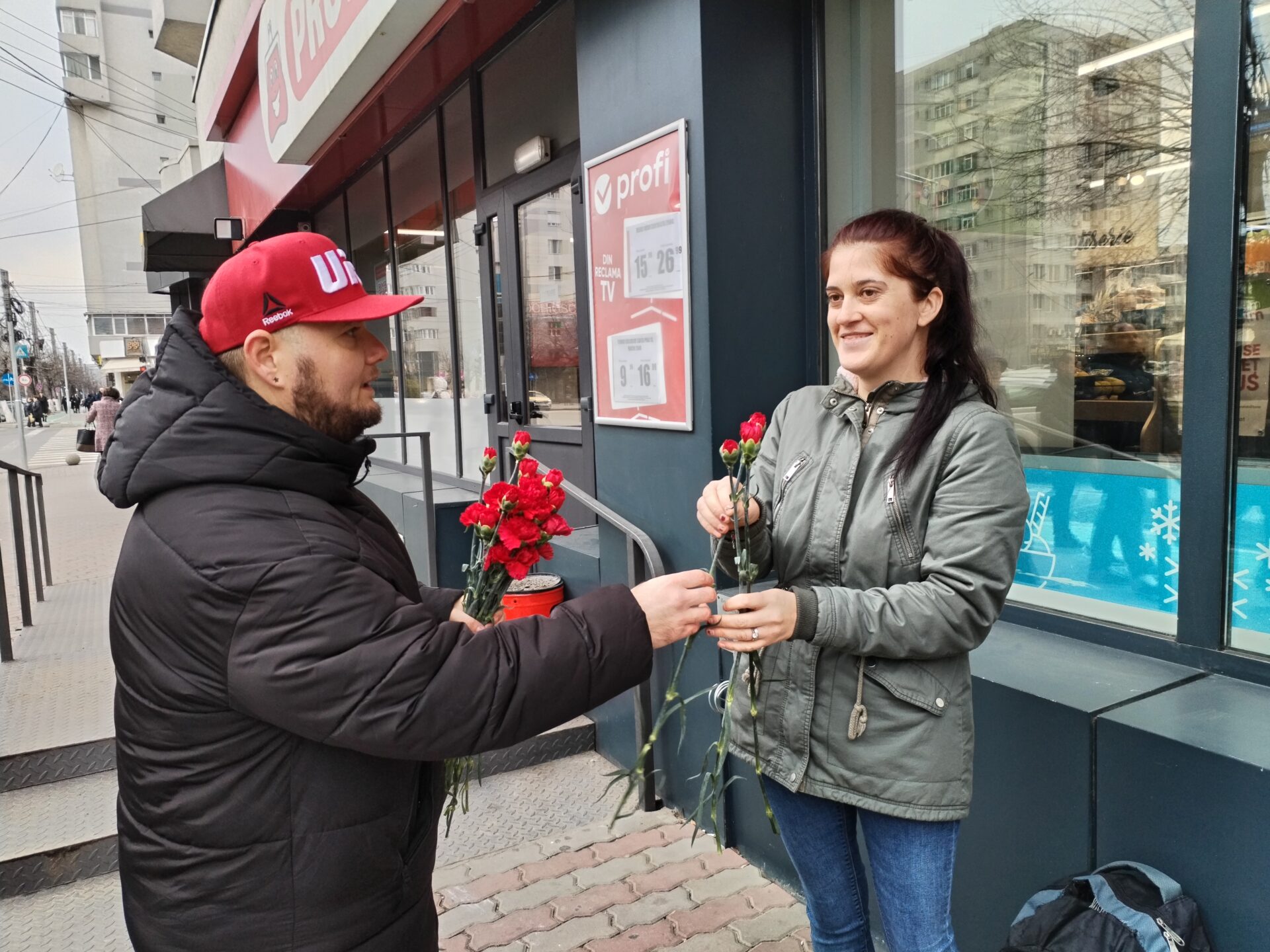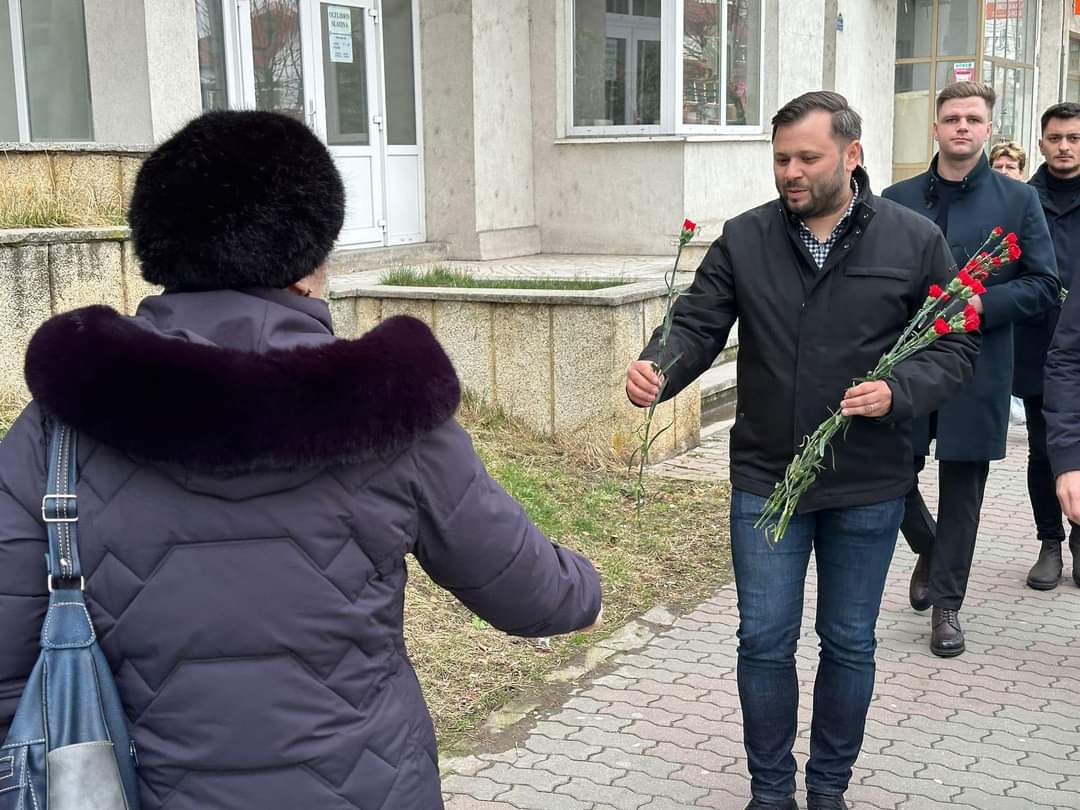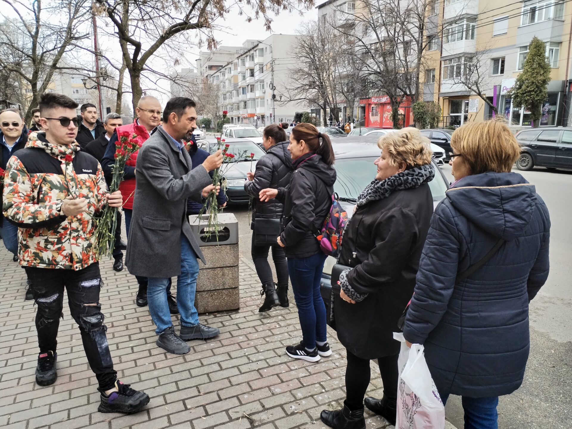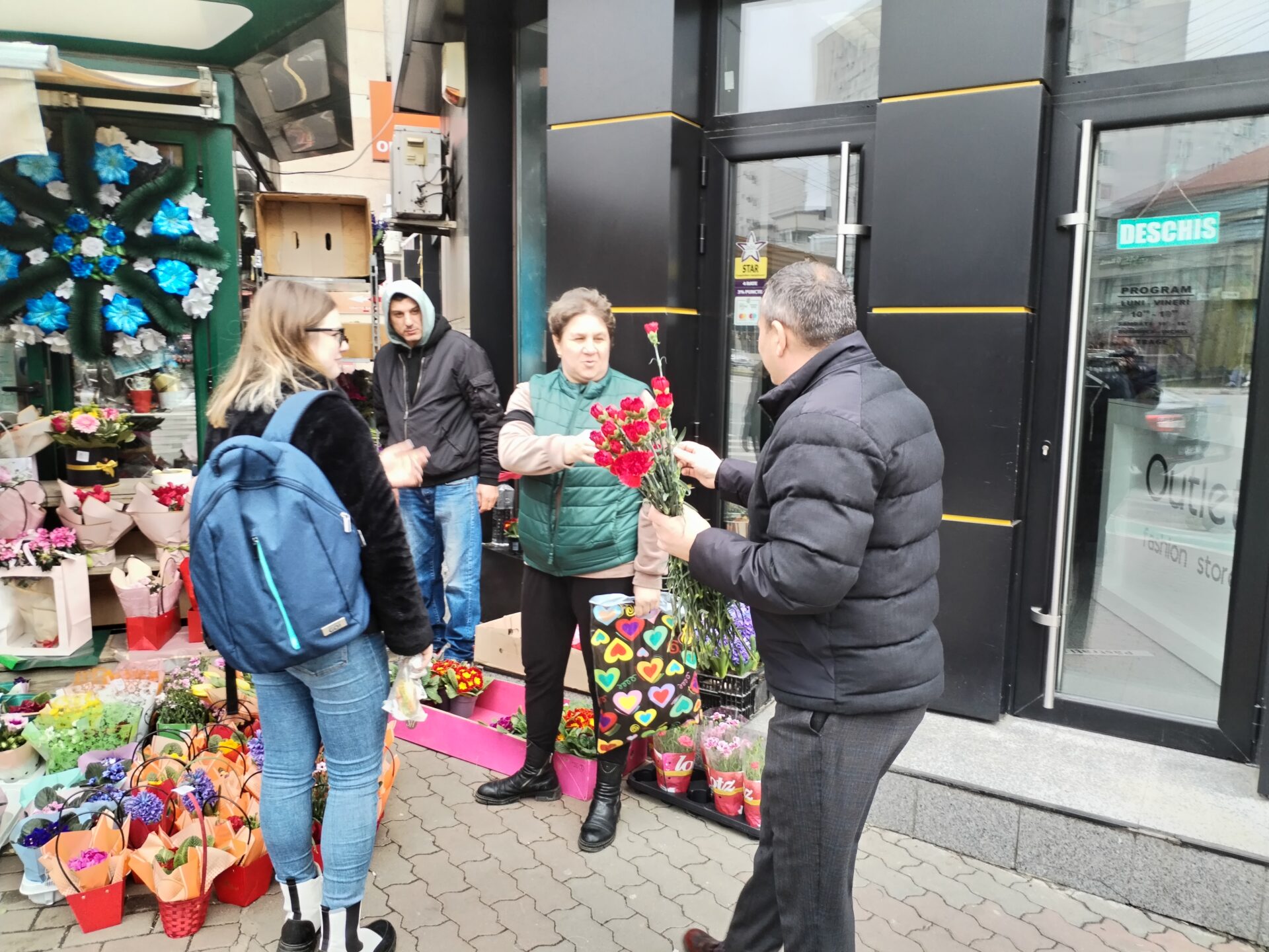 Social democrații din Olt, flori pentru doamnele și domnișoarele întâlnite pe străzile din Slatina, de Ziua Femeii