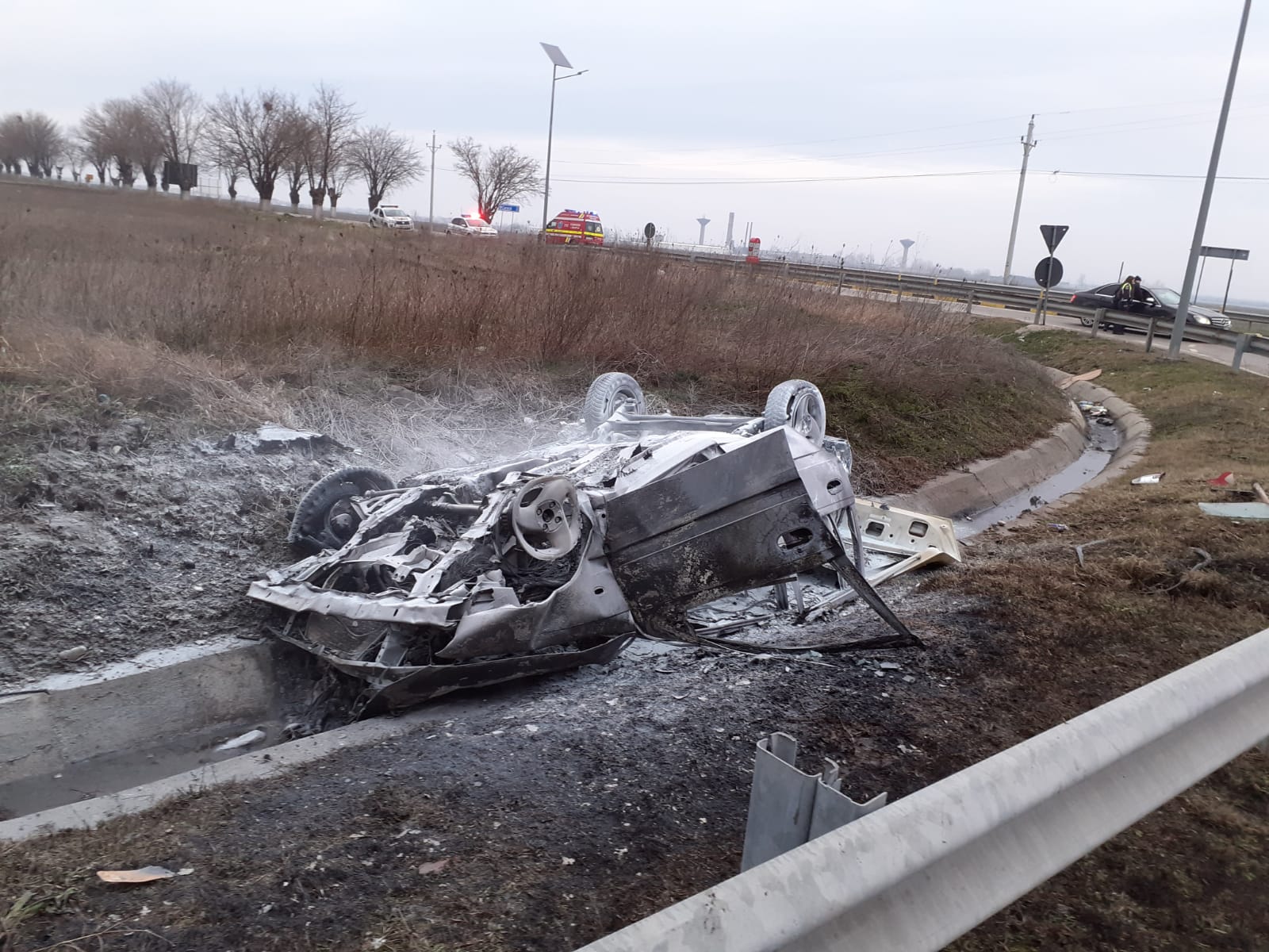 Apelul la 112 a fost făcut în jurul orei 06:20 a dimineții, cel mai probabil de către un alt participant la trafic, însă pentru cel care se afla la volan nu s-a mai putut face nimic, fiind găsit carbonizat.