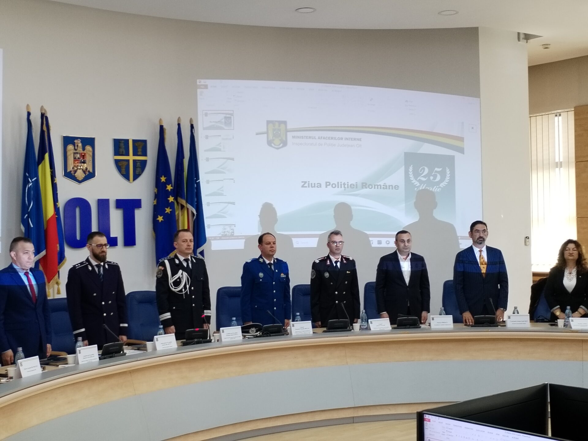 Alături de comisarul șef Ionuț Ilinca, inspectorul șef al Poliției Olt, au fost prezenți zeci de reprezentanți ai autorităților locale și județene cu care IPJ colaborează, precum și cadre ale inspectoratului, evenimentul dedicat Zilei Poliției debutând cu intonarea imnului național al României și un moment de reculegere în memoria colegilor polițiști căzuți la datorie.