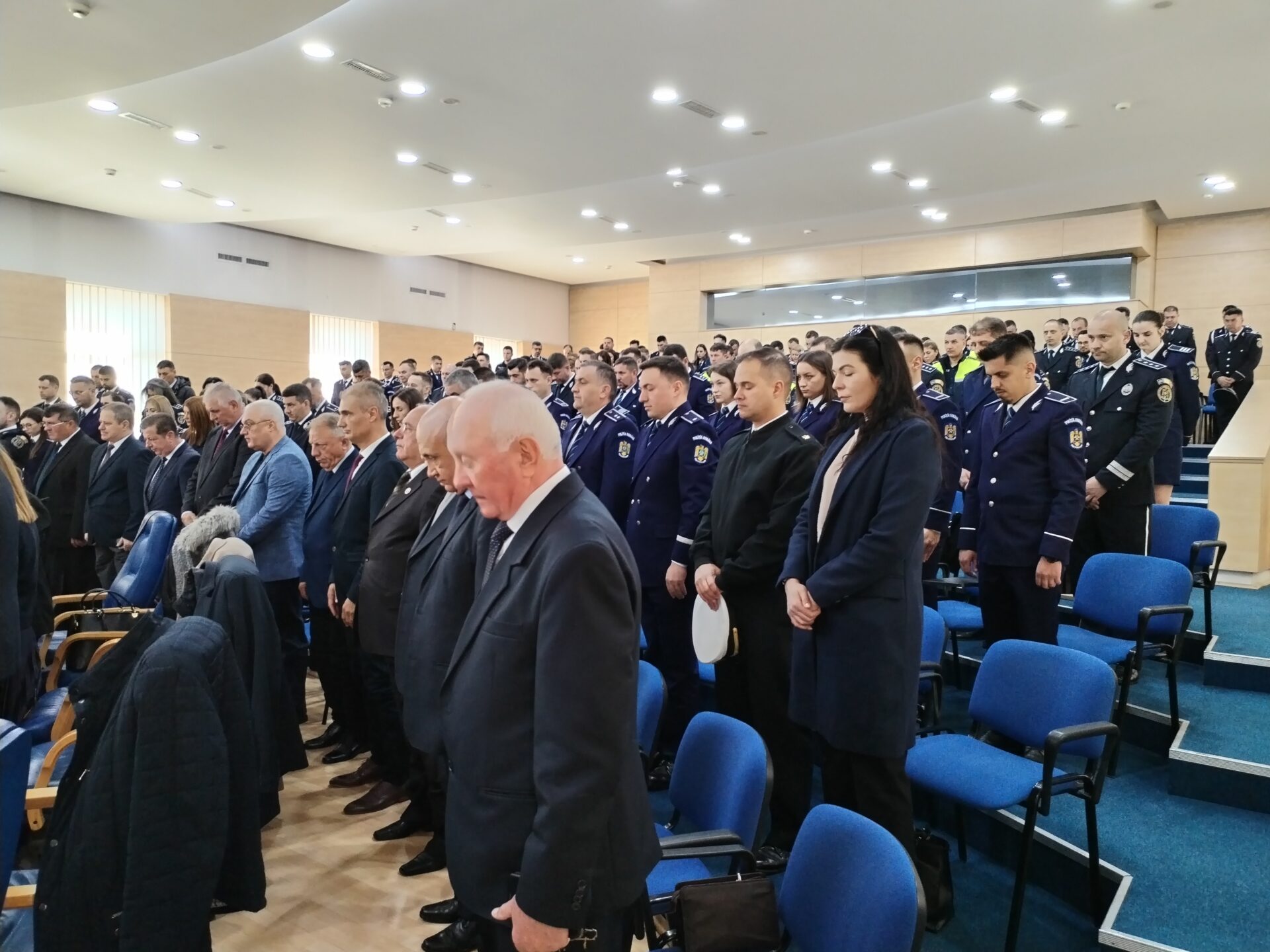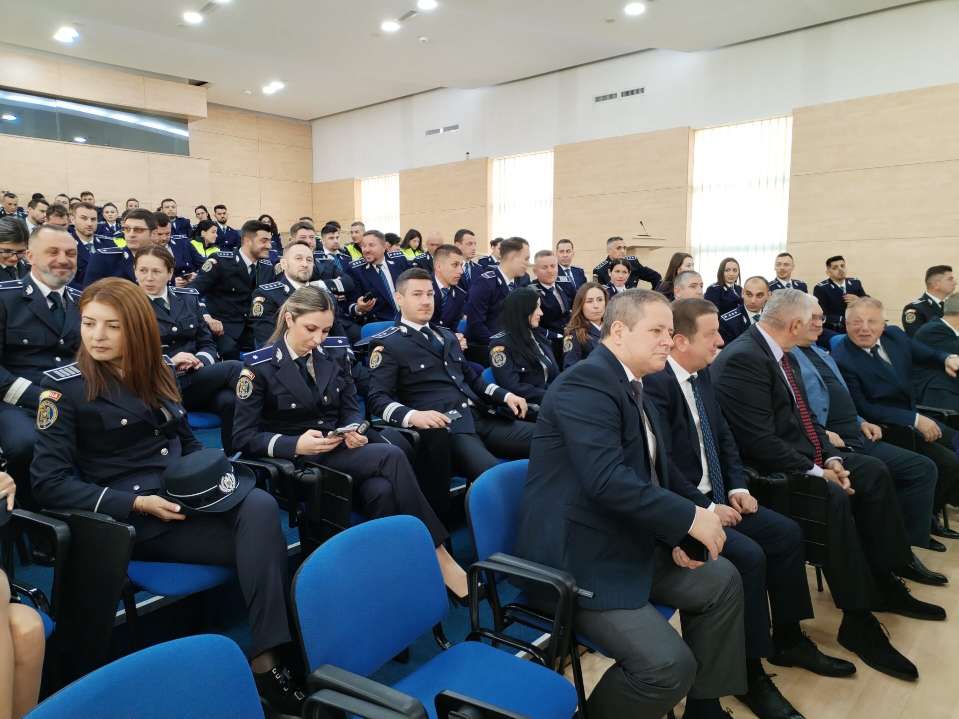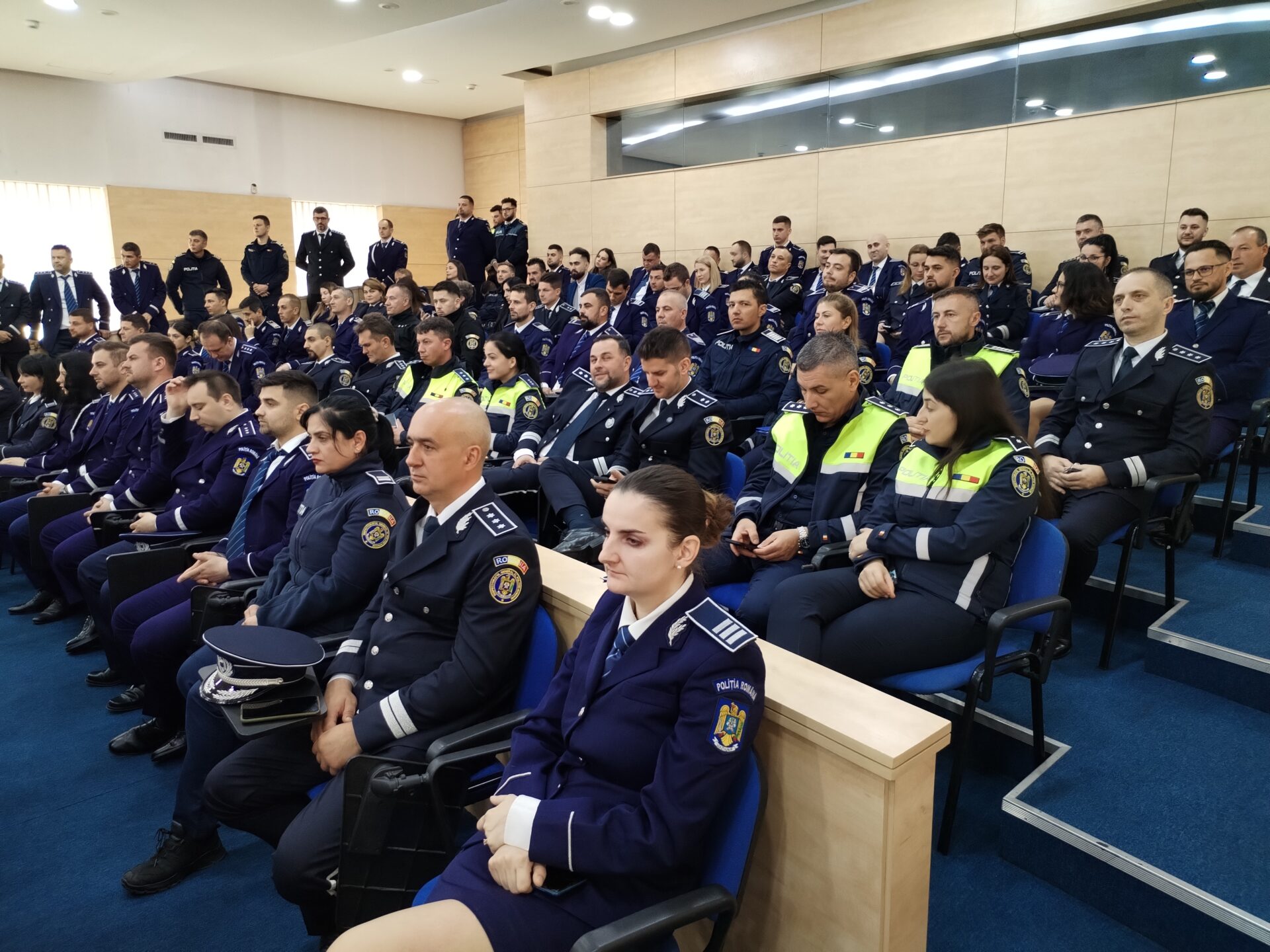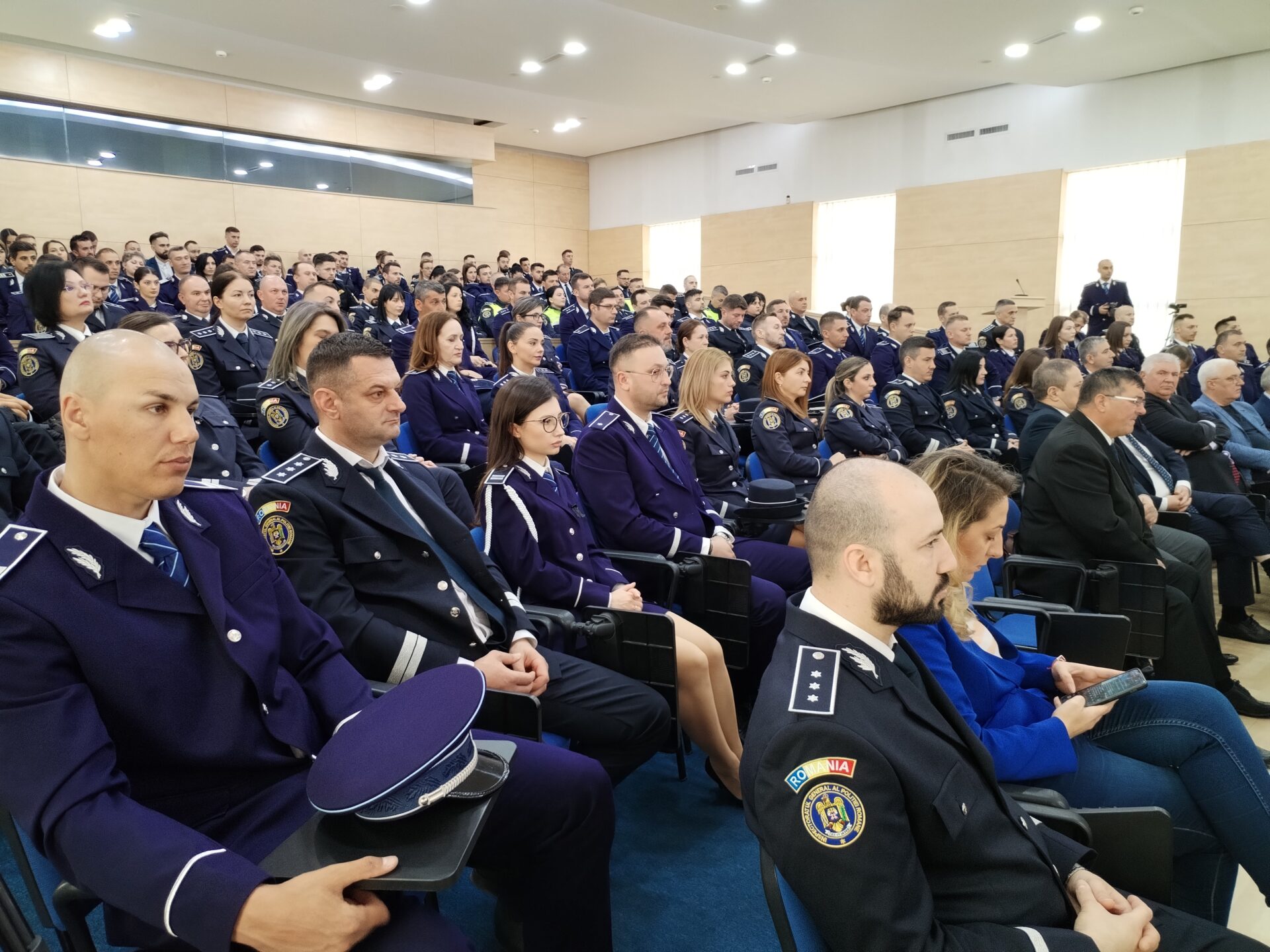 La zi de sărbătoare, nu mai puțin de 144 de polițiști au fost avansați în grad, dintre aceștia 24 fiind ofițeri, iar restul agenți. Avansați la termen au fost 118 polițiști, 23 fiind ofițeri, iar înainte de termen au fost 26 de polițiști, unul fiind ofițer. Pentru buna colaborare pe care inspectoratul o are cu instituțiile din județ, dar și cu jurnaliștii din mass-media, comisarul șef Ionuț Ilinca a ținut să înmâneze acestora diplome aniversare.