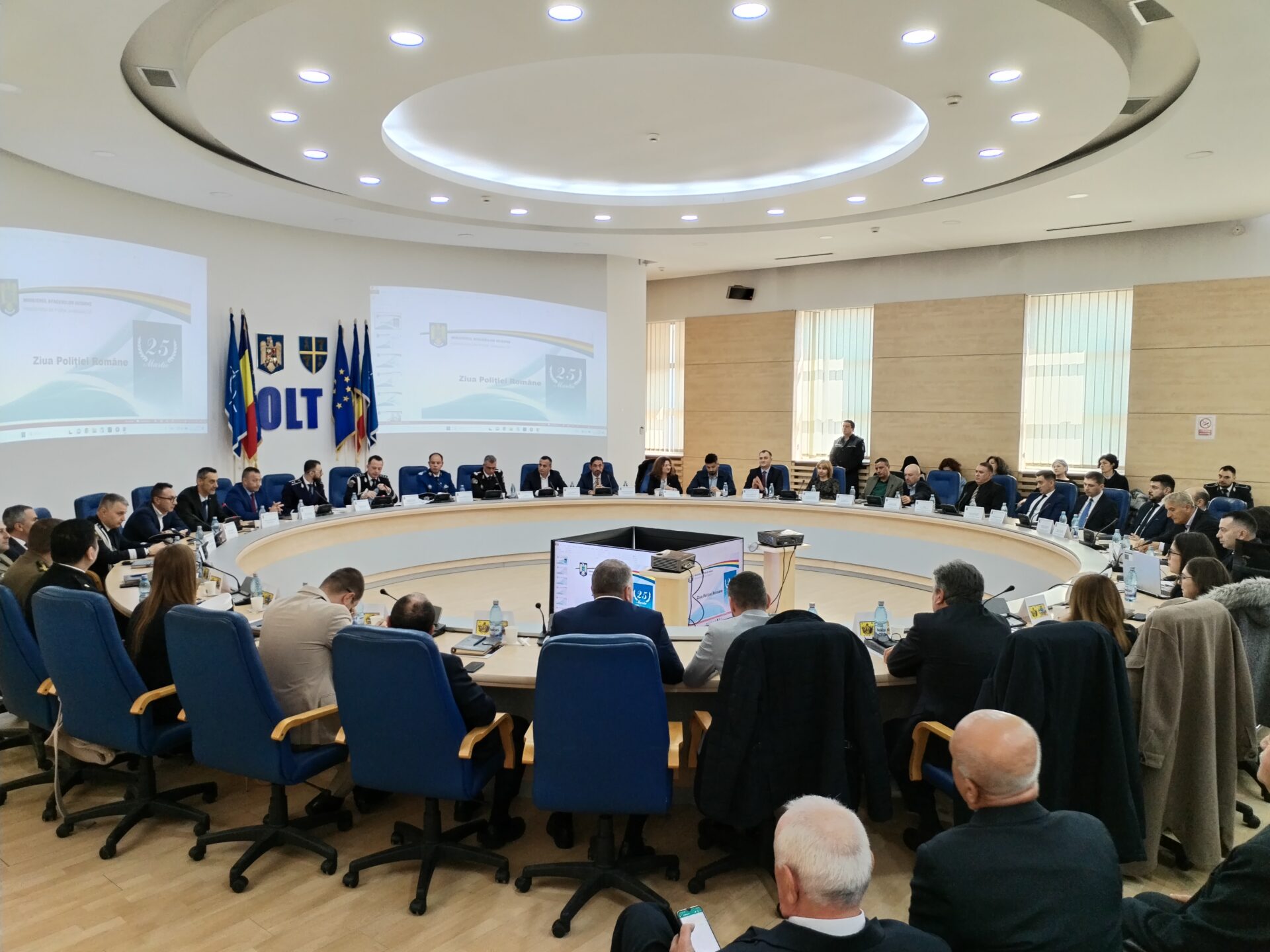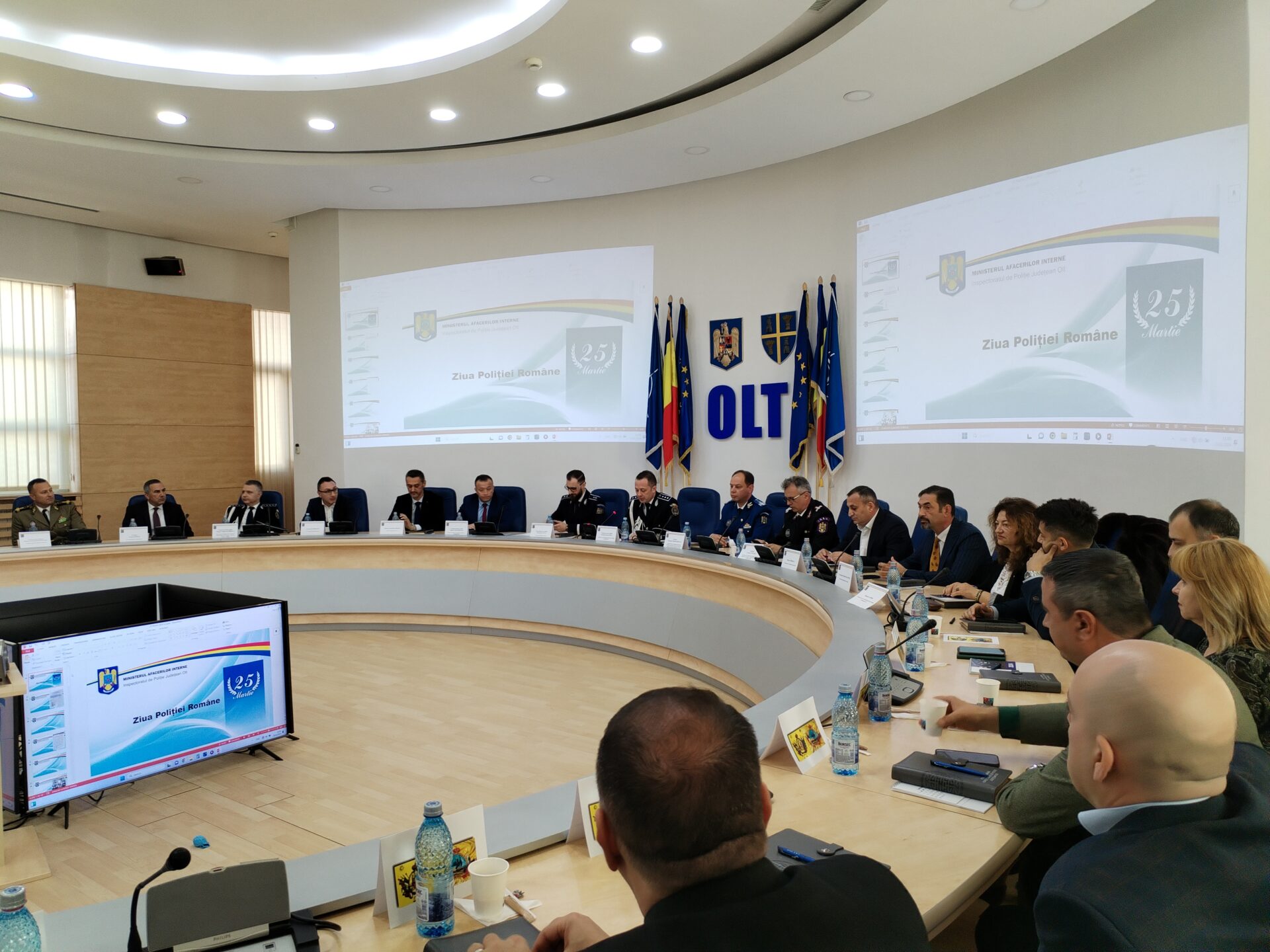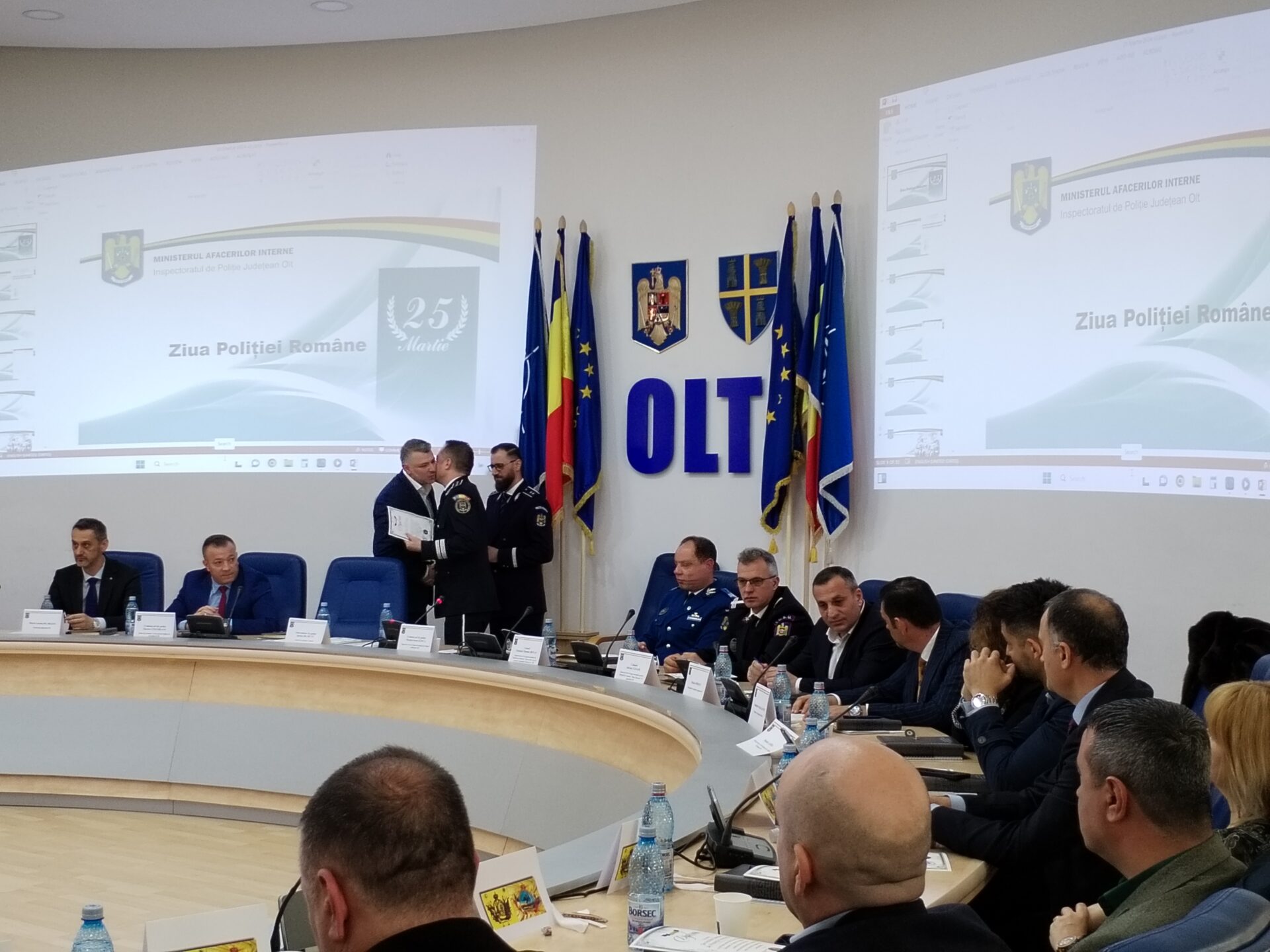 După citirea mai multor mesaje de mulțumire ale mai marilor Inspectoratului General al Poliției Române, prefectul județului, împreună cu președintele CJ Olt, șefi ai celorlalte instituții de teritoriu ale Ministerului Afacerilor Interne, dar și alți invitați, au ținut să mulțumească la rândul lor polițiștilor olteni pentru buna colaborare interinstituțională în interesul comunității.
