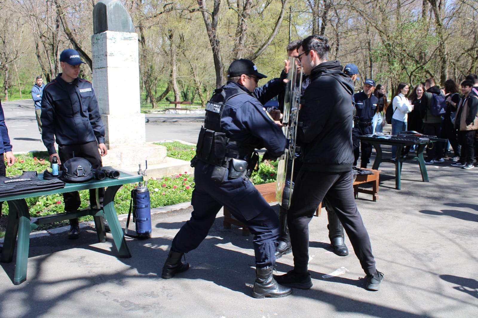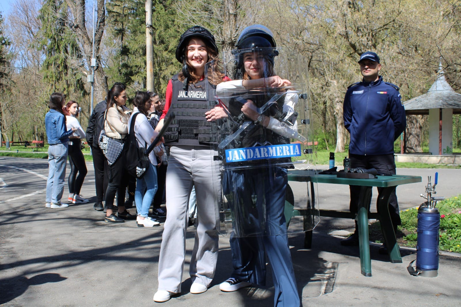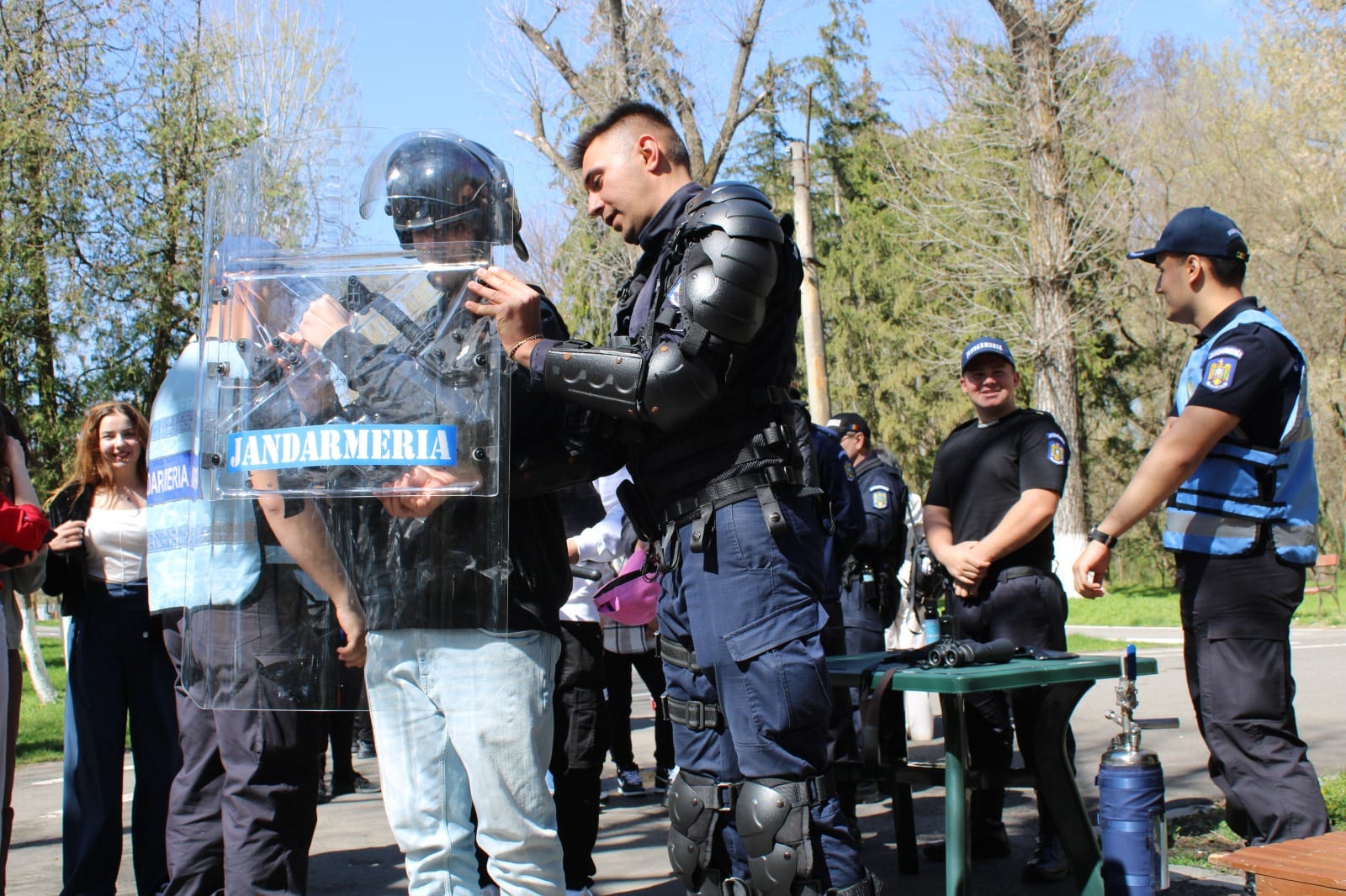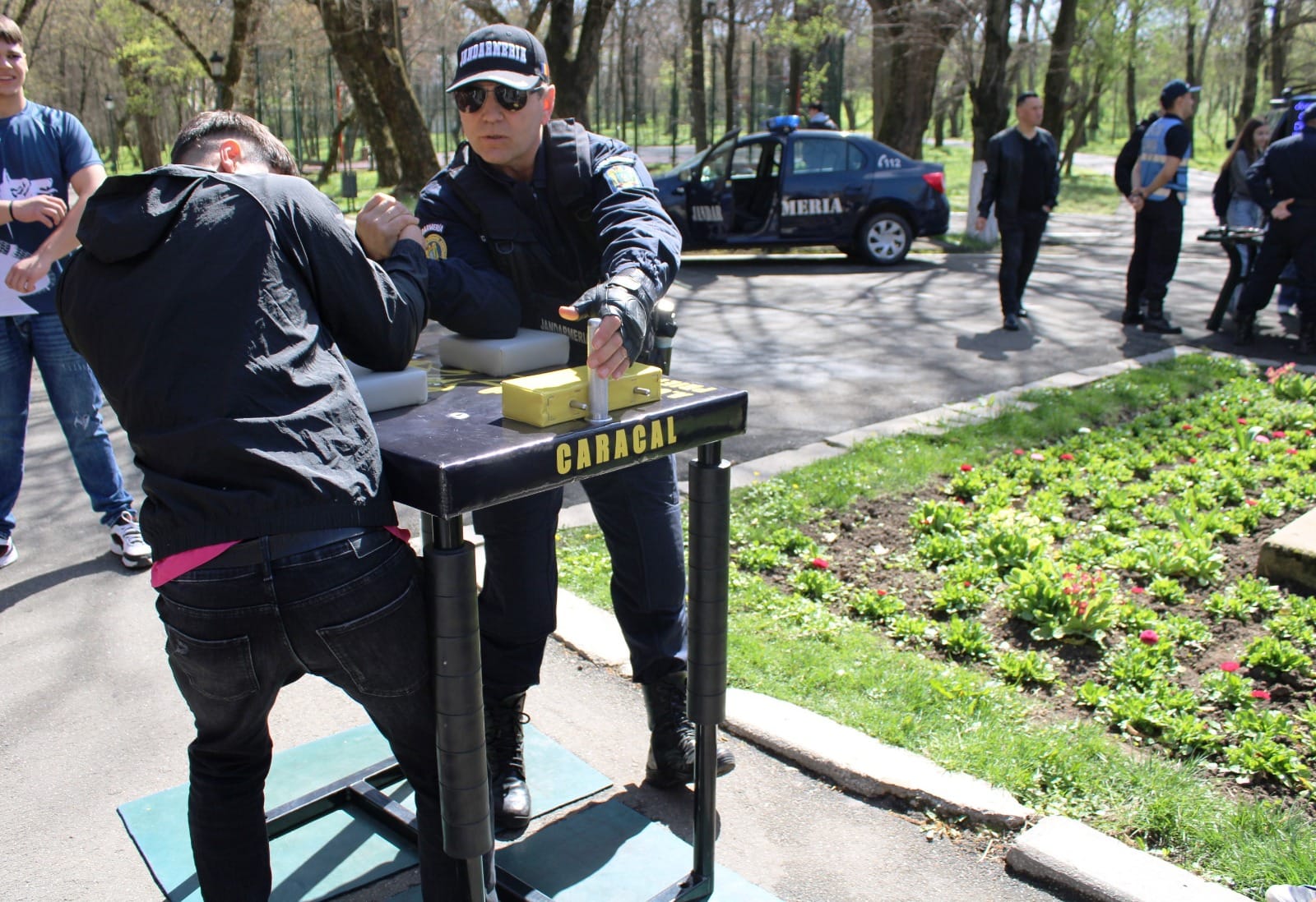 Joi, 28 martie, cu începere de la ora 12:00, jandarmii au fost prezenți și în Parcul „Constantin Poroineanu” din municipiul Caracal. Aici, oamenii legii au fost prezenți pentru a arăta tehnica și mijloacele de protecție și intervenție, autospeciale din dotarea Jandarmeriei Olt, precum și pentru a desfășura activități sportiv-recreative. Aproape 60 de tineri caracaleni au fost prezenți în zona de agrement unde nu au ezitat să-i provoace pe jandarmi la un meci de skandenberg sau să facă, împreună cu ei, o tură cu ATV-ul.
