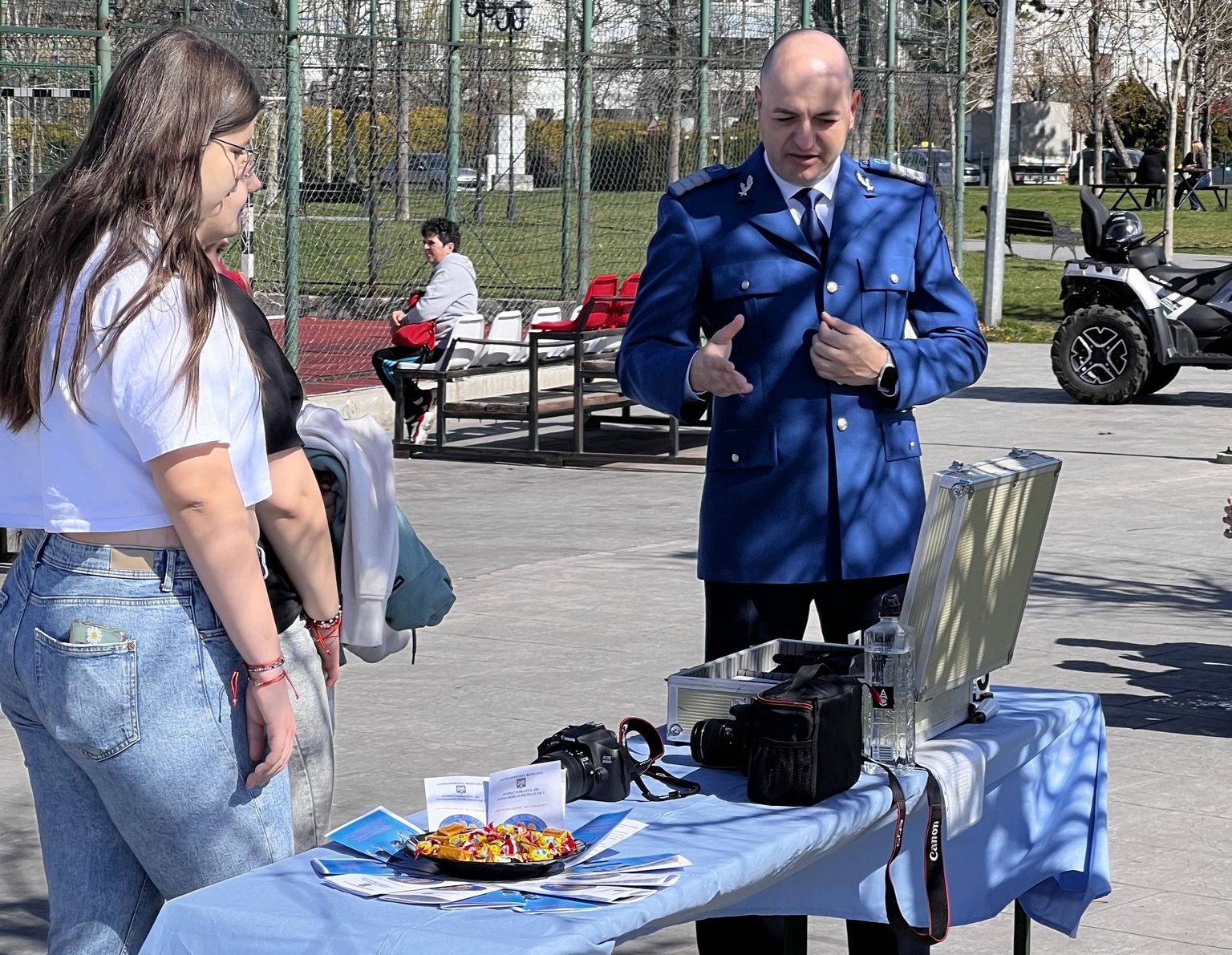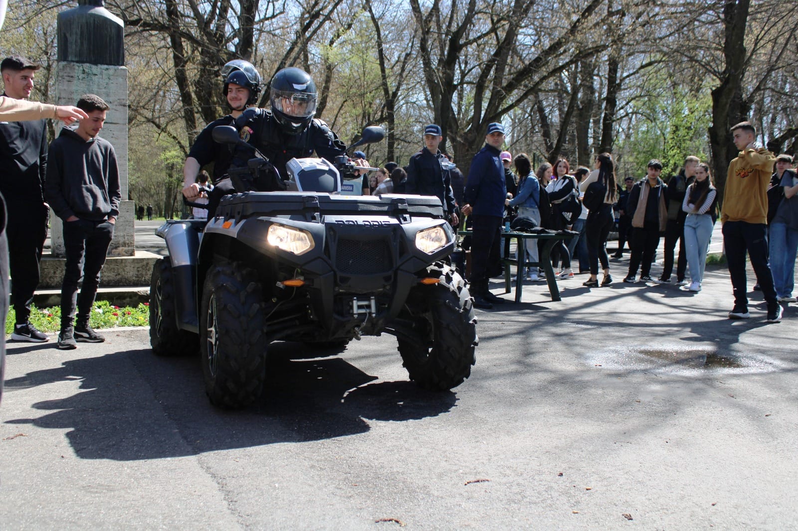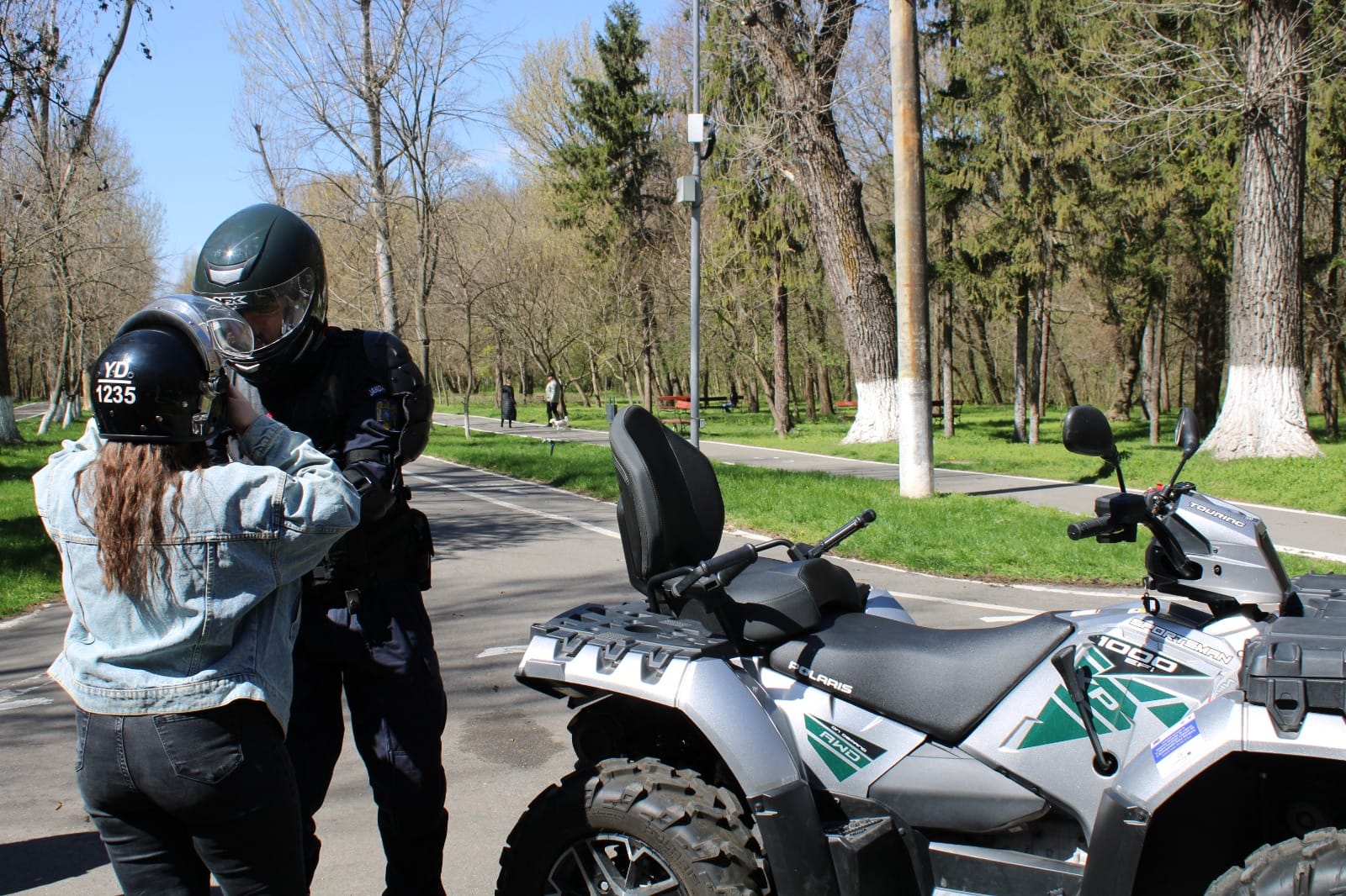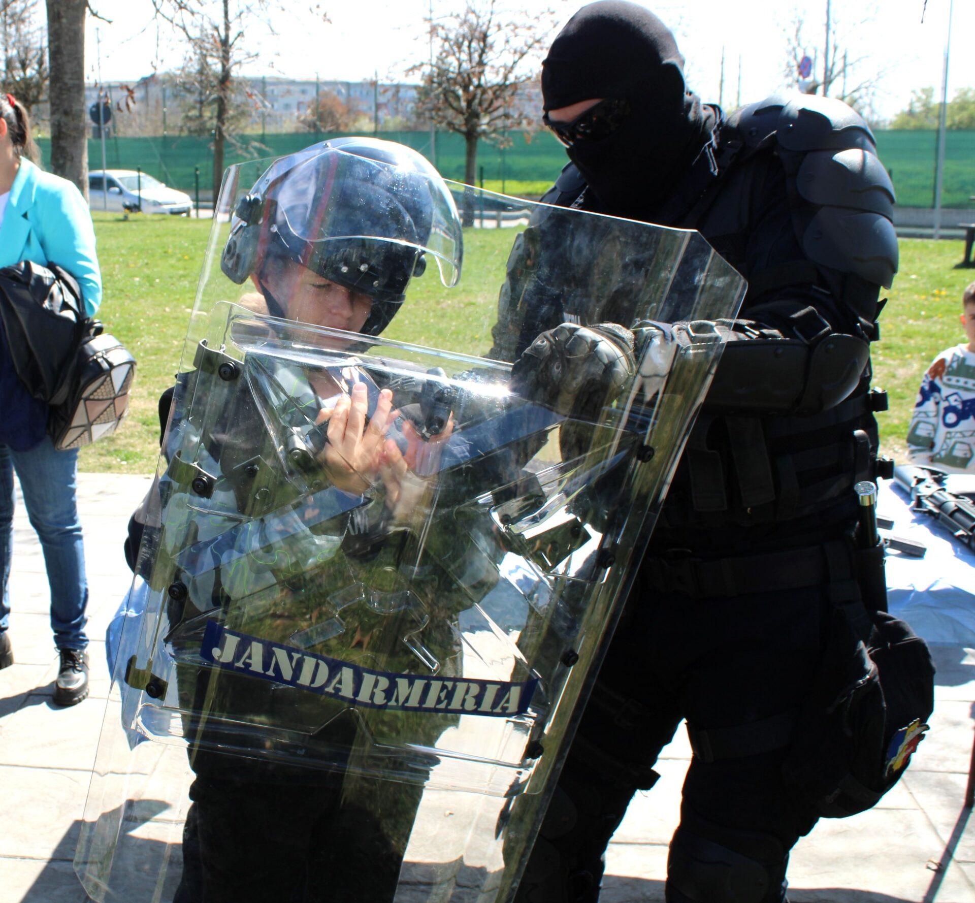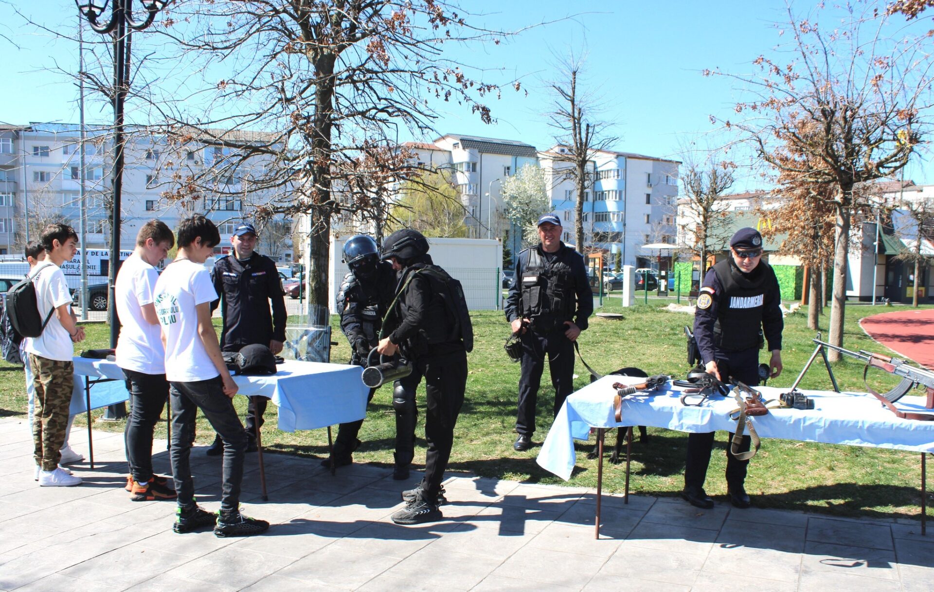 Joi, 28 martie, cu începere de la ora 12:00, jandarmii au fost prezenți și în Parcul „Constantin Poroineanu” din municipiul Caracal. Aici, oamenii legii au fost prezenți pentru a arăta tehnica și mijloacele de protecție și intervenție, autospeciale din dotarea Jandarmeriei Olt, precum și pentru a desfășura activități sportiv-recreative. Aproape 60 de tineri caracaleni au fost prezenți în zona de agrement unde nu au ezitat să-i provoace pe jandarmi la un meci de skandenberg sau să facă, împreună cu ei, o tură cu ATV-ul.