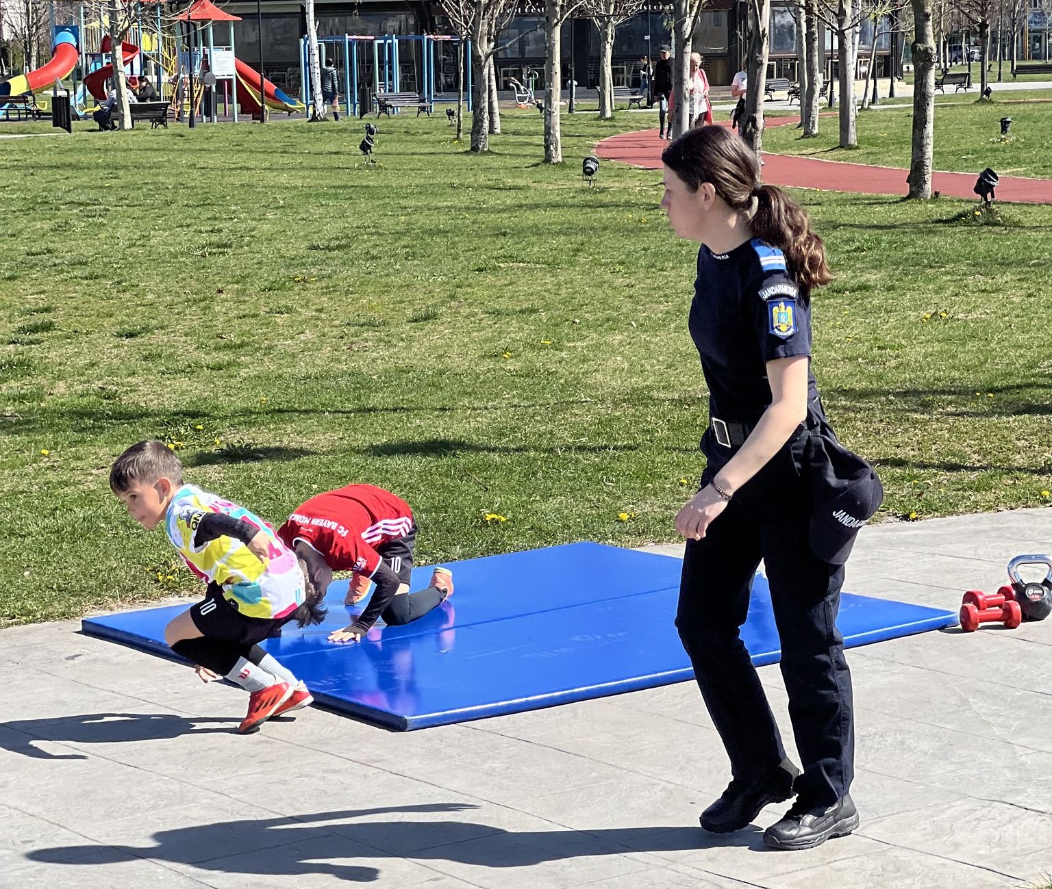 „O provocare pentru cei prezenți în parc a fost parcurgerea unui traseu cu obstacole, contratimp. Colegii noștri le-au prezentat fiecare element al traseului și, împreună cu jandarmii, copiii și tinerii au experimentat un antrenament specific pregătirii de specialitate, acesta fiind necompetitiv”, a declarat plutonierul adjutant Simona Ciopor, purtător al Jandarmeriei Olt.