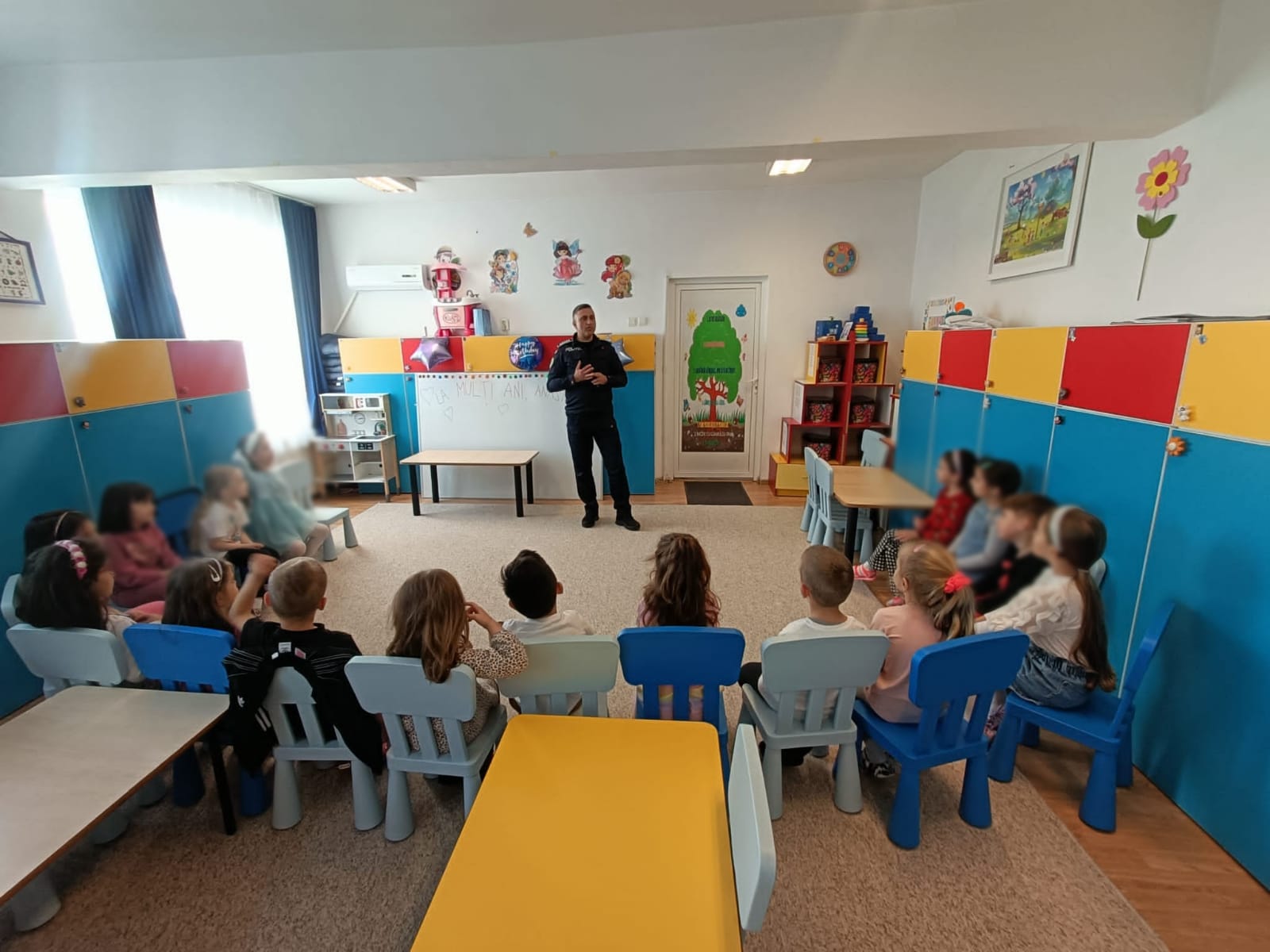 Polițiștii Biroului Siguranță Școlară și ai Serviciului Rutier din cadrul Inspectoratului de Poliție Județean Olt au desfășurat vineri, 12 aprilie 2024, activități educativ-preventive la Grădinița cu Program Prelungit „Ion Creangă”, din municipiul Slatina.