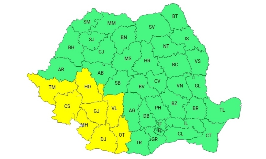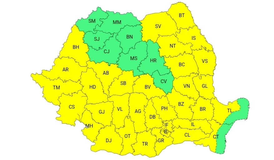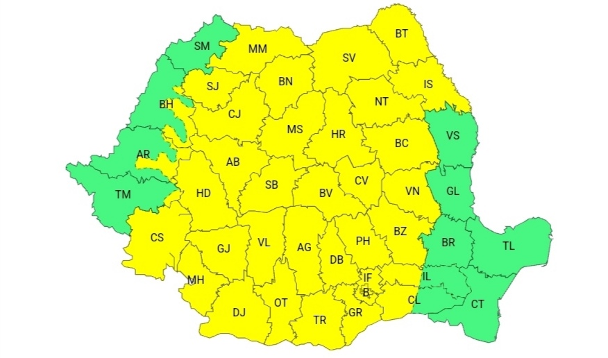 ANM mai transmite că și de marți, 2 iulie, ora 10:00, până miercuri, 3 iulie, ora 10:00, va fi Cod galben de instabilitate atmosferică: „În sudul Banatului, Oltenia, Transilvania, cea mai mare parte a Munteniei și Moldovei, local în Maramureș, precum și la munte, vor fi perioade cu instabilitate atmosferică. Aceasta se va manifesta prin averse torențiale, intensificări ale vântului (rafale în general de 50…70 km/h), vijelii, grindină și descărcări electrice. În intervale scurte de timp sau prin acumulare cantitățile de apă vor fi de 20…40 l/mp și pe arii restrânse de peste 50 l/mp”.