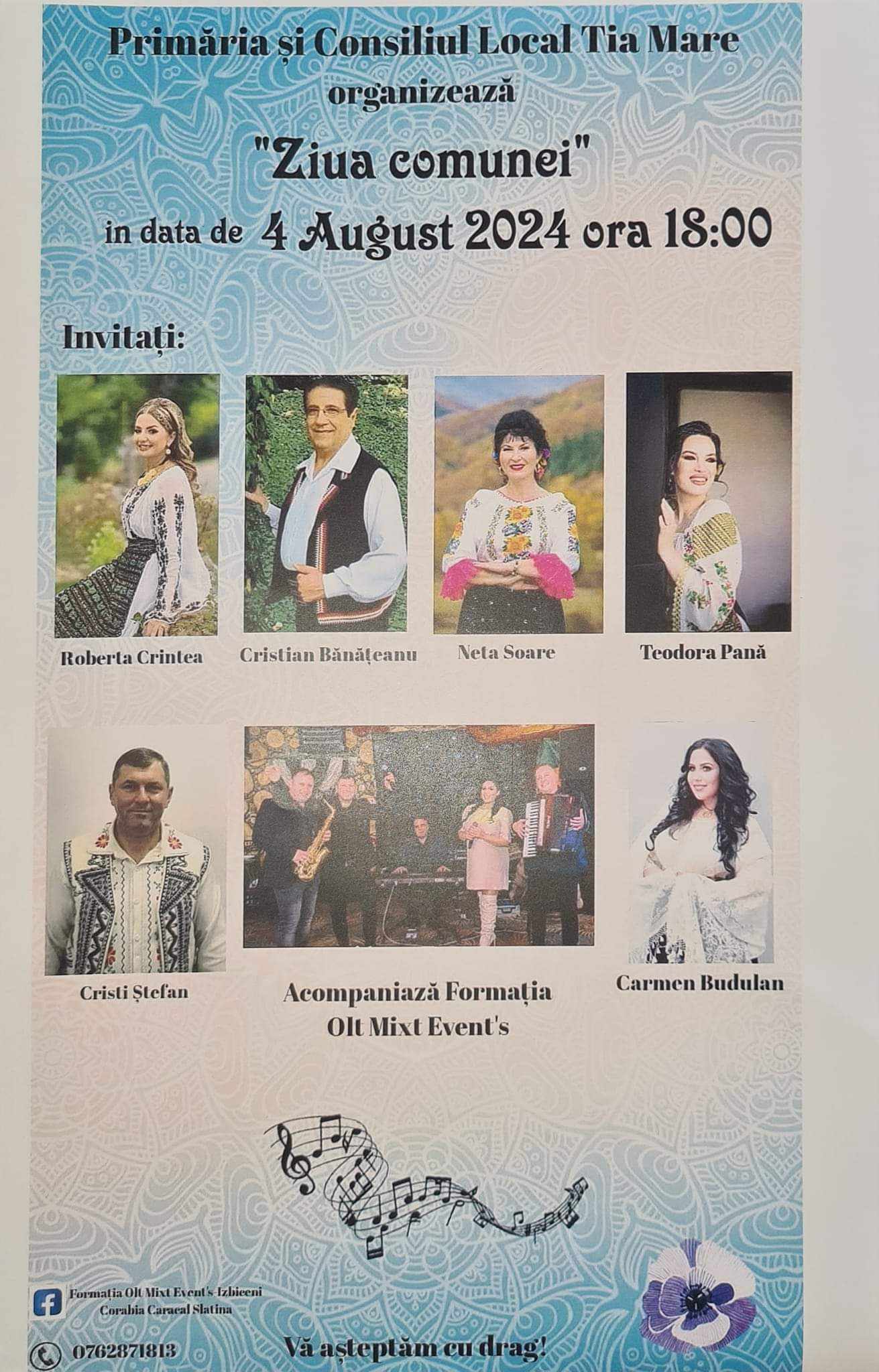 În aceeași zi de 4 august 2024, tot de la ora 18:00, Primăria și Consiliul Local Tia Mare organizează Ziua comunei. Vor fi într-un spectacol extraordinar artiștii Roberta Crintea, Cristian Bănățeanu, Neta Soare, Teodora Pană, Constantin Ștefan și Carmen Budulan, acompaniamentul muzical fiind asigurat de Formația „Olt Mixt Event’s”.