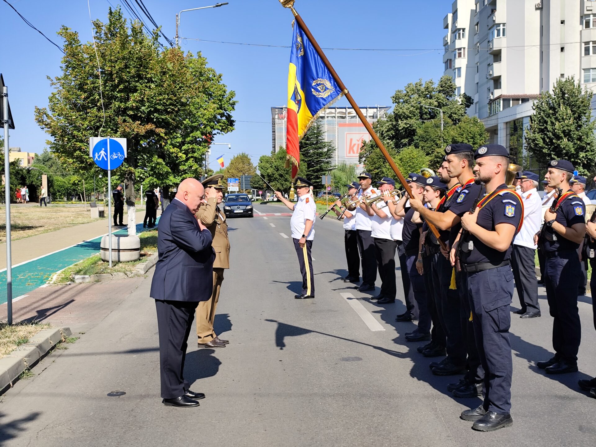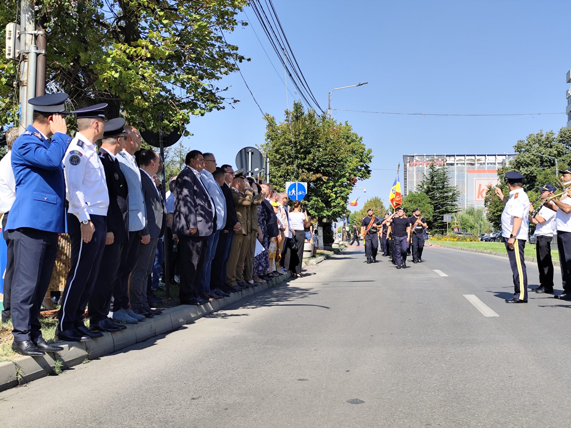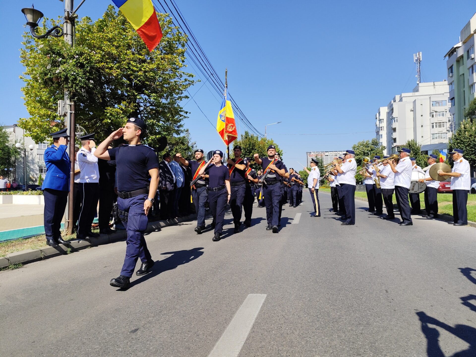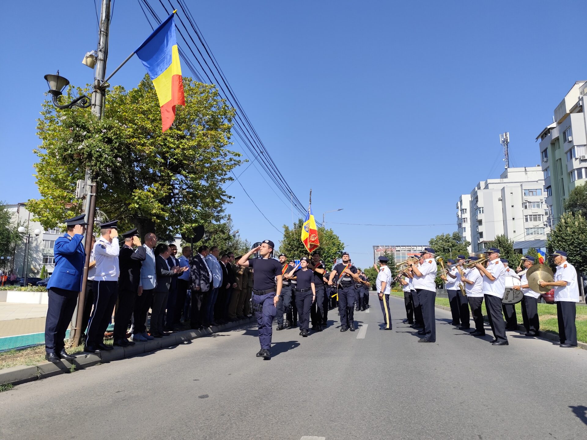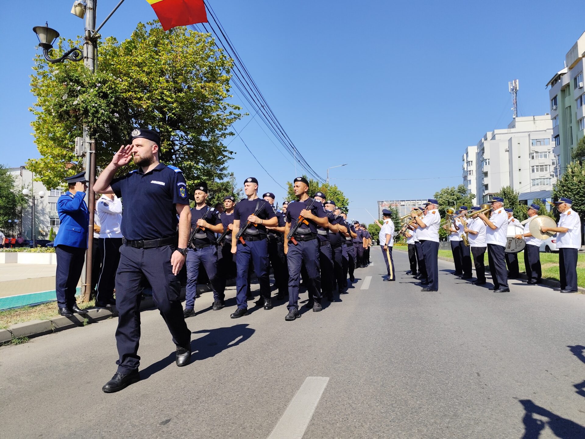 Evenimentul a fost completat și de intonarea imnului național al României, pentru ca la finalul ceremonialului garda de onoare, alcătuită din jandarmi și pompieri, să defileze prin fața autorităților, în acordurile cântecelor patriotice interpretate de Fanfara de estradă Lyra Band a Primăriei Slatina.