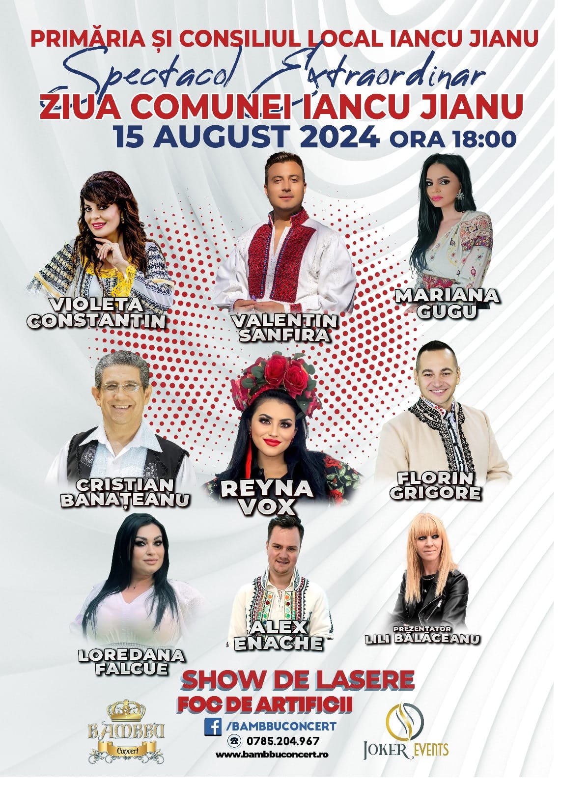 Primăria și Consiliul Local Iancu Jianu a anunțat începerea petrecerii la ora 18:00, iar aici, pe lângă Valentin Sanfira și Violeta Constantin, vor mai cânta Cristian Bănățeanu, Florin Grigore, Reyna Vox, Mariana Gugu, Loredana Falcue și Alex Enache, prezentator fiind Lili Bălăceanu.
