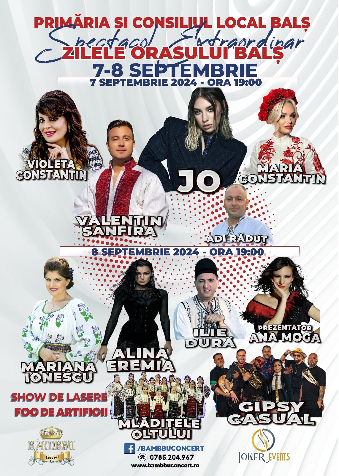Zilele orașului Balș încep în seara zilei de sâmbătă, 7 septembrie, de la ora 19:00, iar în spectacol pe scenă vor urca Violeta Constantin, JO, Maria Constantin, Valentin Sanfira și Adi Răduț.