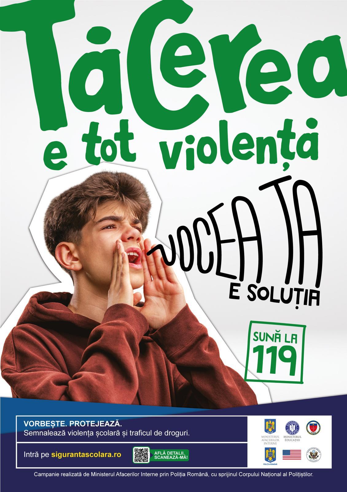 „Activitățile au vizat prevenirea violenței în mediul școlar, atât fizică, cât și psihologică, precum și combaterea consumului de droguri în rândul tinerilor. Polițiștii și partenerii lor din cadrul Jandarmeriei Olt și Centrului Antidrog Olt au organizat întâlniri și discuții interactive cu elevii, în care au fost prezentate informații esențiale despre recunoașterea și raportarea situațiilor de abuz, hărțuire și violență de orice fel. Mesajele principale ale acestei campanii, ‘Tăcerea e tot violență. Vocea ta e soluția’, subliniază importanța comunicării și raportării imediate a oricăror comportamente necorespunzătoare, fie că este vorba de violență fizică, bullying sau presiuni legate de consumul de substanțe interzise. În cadrul activităților, elevii au fost încurajați să își dezvolte curajul de a vorbi deschis despre problemele lor și să solicite sprijinul autorităților sau al profesorilor în situațiile de risc, expunându-se faptul că ‘tăcerea’ poate amplifica aceste probleme, în timp ce ‘vocea lor’ poate fi soluția pentru prevenirea sau stoparea acestora”, a declarat agent principal Lavinia Cioplea, purtător de cuvânt al IPJ Olt.