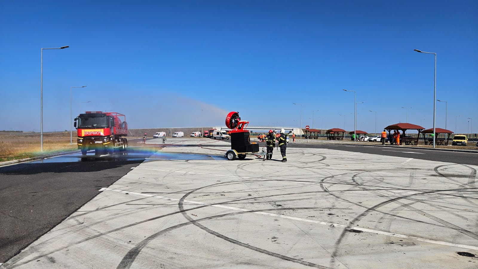 În cadrul unui exercițiu desfășurat vineri, 27 septembrie, puțin după ora prânzului, pe Drumul Expres Craiova – Slatina – Pitești, kilometrul 56, în zona comunei Valea Mare, a fost testat planul roșu de intervenție. Conform scenariului, în urma unui accident rutier produs între o autocisternă încărcată cu clor, un microbuz și un autoturism, rezultă 14 victime, dintre care patru încarcerate, două fiind în stop cardio-respirator, restul răniților prezentând diverse traumatisme.