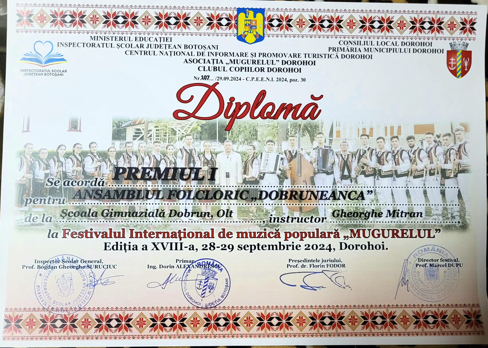 Ansamblul folcloric „Dobruneanca” din Dobrun, câștigător al premiului I la Festivalul „Mugurelul” de la Dorohoi