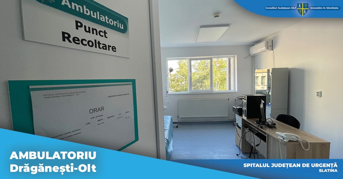 Ambulatoriul din Drăgănești Olt al Spitalului Județean de Urgență Slatina funcționează deja de un an și oferă îngrijire medicală unui număr foarte mare de pacienți. Numai în această perioadă au primit consultații un număr de peste 5.000 de olteni.