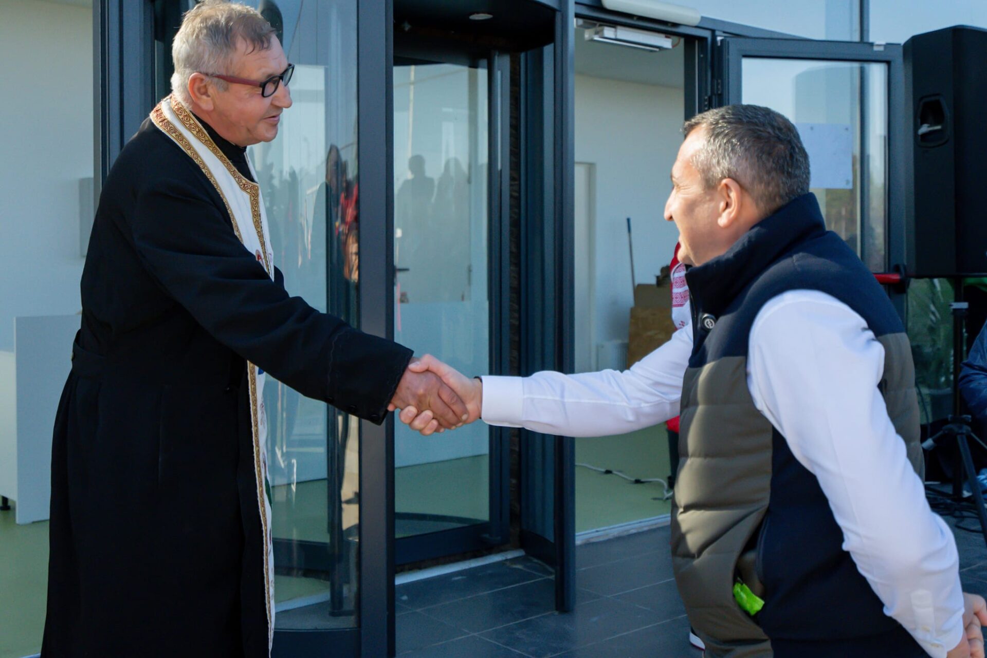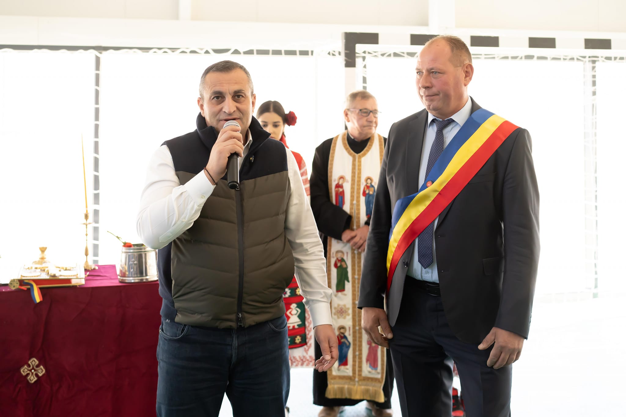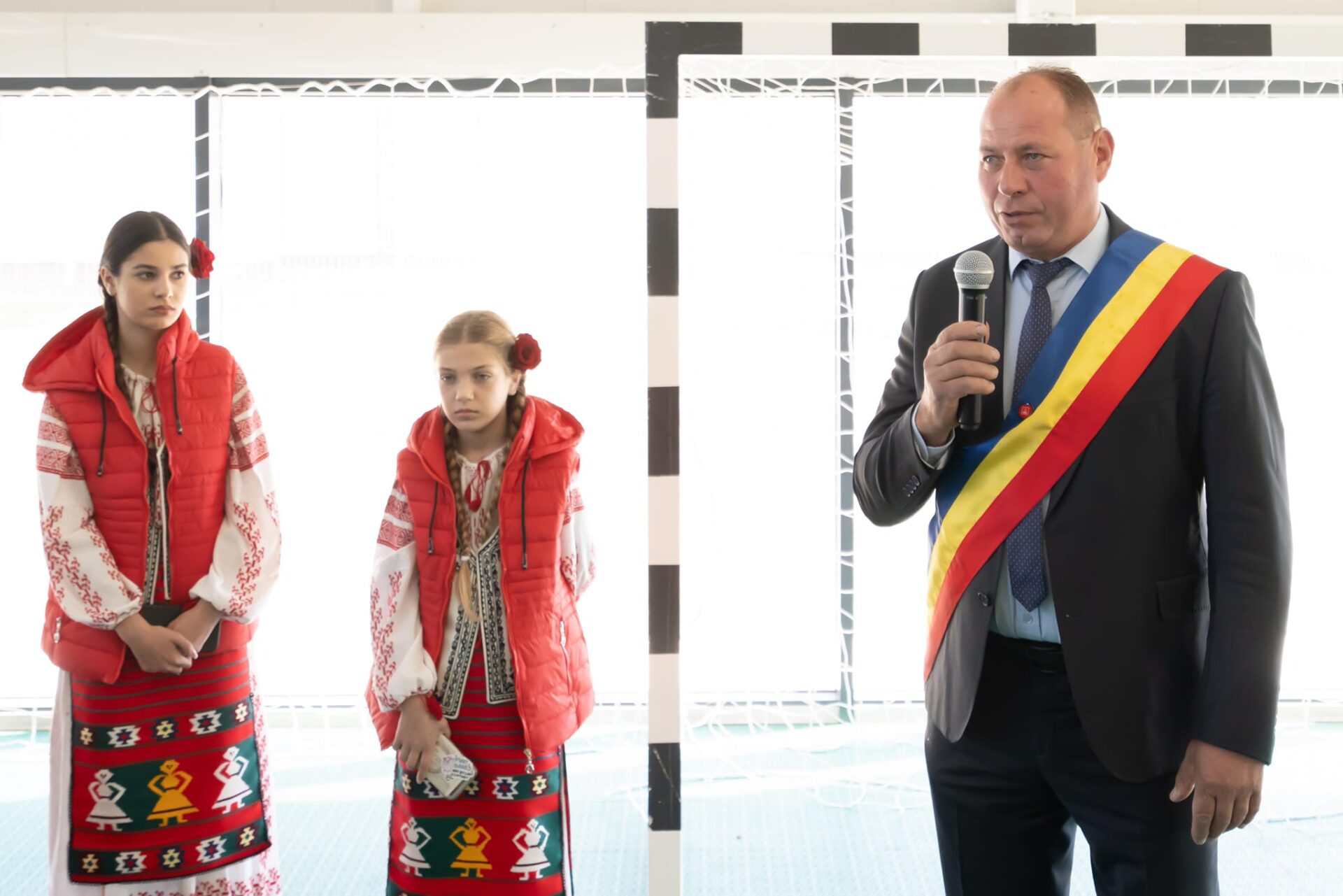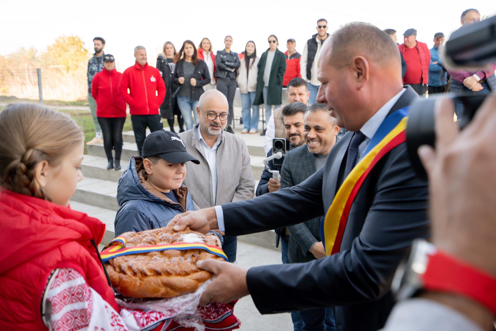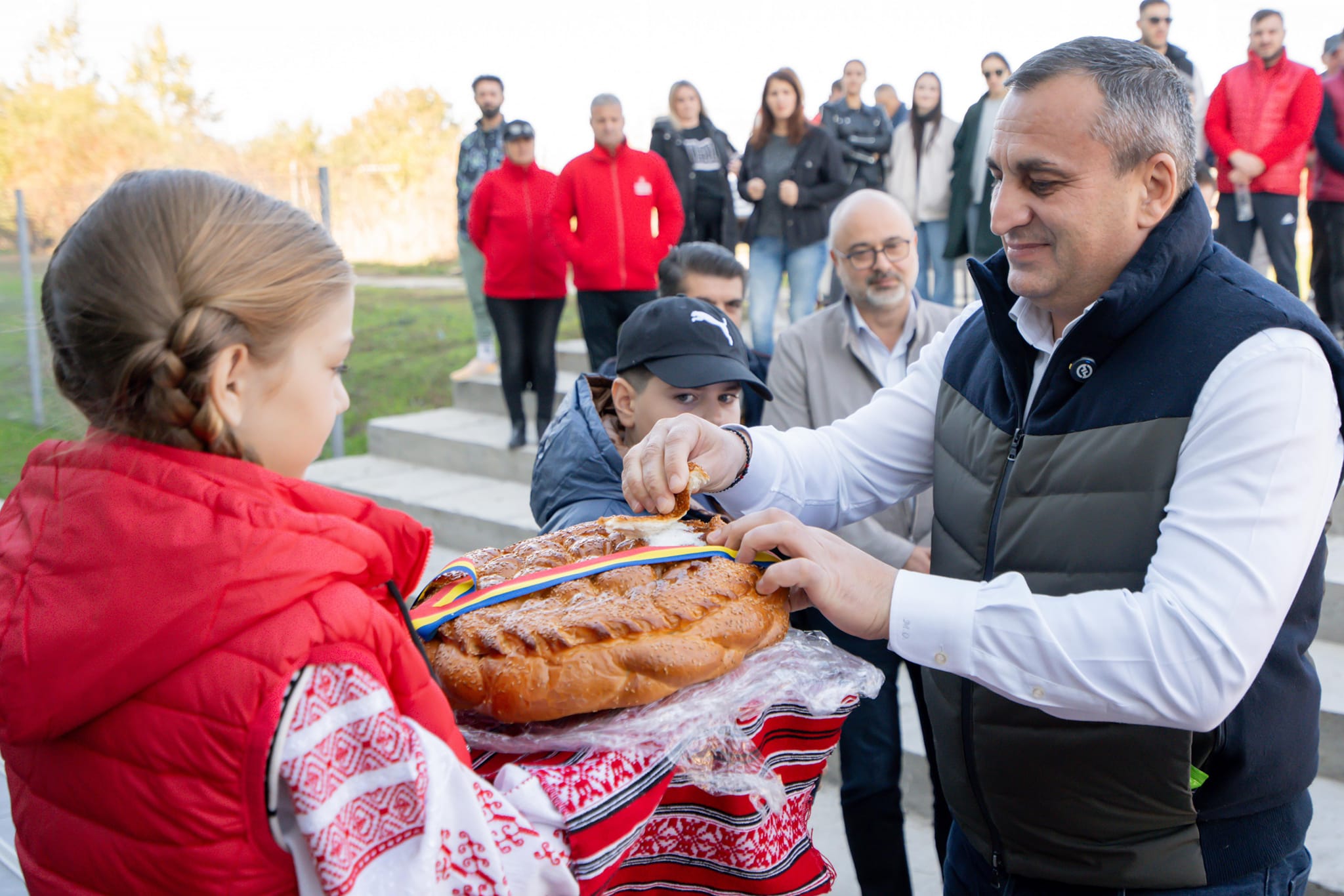 Momentul a fost unul festiv, oaspeții fiind întâmpinați cu pâine și sare de copii frumos îmbărcați în costume populare, pentru ca momentul să fie urmat de tăierea panglicii de către edilul Savu Ungureanu și Marius Oprescu, președintele forului județean.