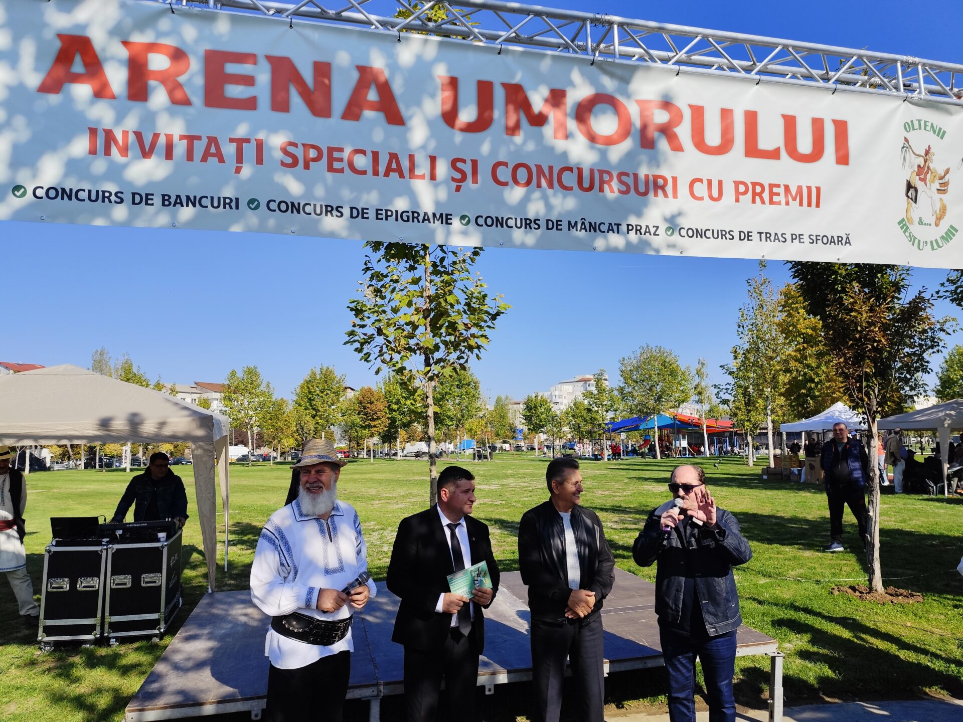 Festivalul umoristic de la Slatina a debutat vineri la Muzeul Județean Olt, unde au fost întâmpinate oficialitățile, apoi, în jurul orei prânzului, a continuat cu Vama oltenească de la Podul Olt, unde au fost prezente zeci de autorități, așteptate cu produse tradiționale oltenești, printre care nelipsitul praz, de tineri dansatori costumaţi în frumoase costume populare de la Ansamblul folcloric „Doina Oltului” Slatina. Printre oficiali s-au aflat prefectul de Olt Ștefan Nicolae, Ionuț Ivan și Virgil Dulureanu, vicepreședinți al Consiliului Județean Olt, senatorul Liviu Voiculescu, deputatul Marius Iancu, dar şi şefi ai mai multor instituţii culturale, precum și mai mulți oameni ai culturii oltene. De asemenea, la deschiderea oficială a Festivalului „Oltenii &… Restu’ Lumii” au fost prezenţi caricaturişti, scriitori și epigramiști.