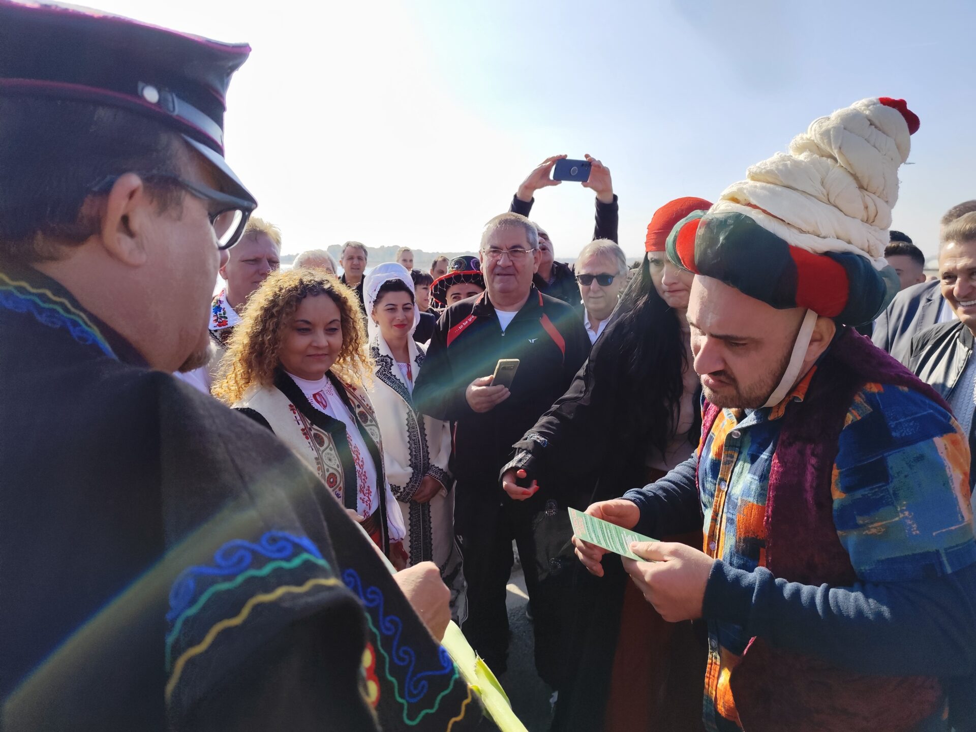 Actorul de comedie Romică Țociu și coregraful Marin Barbu, cunoscut ca și Nea Mărin din emisiunea „Poftiți pe la noi!” pe care o prezintă la postul de televiziune Antena 1, invitați speciali ai evenimentului pe partea de cultură, au primit de la organizatori paşaportul de oltean, paşaport primit şi de şoferii care vineri au trecut Podul Olt, intrând în municipiul Slatina dinspre municipiul Craiova. Pe lângă paşaport, conducătorilor auto le-au mai fost oferite o strachină cu mămăliguţă şi pastramă de oaie, o cană cu zaibăr, dar şi vestitul praz. Din programul de la Vama oltenească nu a lipsit sceneta de umor „Cu cățeaua la vaccinat” a actorilor locali Nicolaie Dincă, Eva Moise, Florin Militaru și Paul Bălășcan. Apoi, dansatorii „Doina Oltului” s-au prins în hore pe piesele îndrăgitei interprete de muzică populară Neta Soare, acompaniată de orchestra ansamblului folcloric. De la Podul Olt invitaţii s-au îndreptat spre Parcul Tineretului, locaţie principală de desfăşurare a festivalului umoristic.