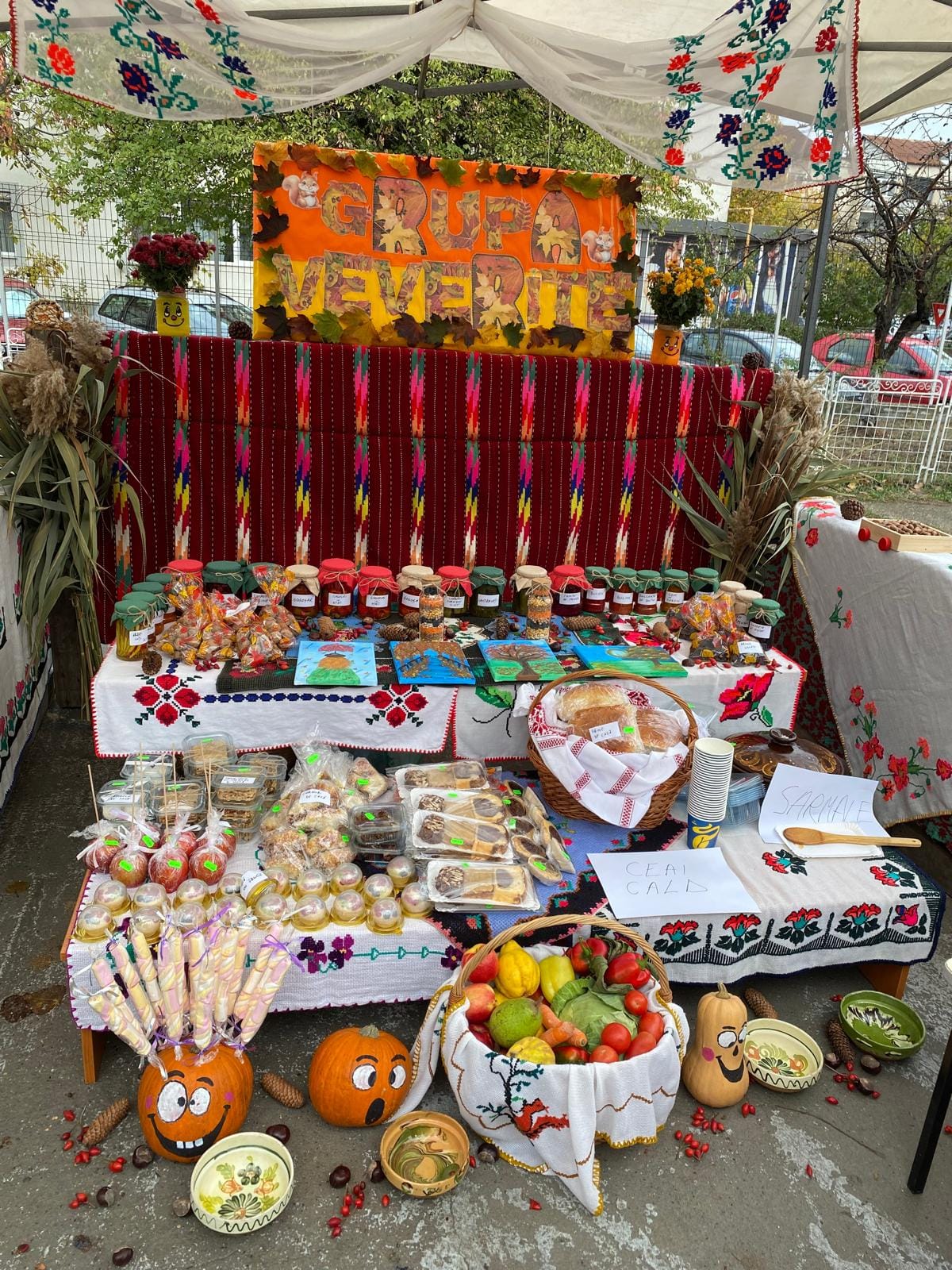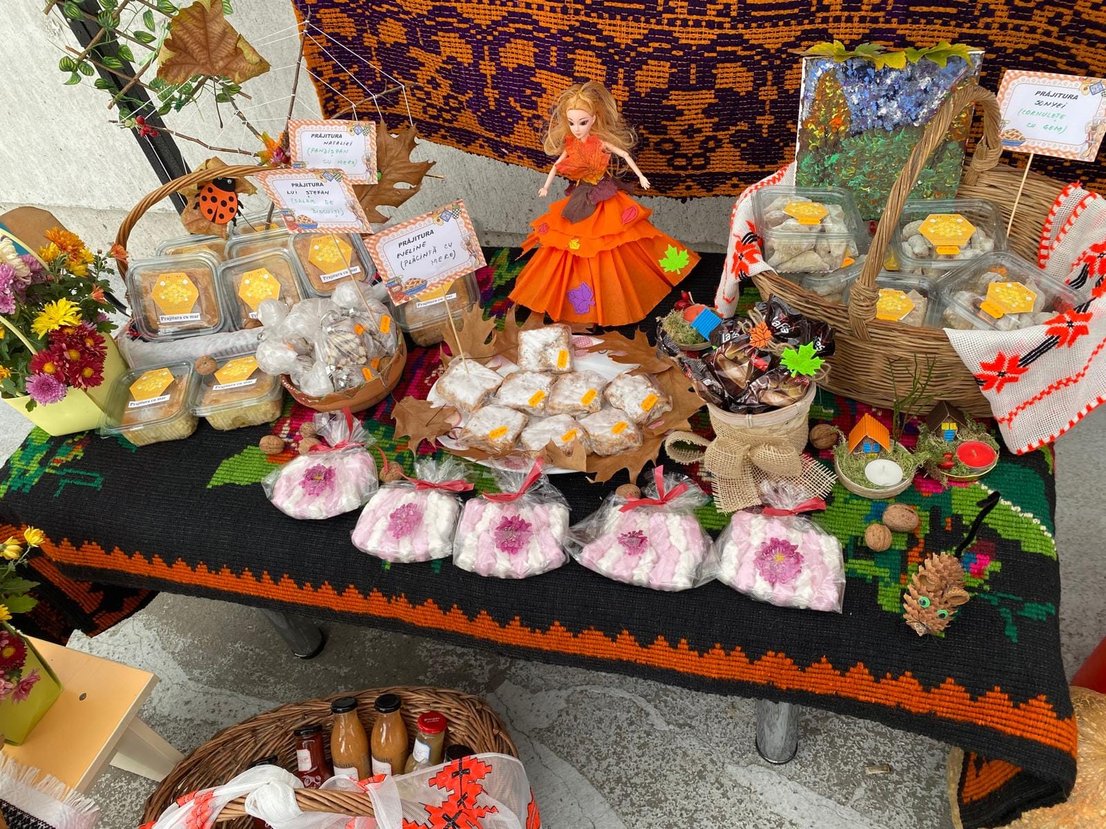Fiecare grupă a avut câte un stand unde au fost expuse fel și fel de obiecte. De la mici decorațiuni de toamnă, până la borcane cu dulcețuri, compoturi, murături, dar și la produse tradiționale românești, preparate din produse proaspete de sezon. Au fost sarmale, plăcinte cu dovleac și mere, însă din peisaj nu au lipsit nici alte delicii de toamnă. Bineînțeles, toate pregătite de cei mici cu ajutorul părinților.