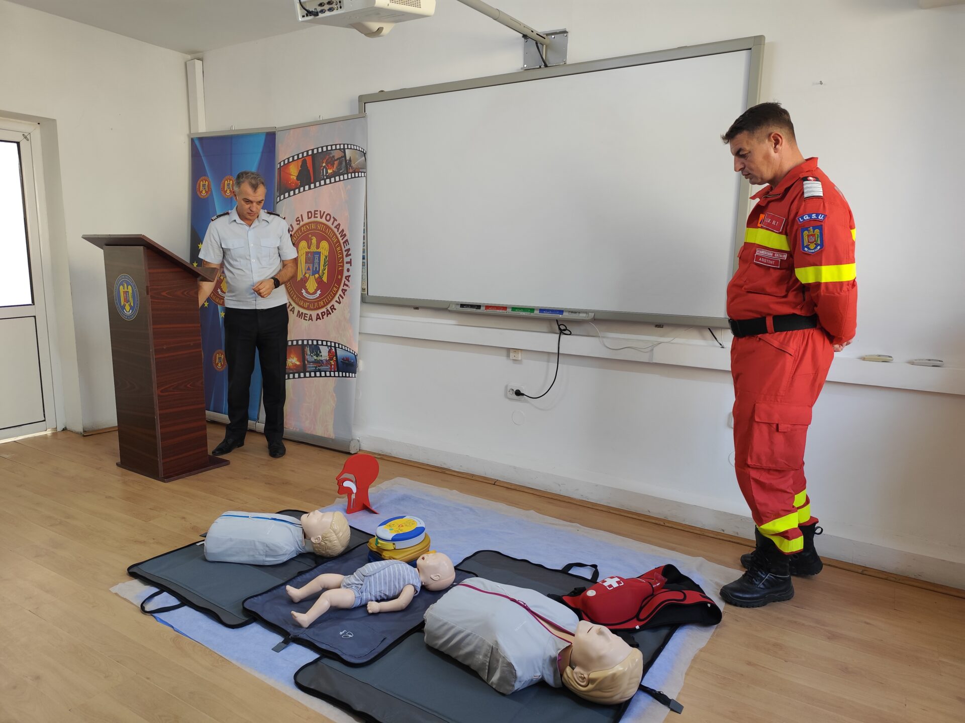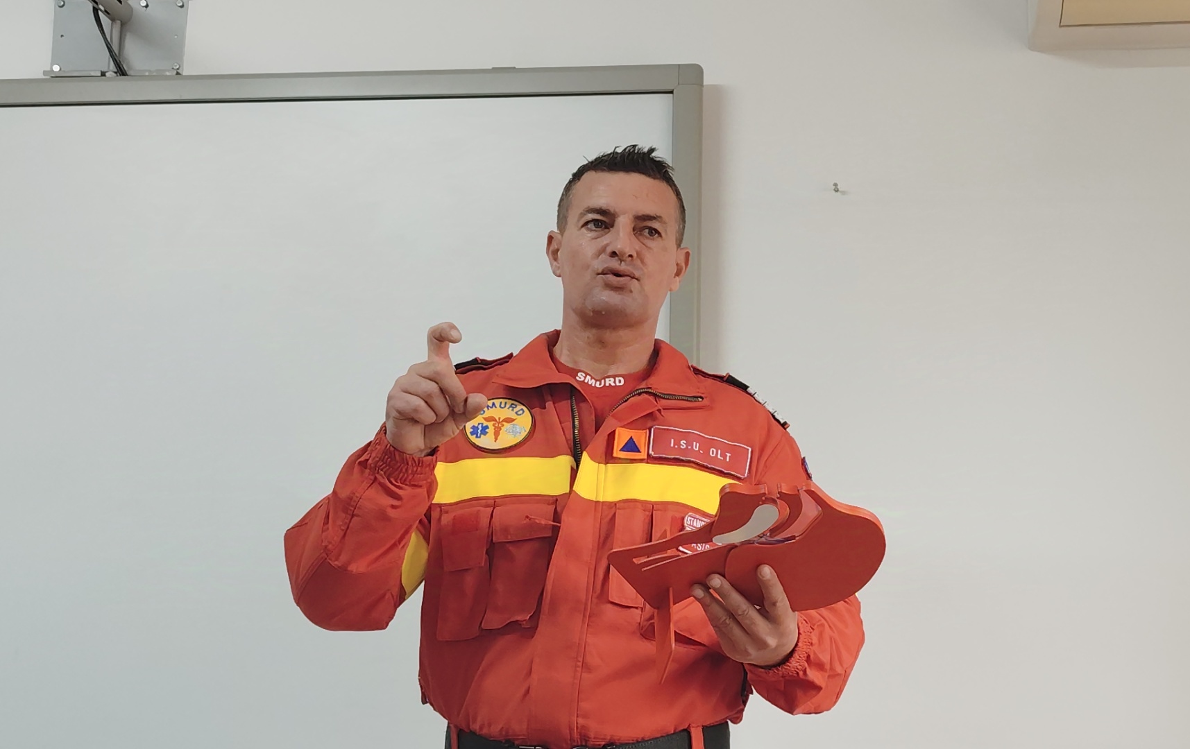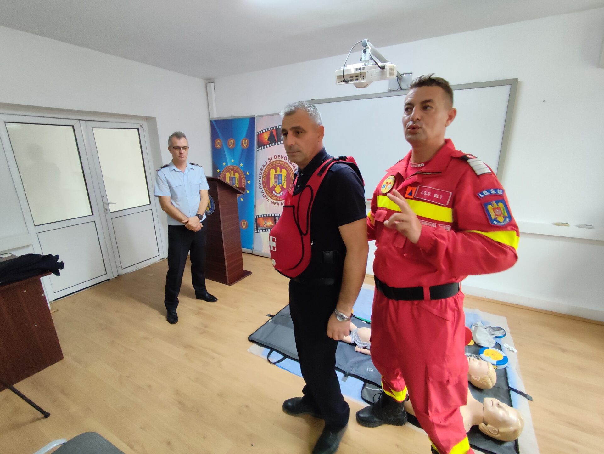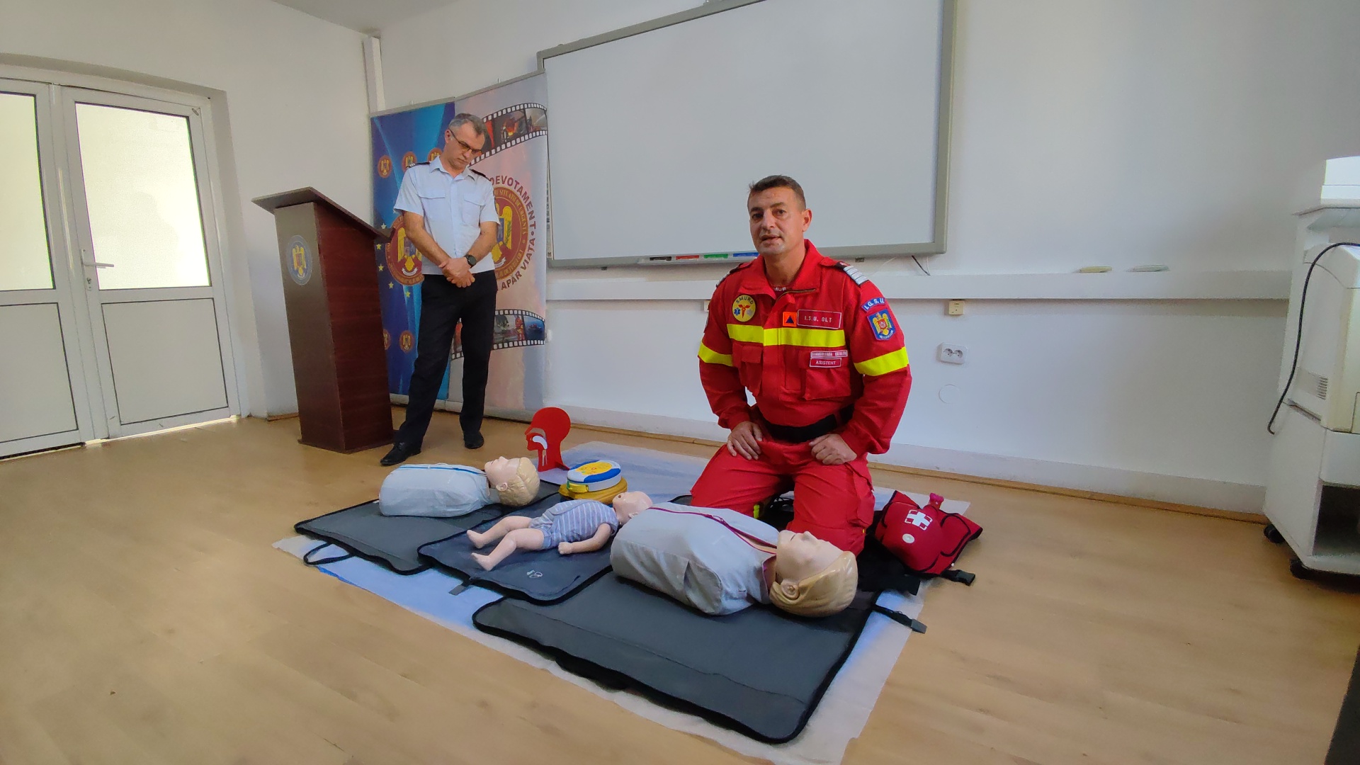 Amfitrioni ai conferinței au fost colonel Adrian Tănase, inspector șef ISU Olt, căpitan Alin Băsășteanu, purtător de cuvânt ISU Olt și paramedicul Cătălin Stănciuleasa.