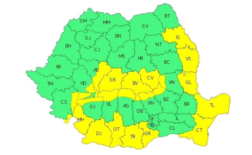 Meteorologii mai spun că intensificări ale vântului vor fi local și în restul țării, cu viteze de 40…45 km/h.