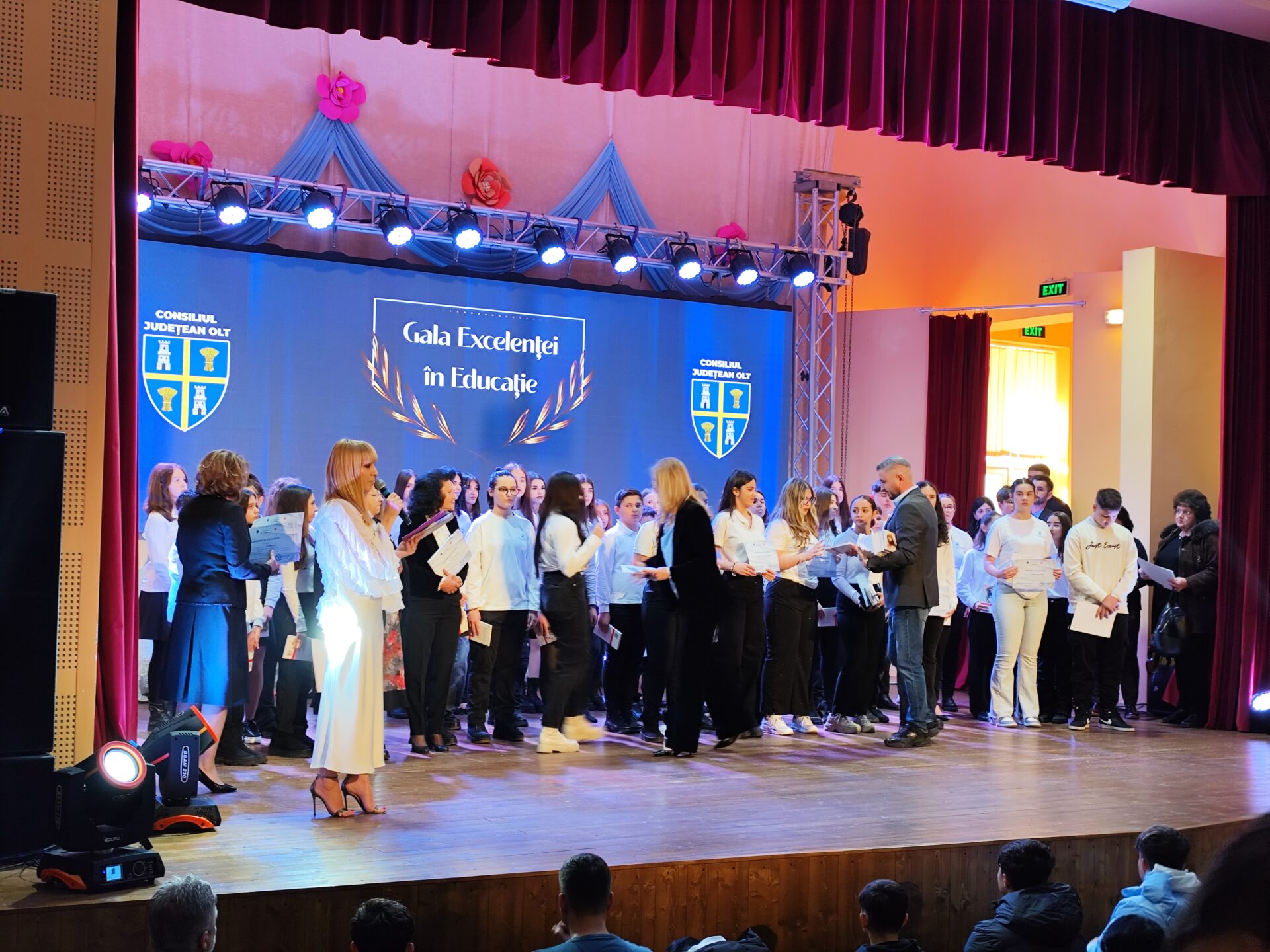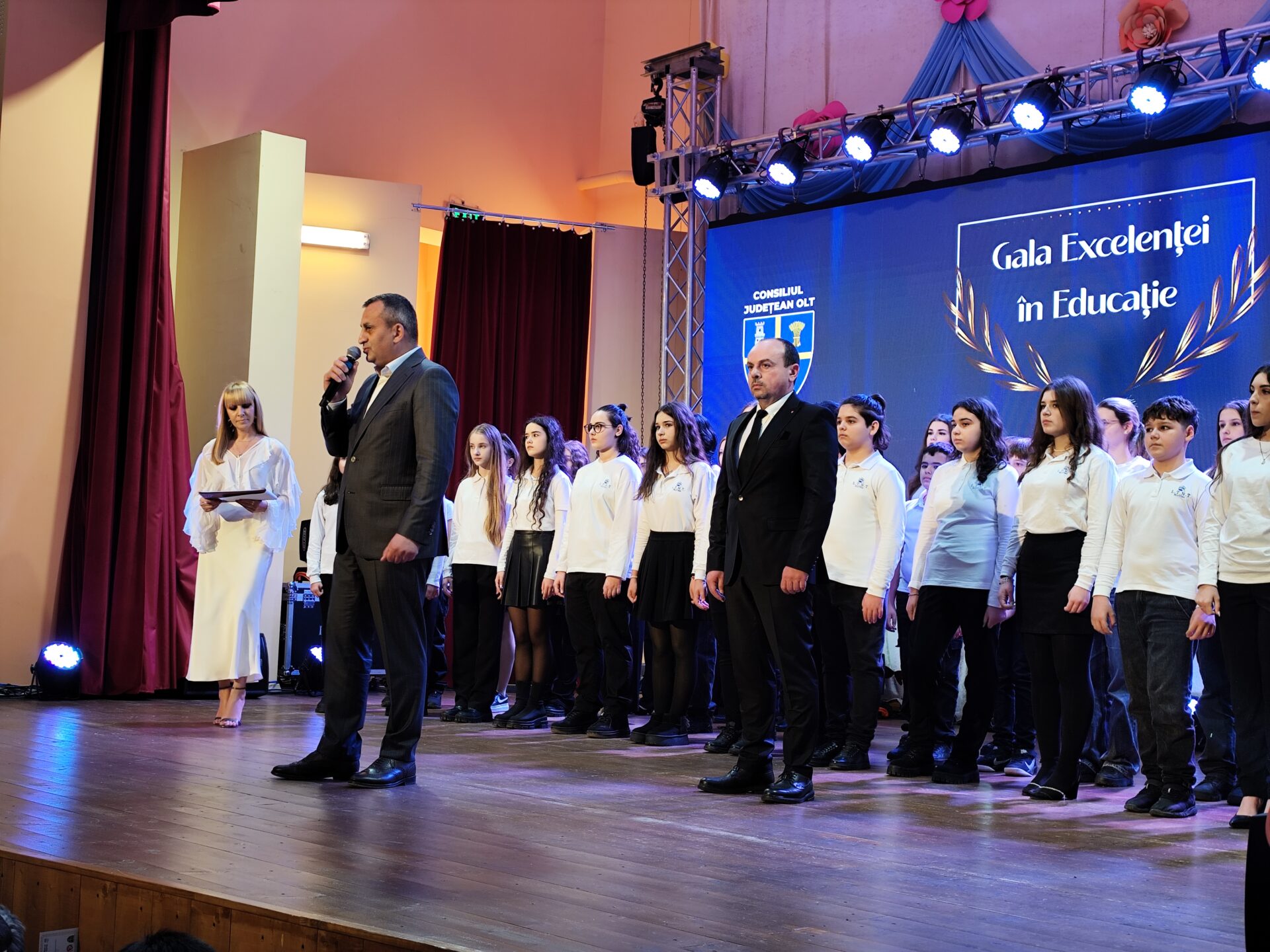 „Este vorba despre un proiect de suflet al Consiliului Județean Olt, Gala Excelenței în Educație. Astăzi (miercuri n.r.) avem 732 de copii premiați și 235 de profesori. Iată, aproape 1.000 de elevi și profesori care vor fi premiați! Dacă după ani, unul, zece sau o sută de copii, în evoluția lor se vor fi bucurat că au urcat astăzi treptele acestei scene pe care au fost premiați, cu siguranță ne vor produce un puternic sentiment de mândrie locală. Bineînțeles, atunci când avem competițiile pe anul acesta închise, vom face și premiera sportivilor. Nu știu dacă va fi la finalul acestui an sau începutul anului viitor, dar cu siguranță acest lucru va continua așa cum am făcut-o de fiecare dată. Noi încercăm să ne punem această amprentă, sunt ani de zile în care am făcut acest lucru. Cu siguranță cei care vor aprecia acest lucru vor fi cei premiați și nu noi”, a declarat Marius Oprescu.