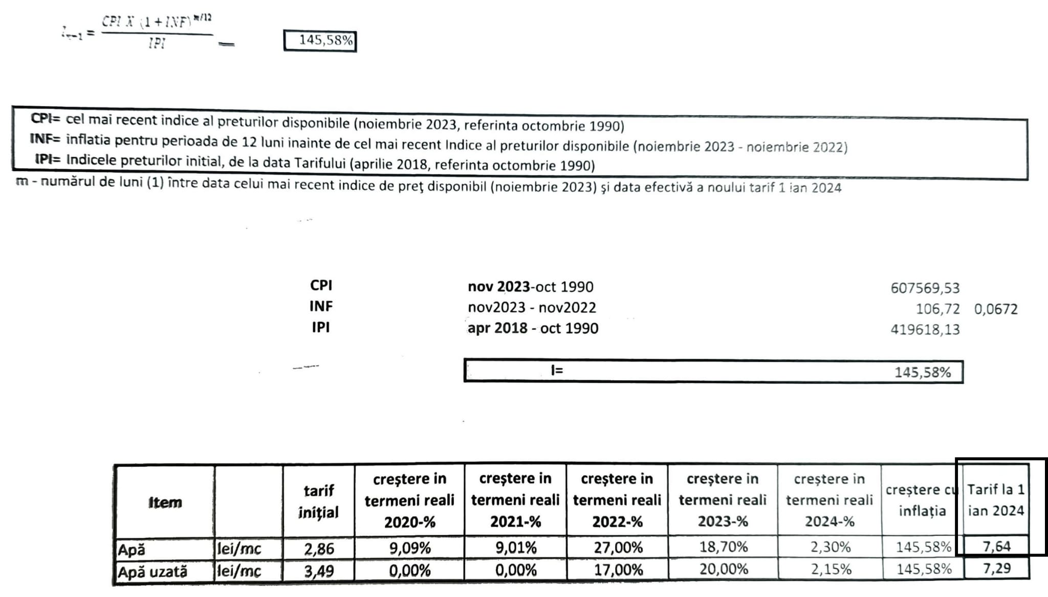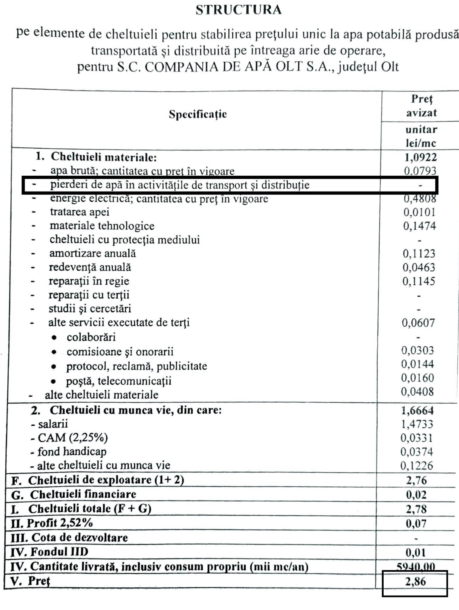 Prețul apei este format doar din altceva. (…) Primul document, dacă vă uitați la cheltuieli materiale, a doua liniuță, arată că pierderea de apă în activități de transport și distribuție în prețul total este zero. La final se constituie prețul apei care înseamnă 2,86. Ăsta este prețul apei, avizat de către Autoritatea Națională de Reglementare pentru Servicii Comunitare de Utilități Publice în 16 martie 2018. Deci vedeți prețul apei aprobat de către ANRSC este de 2,86, așa cum se vede și din documentul anterior. Mai departe, de aici se vede care este formula de calcul al prețului apei plecând de la prețul aprobat de ANRSC în 16 martie 2018, de 2,86 și dacă vă uitați pe prima coloană la apă, se duce cu un tarif an de an conform asumării din proiectul pe fonduri europene pe care l-am avut și în care îl avem în continuare, suntem în dezvoltarea lui, acelei investiții de 250 milioane de euro, prin care întreaga infrastructură de apă și apă uzată din Slatina și din restul localităților componente Companiei de Apă a fost fundamentată. Și acel preț trebuie să ajungă la 1 ianuarie 2024 la 7,64. Nu este nicio intervenție între timp pe acest preț. Deci prețul apei aprobat în acest moment la Slatina nu include pierderile de rețea. Întrebarea mea este următoarea: «Domnule primar, știați că prețul apei din care dumneavoastră vreți să scădeți pierderea, care nu are inclusă pierderea, este acesta și nu are pierderea inclusă? Sau nu știați? Dacă știați și ați spus lucrul ăsta înseamnă că sunteți un mare mincinos, dacă nu știați sunteți un mare incompetent! Nici nu știu ce e mai grav. Că Slatina a încăput pe mâinile unui incompetent sau pe mâinile unui mincinos”, a declarat Marius Oprescu, prezentând presei și câteva documente în acest sens.