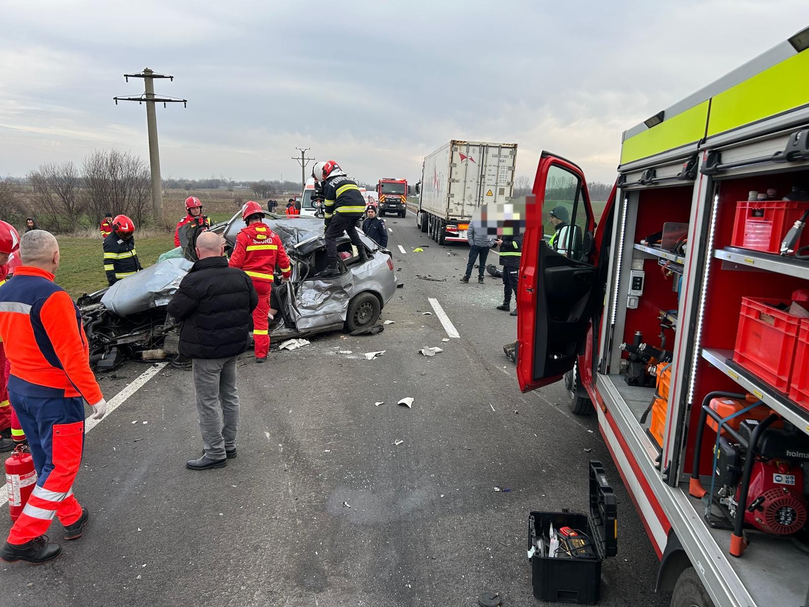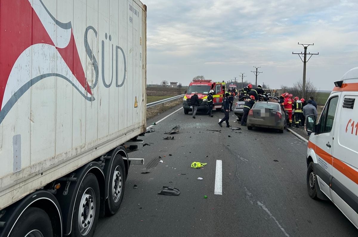 „Au fost implicate patru autovehicule, două autoturisme și două TIR uri, unul din cele două având avarii minore”, spun polițiștii doljeni.