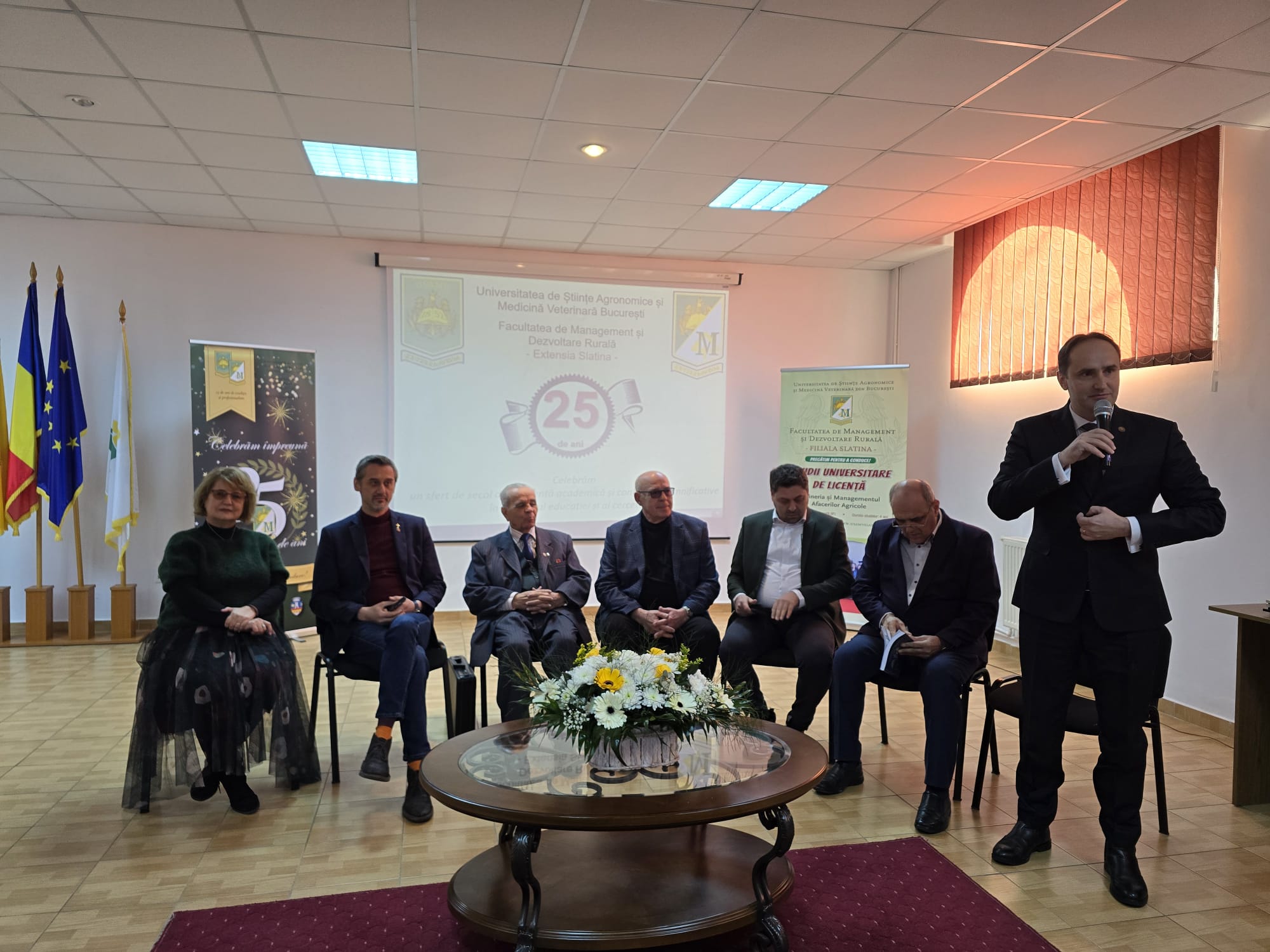 Reprezentanții Filialei Slatina a Facultății de Management și Dezvoltare Rurală din cadrul Universității de Științe Agronomice și Medicină Veterinară București au sărbătorit joi, 23 ianuarie 2025, împlinirea a 25 de ani de existență în municipiul de pe malul stâng a râului Olt, reședință a județului.