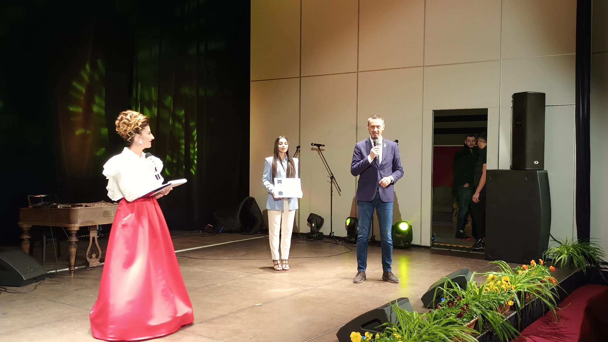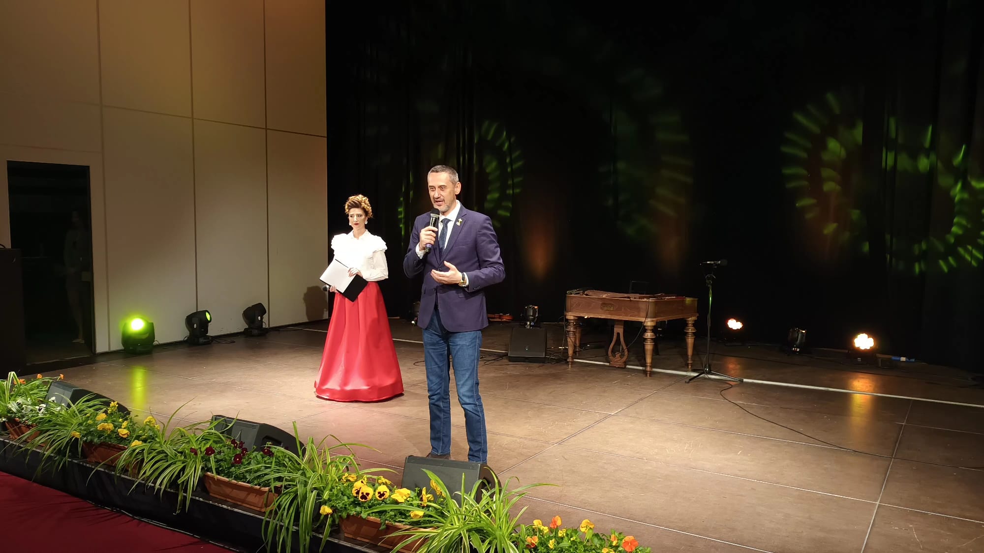 Întregul eveniment a fost prezentat de îndrăgita Mădălina Dozescu, o cunoscută coregrafă din municipiul Slatina, pe scenă urcând, pentru a premia cuplurile care în 2024 au sărbătorit 50 de căsătorie, Mario De Mezzo, primarul urbei.