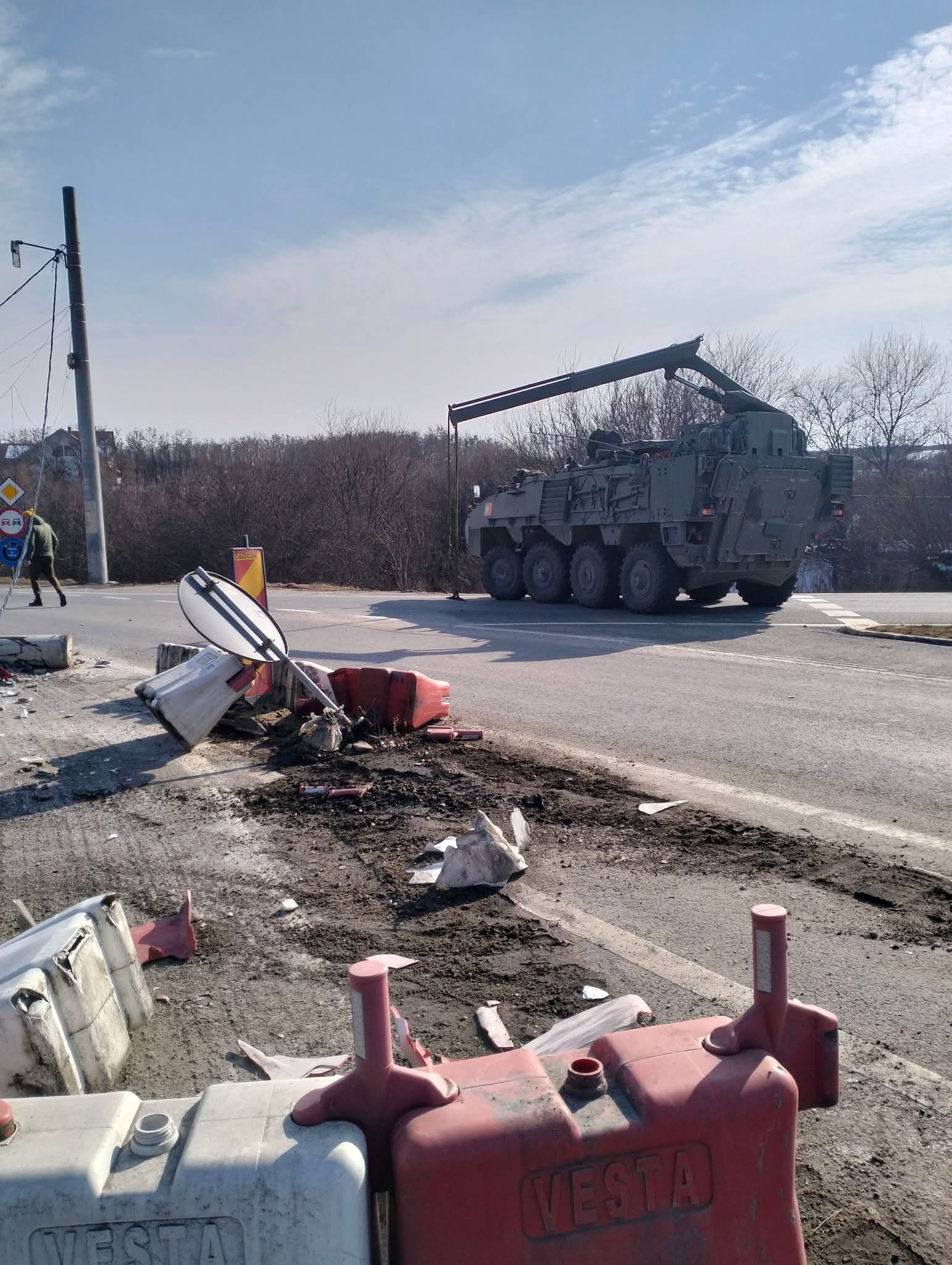 Articol inițial: În cursul după-amiezii zilei de sâmbătă, 22 februarie 2025, un eveniment rutier a avut loc pe Drumul Național 64, în sensul giratoriu din comuna Găneasa. Un transportator blindat care făcea parte dintr-un comvoi militar ce se deplasa din direcția Drăgășani către Caracal a pus la pământ un stâlp de curent electric, traficul în zonă desfășurându-se cu dificultate, având în vedere că circulația este blocată.