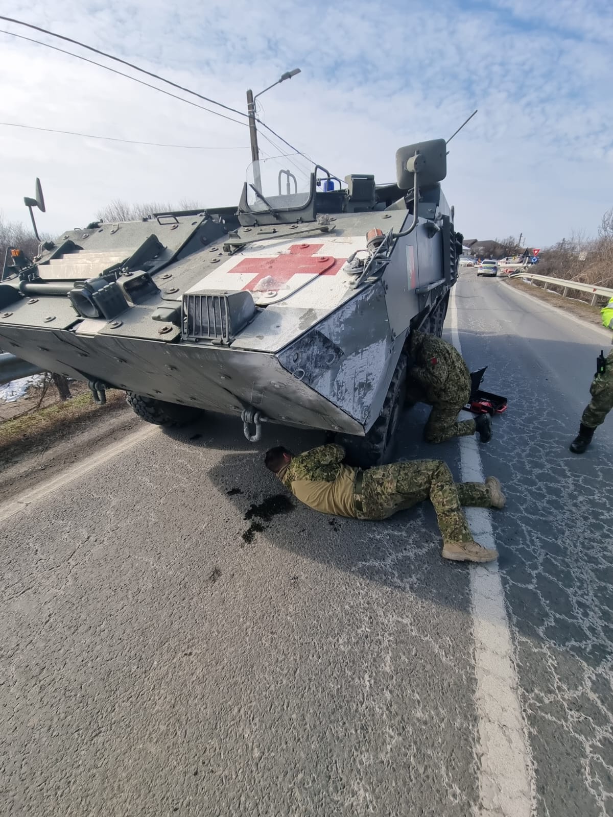 În zonă sunt așteptate inclusiv echipaje de la Distribuție Oltenia, pentru a fi remediată situația în zonă, stâlpul electric care a fost dărâmat de TAB-ul la volanul căruia s-ar fi aflat un militar portughez fiind poziționat pe sensul opus față de direcția de mers a vehiculului.