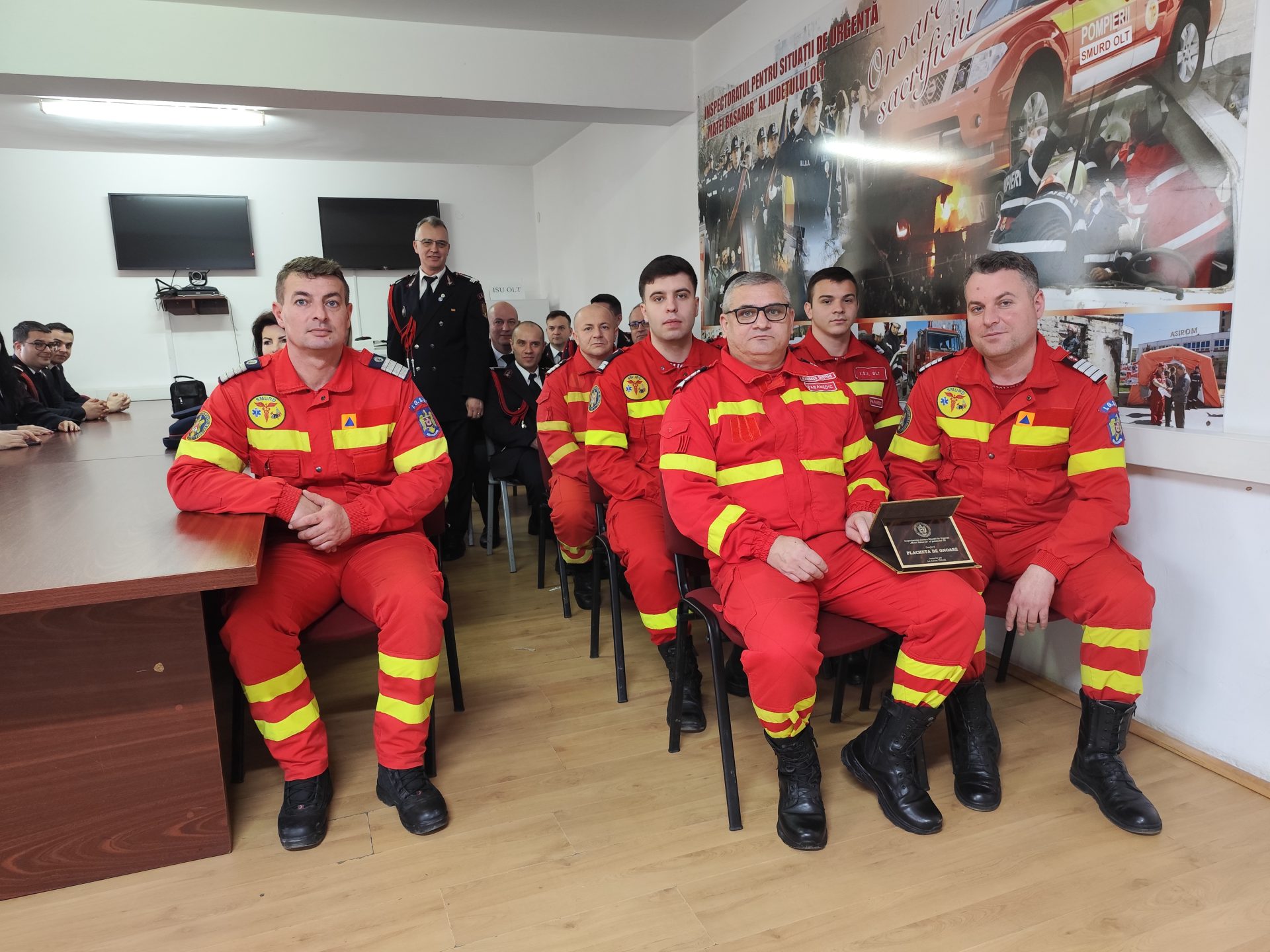 La aniversarea a 92 de ani de la înființarea Protecției Civile în România și a 16 ani de la înființarea SMURD Olt, sala de festivități a Inspectoratului pentru Situații de Urgență a devenit neîncăpătoare pentru zecile de cadre ale instituției Ministerului Afacerilor Interne din teritoriu prezente. Cinci pompieri olteni au fost avansați în grad la zi de sărbătoare, un paramedic SMURD Olt a primit o plachetă de onoare, iar în cei 16 ani de activitate paramedicii olteni au avut parte de aproximativ 66.000 de intervenții.