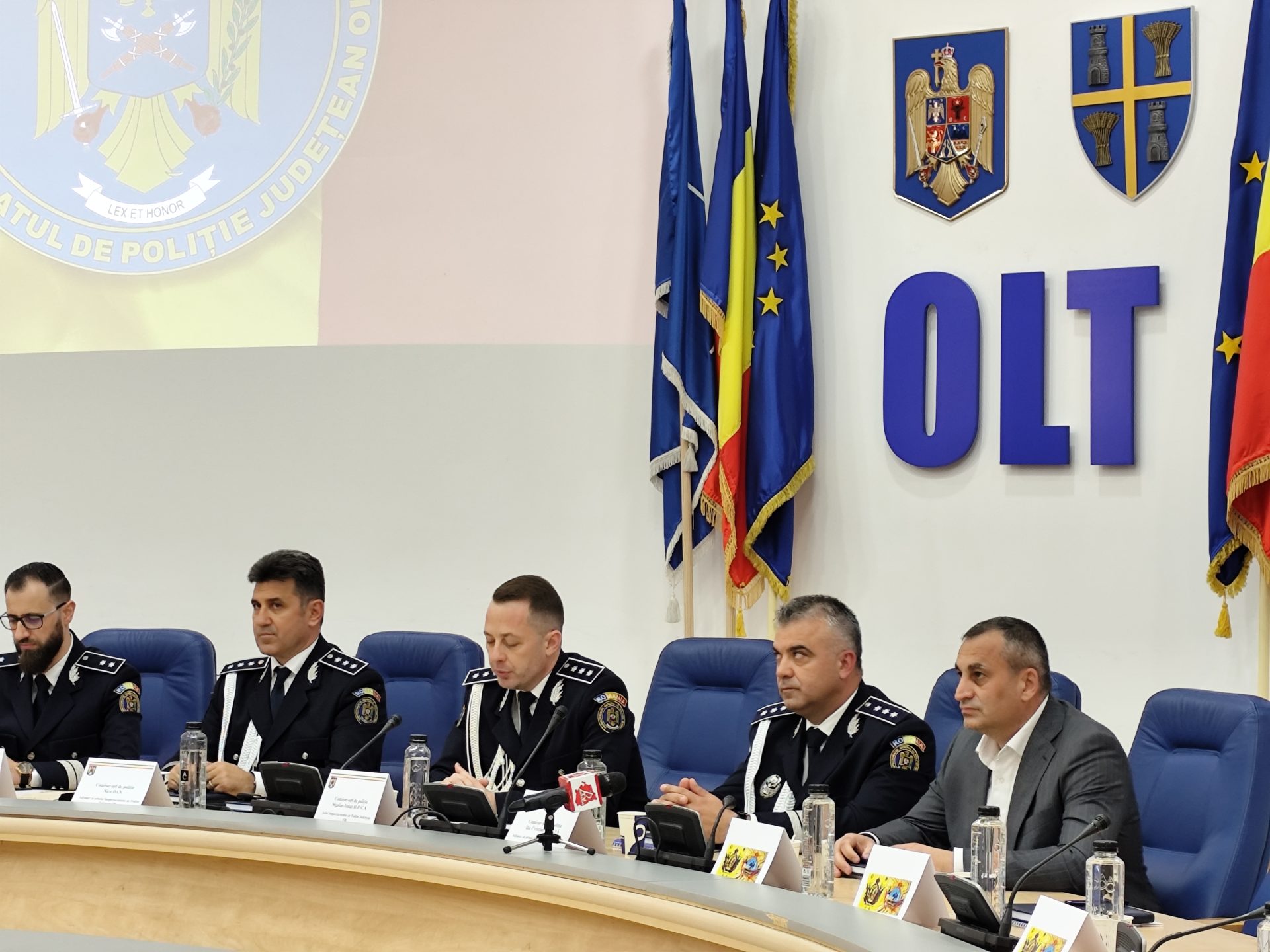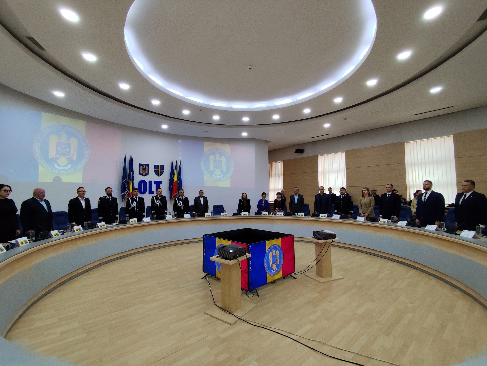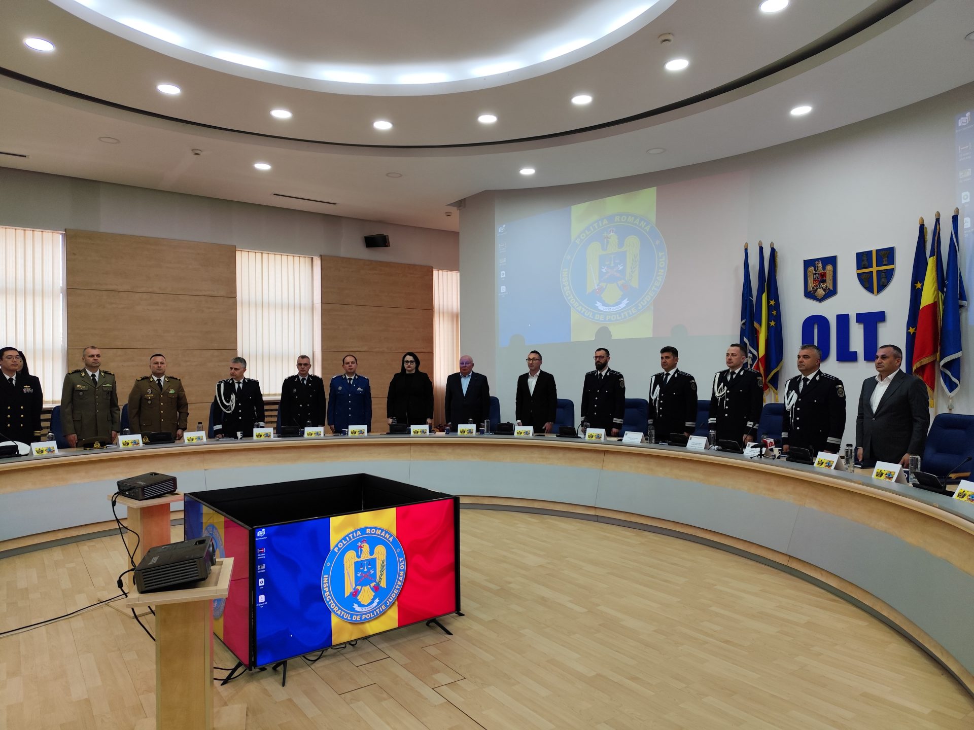 Alături de comisarul șef Ionuț Ilinca, inspectorul șef al Poliției Olt, și cei doi adjuncți ai instituției Ministerului Afacerilor Interne în teritoriu, comisarii șefi Cristian Bădiță și Nicu Dan, au fost prezenți zeci de reprezentanți ai autorităților locale și județene cu care IPJ colaborează, precum și cadre ale inspectoratului, evenimentul dedicat Zilei Poliției debutând cu intonarea imnului național al României și un moment de reculegere în memoria colegilor polițisti căzuți la datorie.