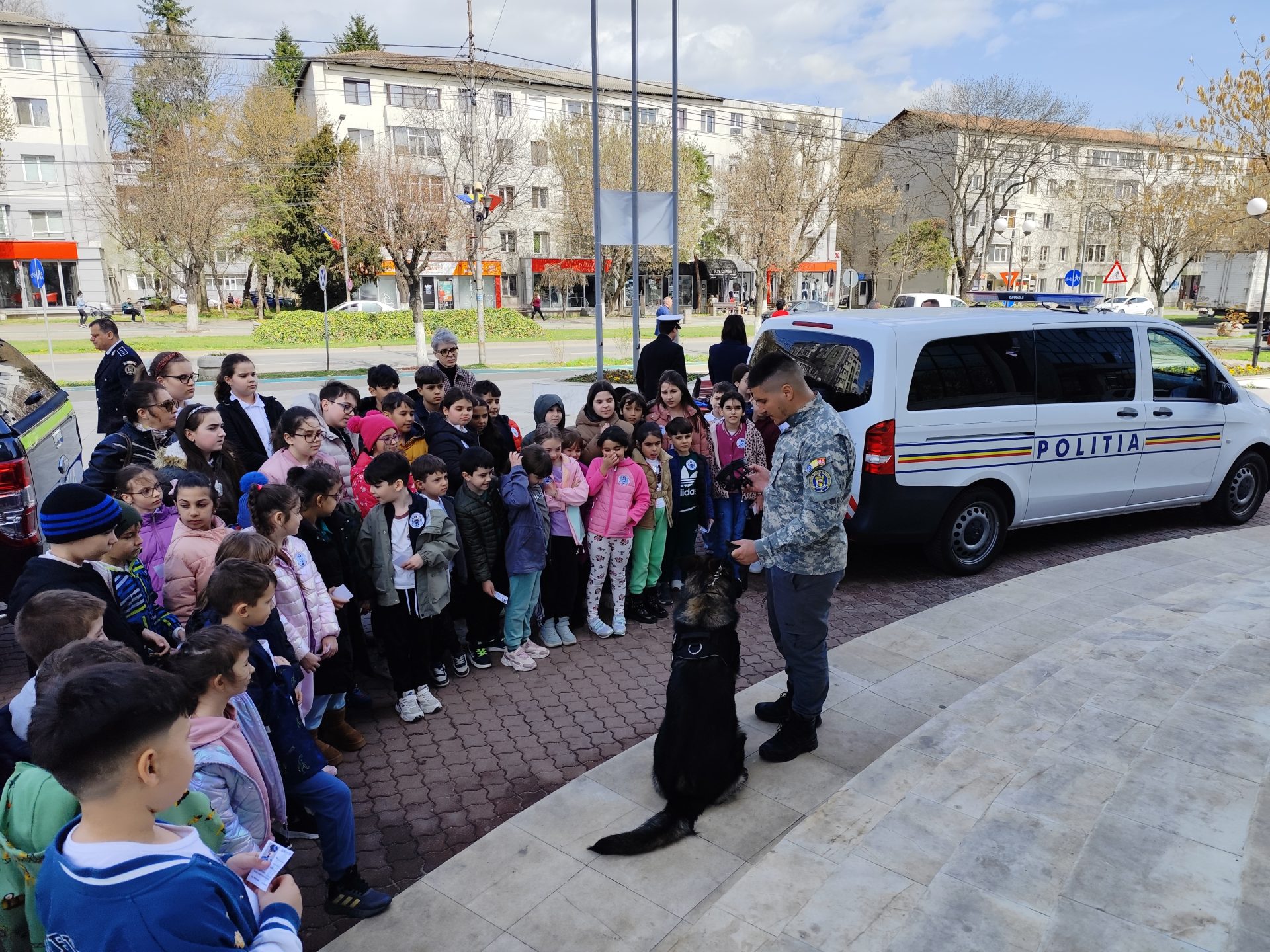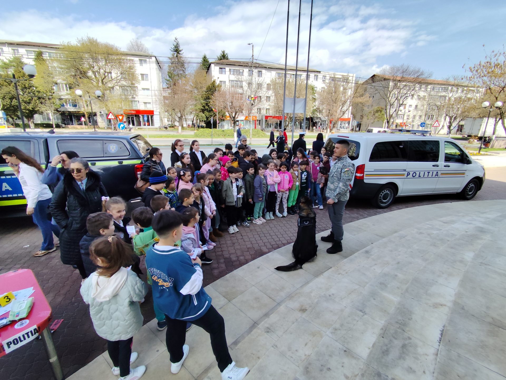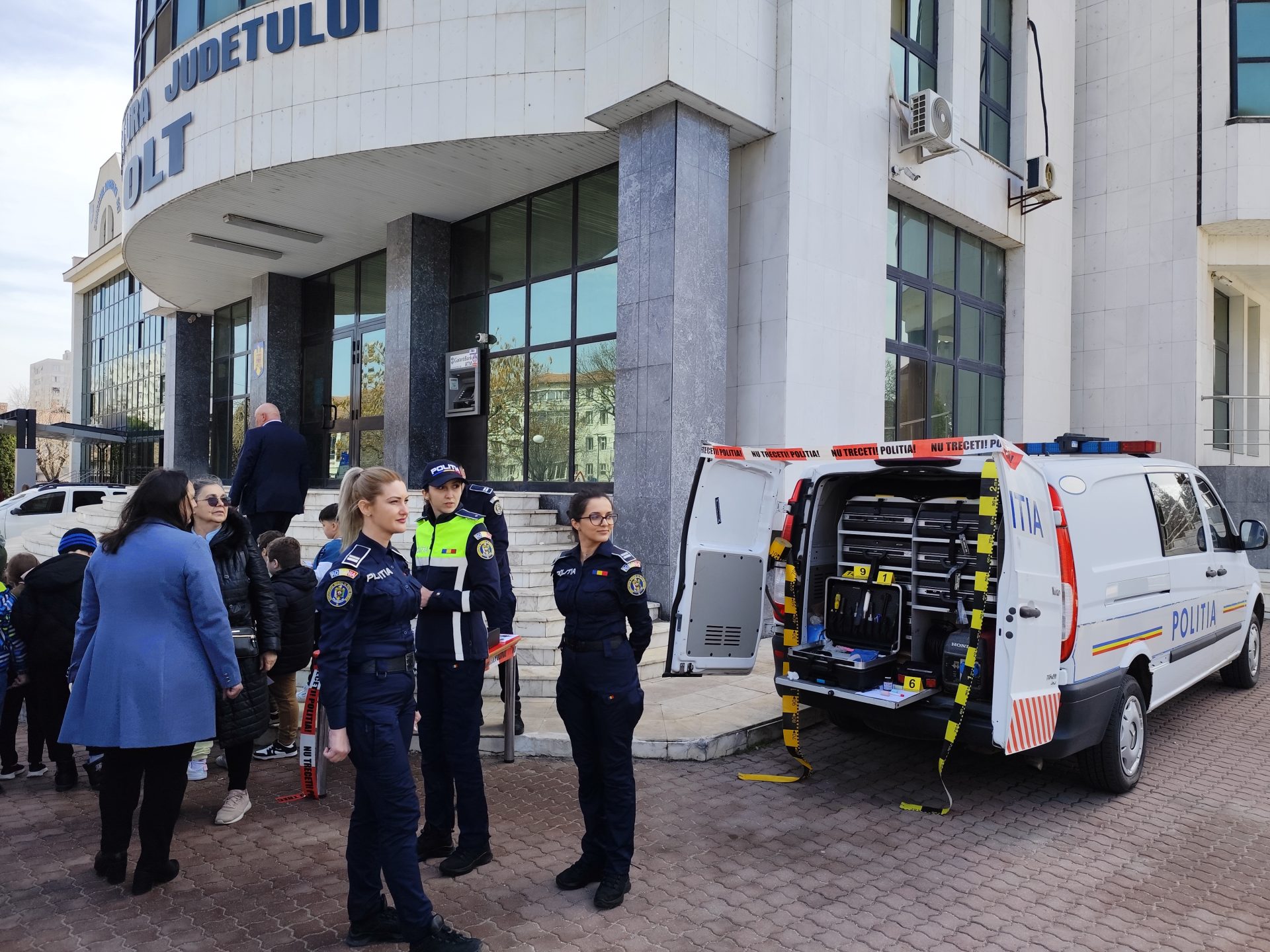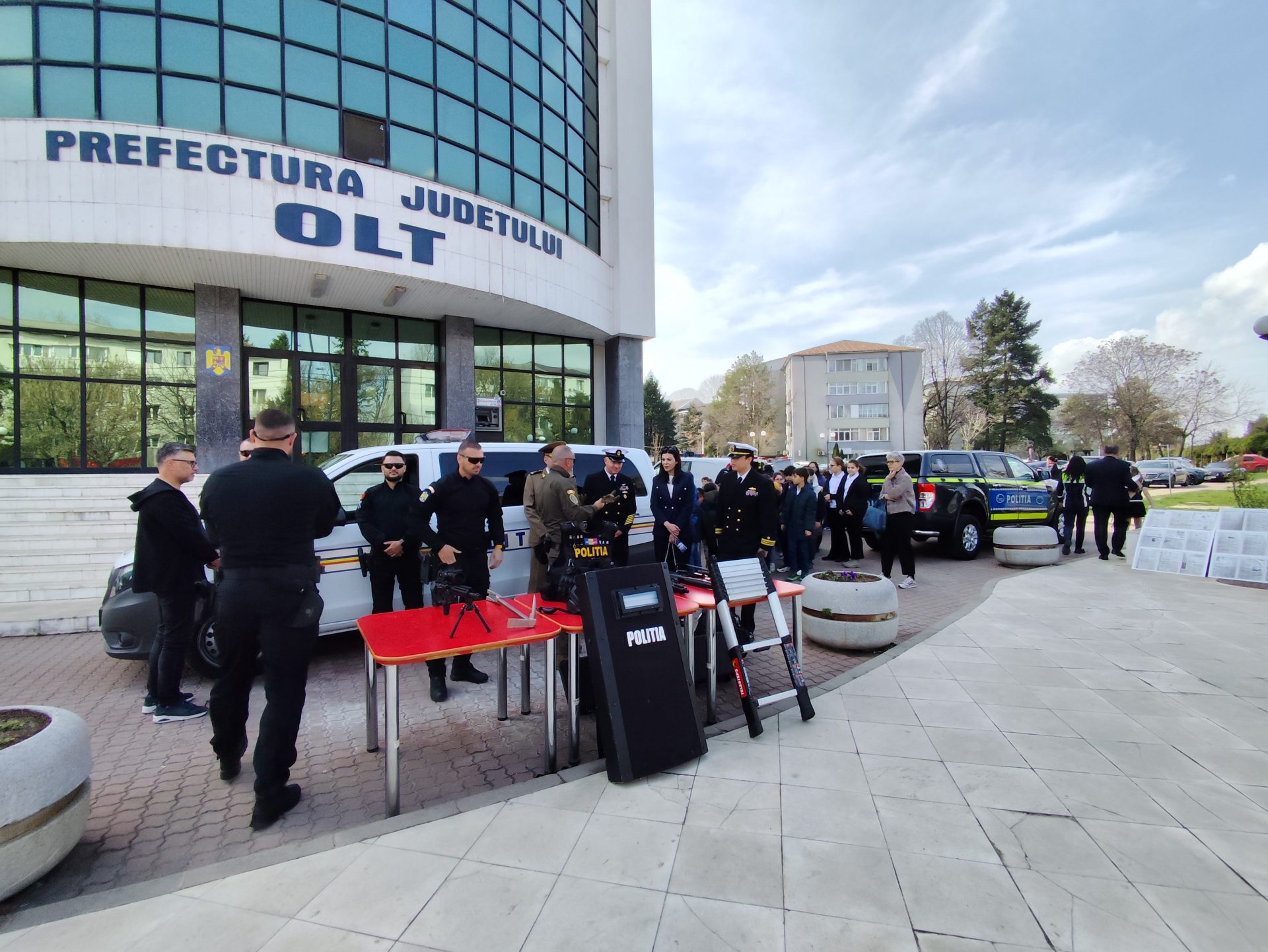 Și pentru slătinenii care au trecut prin fața Prefecturii Olt, polițiștii au avut pregătit un moment special. O parte dintre dotările Poliției oltene, printre care laboratorul criminalistic, echipajele Biroului Poliției Animalelor și Serviciului pentru Acțiuni Speciale, autospeciale ale Serviciului Rutier și echipajul cu câine de urmă, dar și standuri cu materiale informative, au fost expuse aici și, ca de obicei, cei mai mici dintre vizitatori, precum și autoritățile, s-au oprit la autospeciala și armamentul SAS Olt, pe care luptătorii le folosesc la intervenții.