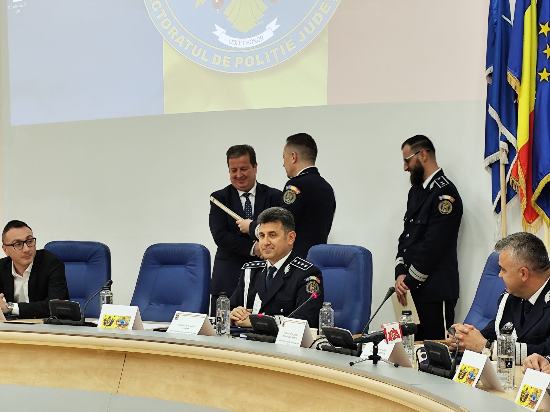 După citirea mai multor mesaje de mulțumire ale mai marilor Inspectoratului General al Poliției Române, prefectul județului, împreună cu președintele CJ, viceprimarul Slatinei și șefi sau reprezentanți ai Jandarmeriei Olt, Inspectoratului pentru Situații de Urgență Olt, Parchetului de pe lângă Curtea de Apel Craiova și Tribunalului Olt au ținut să mulțumească la rândul lor polițiștilor olteni pentru buna colaborare interinstituțională în interesul comunității.