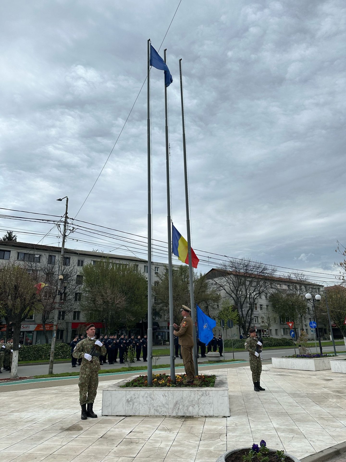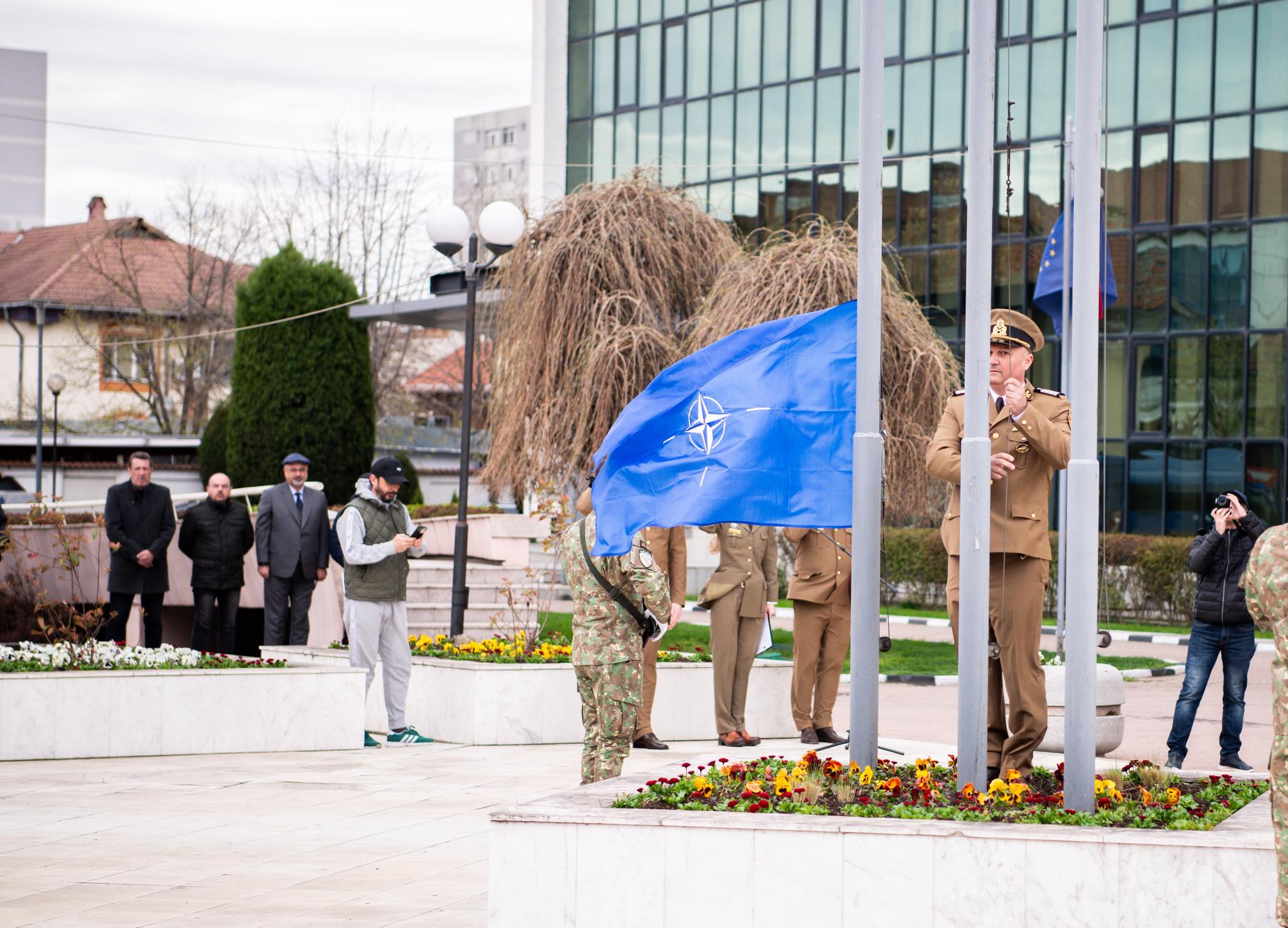 „Ziua NATO reprezintă un eveniment de referinţă pentru societatea românească, din perspectiva statutului României de aliat NATO şi a semnificaţiilor asociate acestui moment. Este o sărbătoare publică dedicată democraţiei şi spiritului european şi euro-atlantic. La 21 ani de la arborarea drapelului național în fața sediului NATO, Alianța Nord-Atlantică rămâne principalul garant al apărării și securității României și un liant permanent cu o comunitate de 32 de state care împărtășesc aceleași valori și un angajament ferm față de libertate și democrație. Cu această ocazie, astăzi (duminică n.r.), în Garnizoana Slatina, a fost organizat un ceremonial militar în cadrul căruia au fost înălțate pe catargul de pe platoul din fața Prefecturii Olt și la sediul Centrului Militar Județean Olt, drapelele Romaniei și NATO, în acordurile Imnului Național al Romaniei și ale Imnului Alianței Nord-Atlantice”, a transmis maior Marius Bordencea de la CMJ Olt.