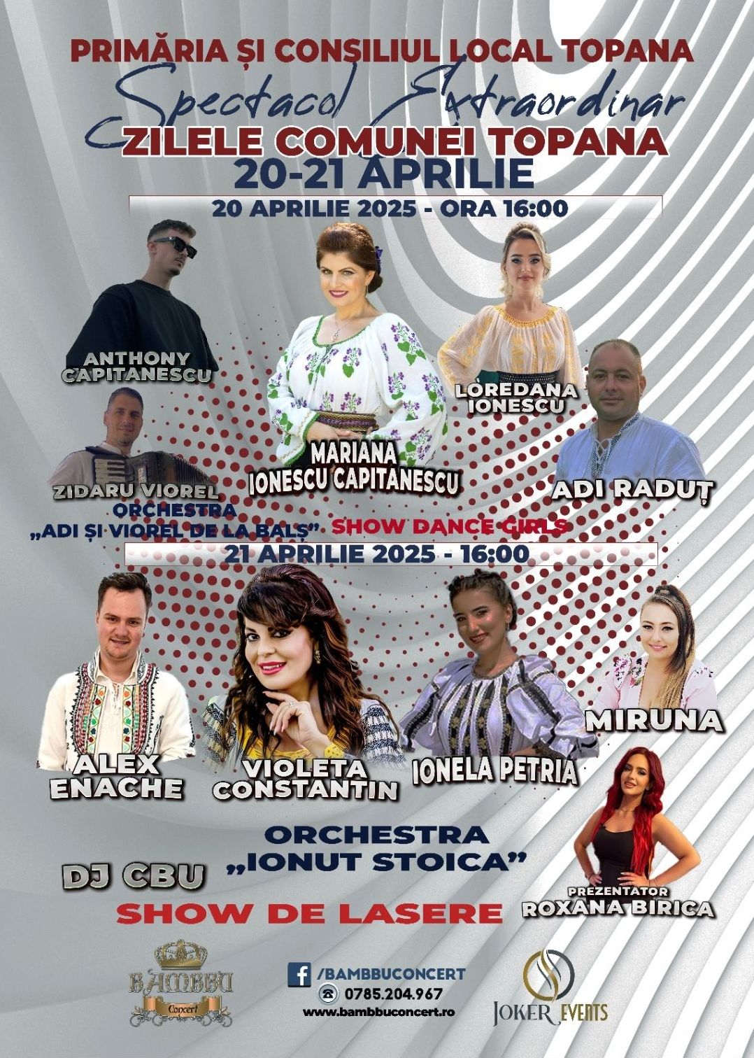 Prezentator al spectacolelor din cele două zile de Paște este Roxana Birică.