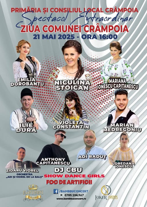 Ziua Sfinților Împărați Constantin și Elena, celebrată anual în data de 21 mai, este prilej de mare sărbătoare pentru locuitorii din mai multe localități ale județului Olt. Iar printre localitățile unde vor fi organizate petreceri câmpenești în această zi se numără orașul Potcoava și comunele Crâmpoia și Giuvărăști. Sunt pregătite mai multe surprize, însă una dintre cele mai mari sunt concertele în care vor evolua artiști cunoscuți ai muzicii populare și ușoare românești. Nu lipsesc nici cei care cântă muzică de petrecere. Printre aceștia se numără Niculina Stoican, Emilia Dorobanțu (ambele în fotografia principală n.r.), Maria Constantin, Violeta Constantin, Andreea Bălan, Georgiana Lobonț, Marian Medregoniu și Adi de la Vâlcea.
