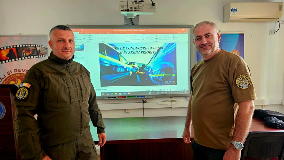 Subcomisarul de poliție Răsvan Nicolaescu și agentul șef principal Daniel Leulescu din cadrul Serviciului Pregătire Profesională al Inspectoratului de Poliție Județean Olt sunt cei doi polițiști atestați de Poliția Română care, în dimineața zilei de miercuri, au desfășurat un Curs de conducere defensivă și în regim de prioritate, „elevi” fiind aproximativ 20 de cadre ale Inspectoratului pentru Situații de Urgență Olt.