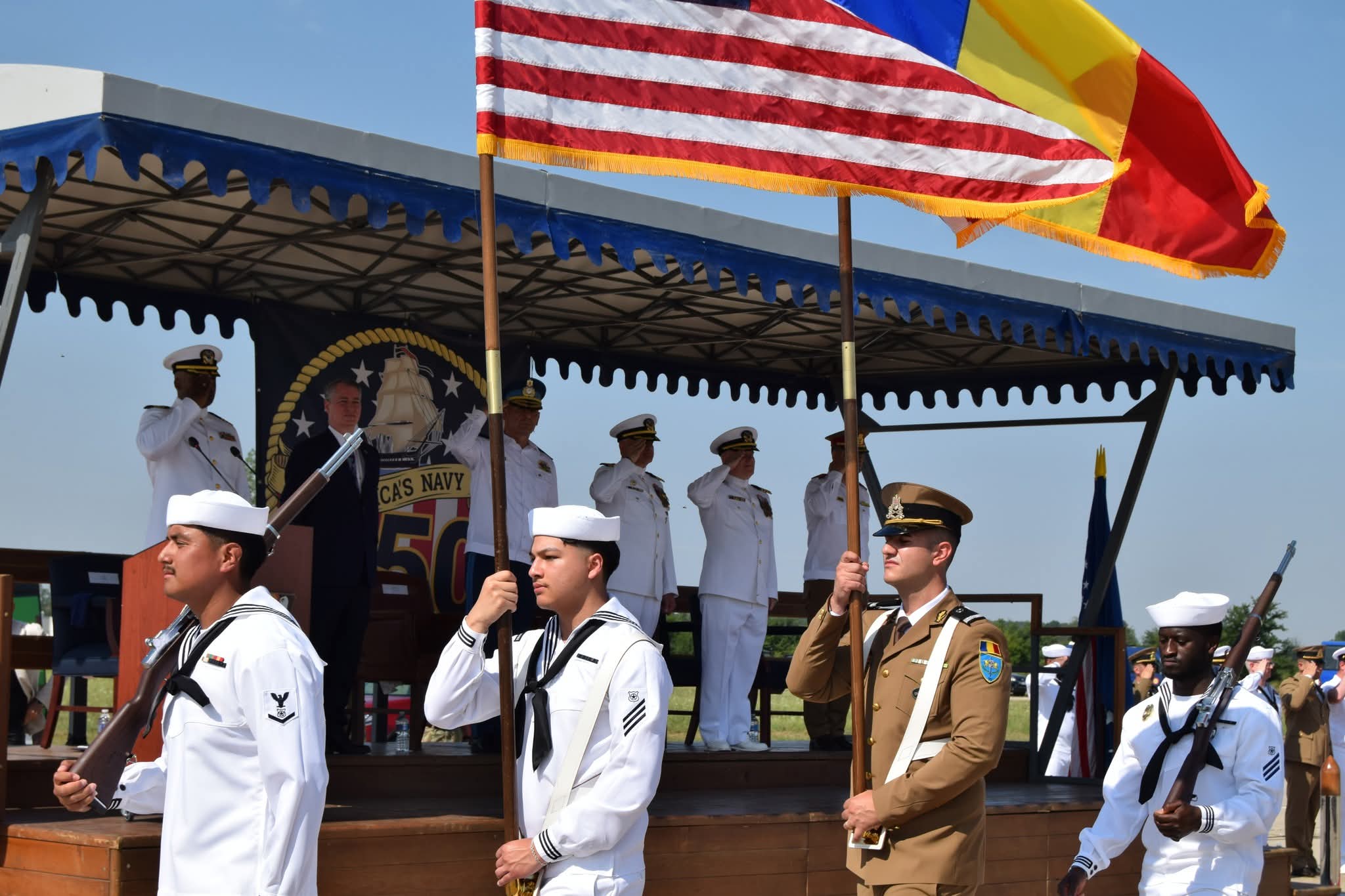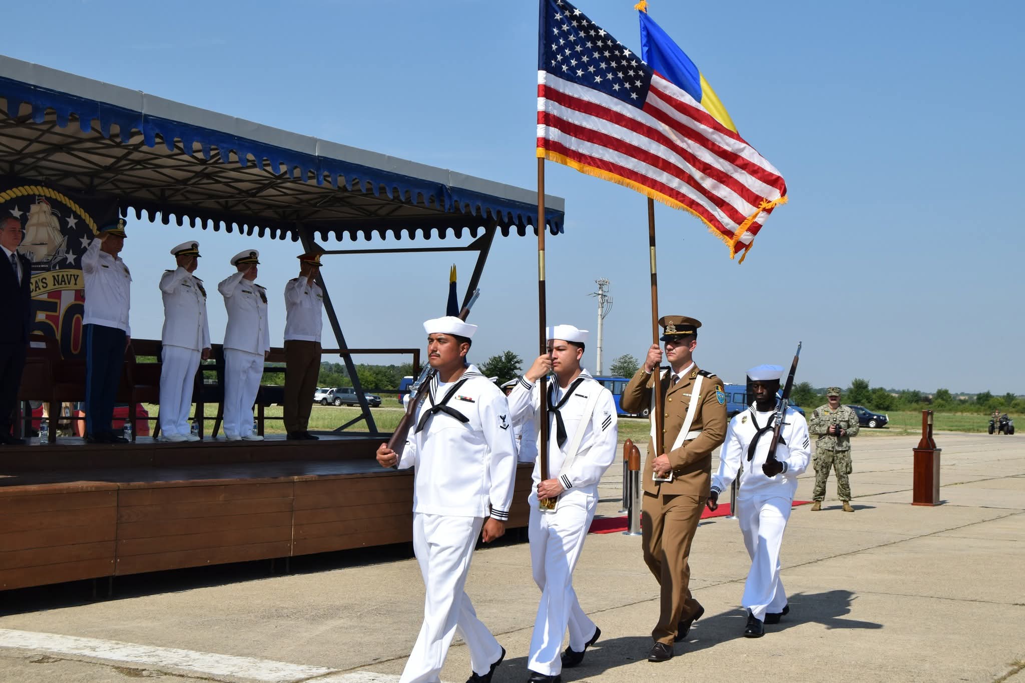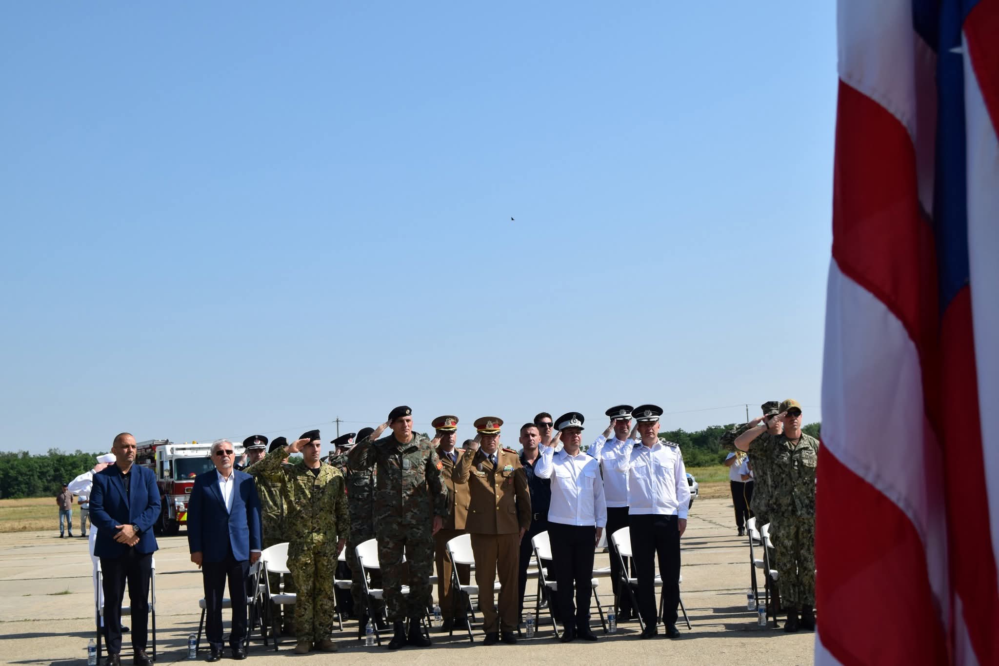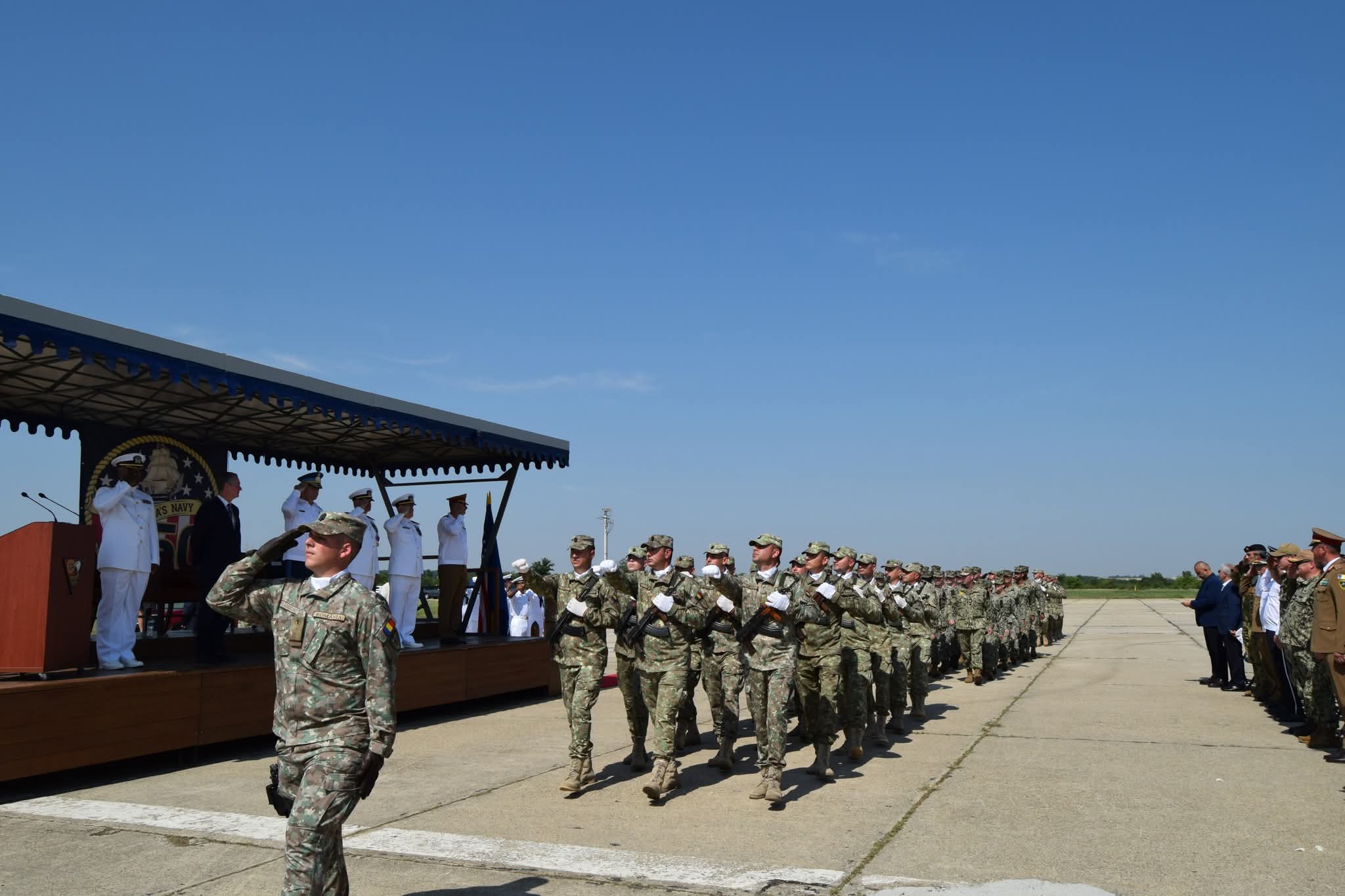 Festivitatea s-a desfășurat în prezența Deputy chief of mission, John Gimbel, locțiitorul comandantului Comandamentului Logistic Întrunit, general de flotilă aeriană Răzvan Brătulescu, comandantul Brigăzii Multinaționale de Sud-Est, general de brigadă Irinel Apostolescu, comandanți de unități militare, precum și reprezentanți ai instituțiilor din cadrul Sistemului Național de Apărare și ai autorităților publice locale și regionale.