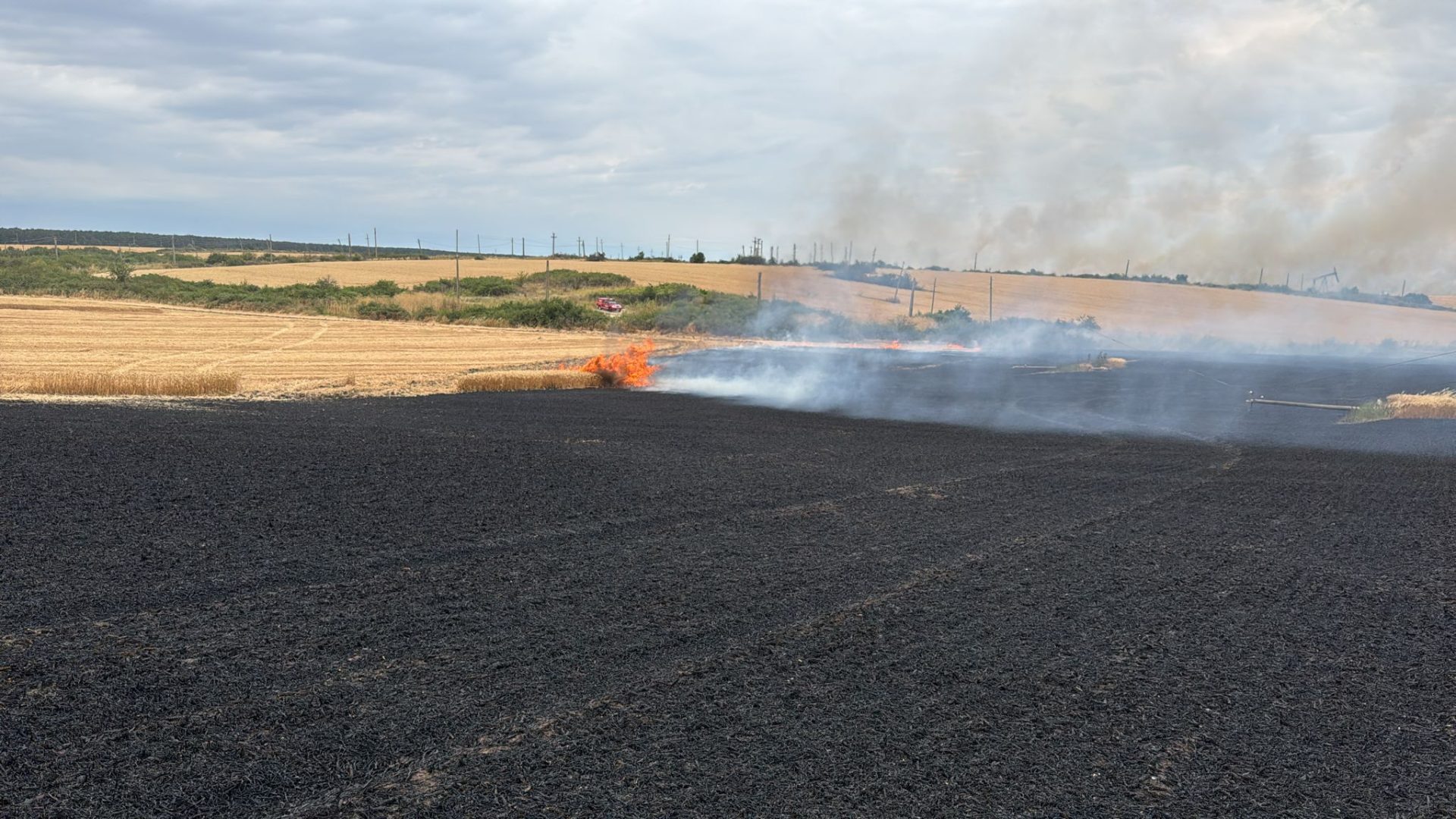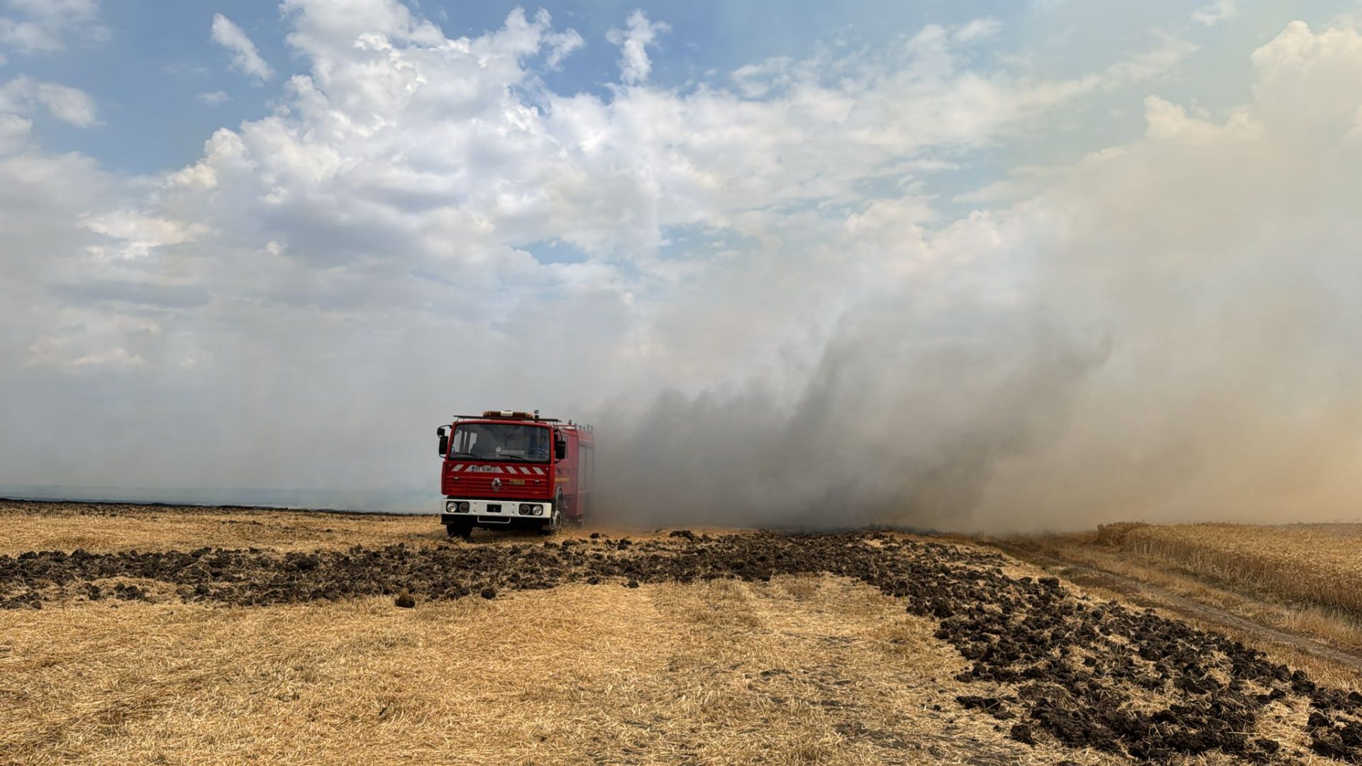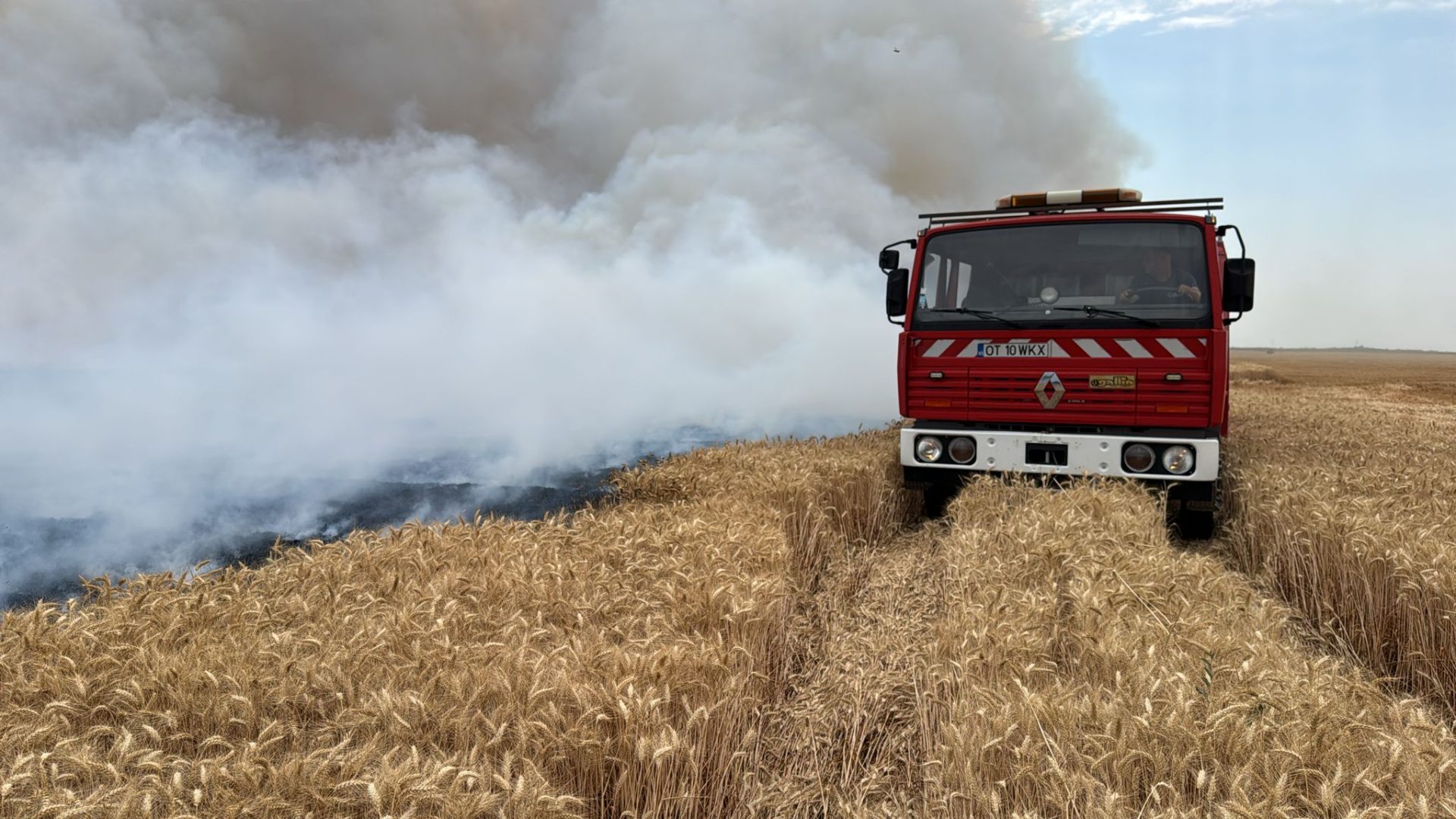 Incendiu devastator izbucnit în după-amiaza zilei de miercuri, 9 iulie 2025, pe un teren agricol din apropierea comunei Movileni, care a luat foc după ce un stâlp electric a căzut peste el din cauza vântului puternic.