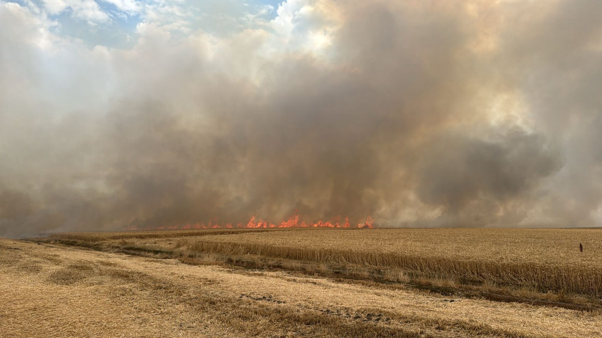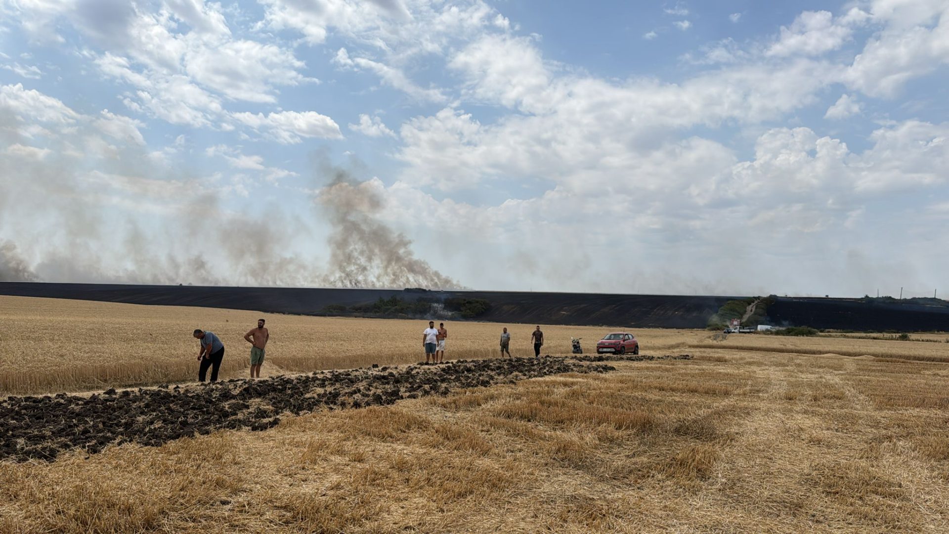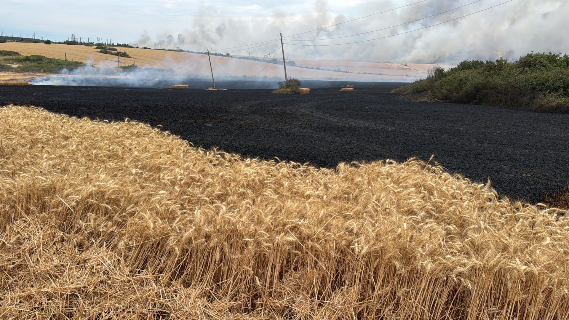 Incendiu devastator izbucnit în după-amiaza zilei de miercuri, 9 iulie 2025, pe un teren agricol din apropierea comunei Movileni, care a luat foc după ce un stâlp electric a căzut peste el din cauza vântului puternic.
